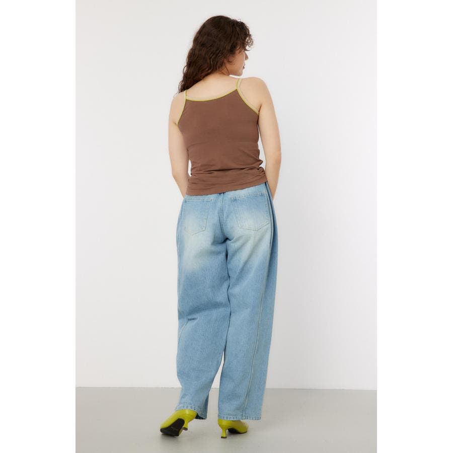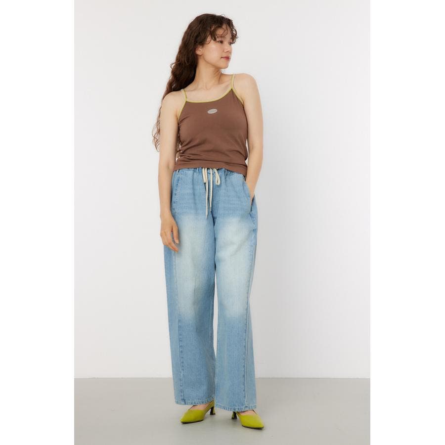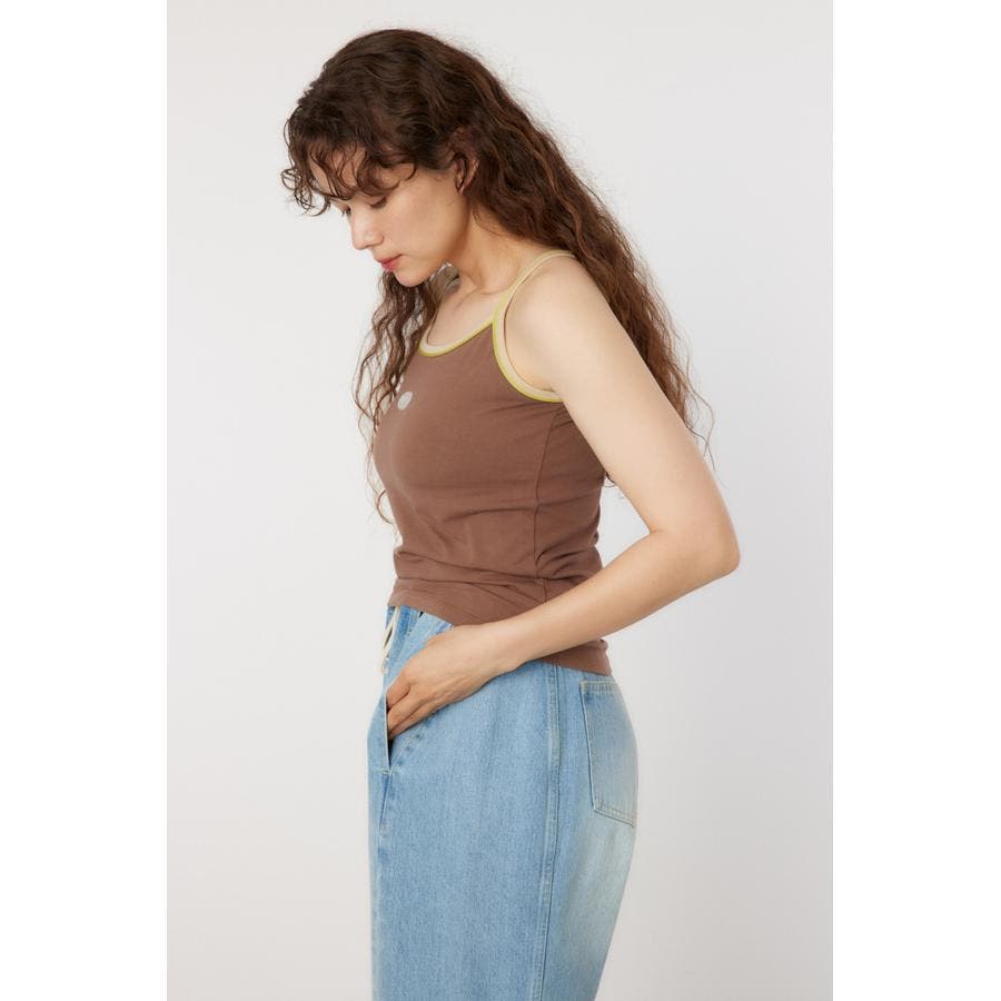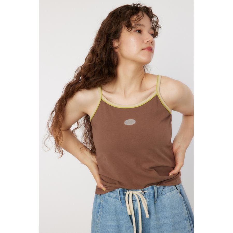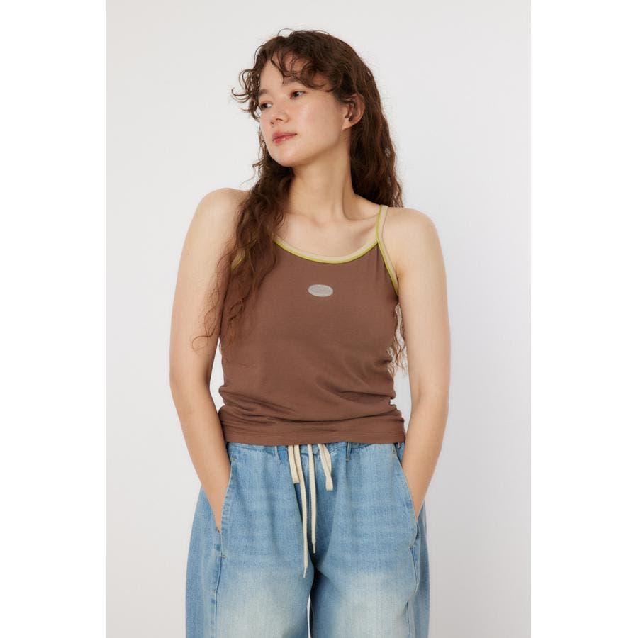 胸元のシリコンロゴがポイントのキャミソール。スポーティなデザインで、一枚で着ても、インナーとしても可愛いアイテムです。ビッグシルエットのパンツを合わせて、ゆるピタなバランスの良いコーデがおすすめ。