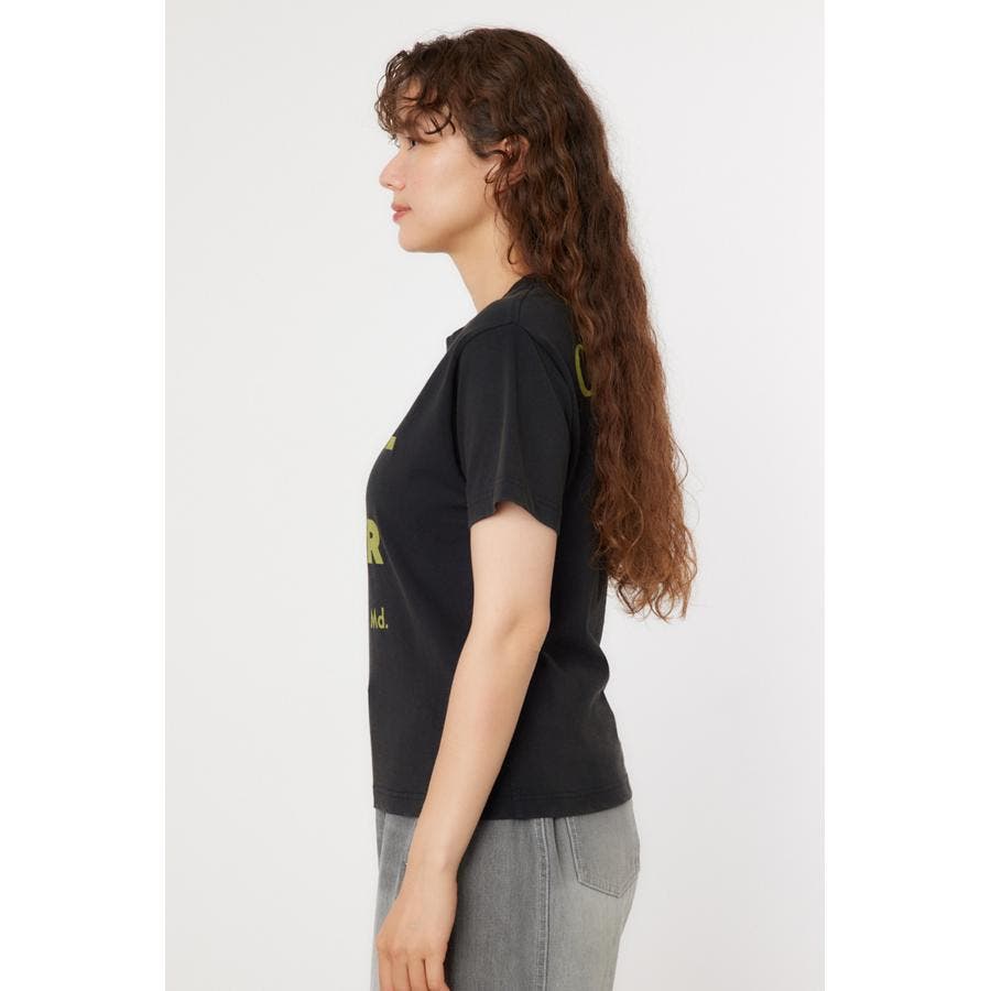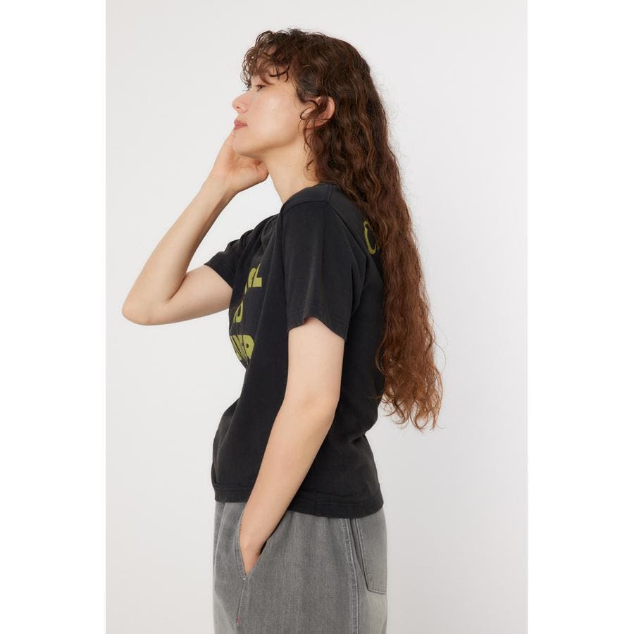 ややコンパクトサイズのビンテージ風Tシャツ。古着っぽく見える様に加工を施しました。あえてシンプルなプリントに仕上げているので、デニムと合わせたシンプルなコーディネートがおすすめです。