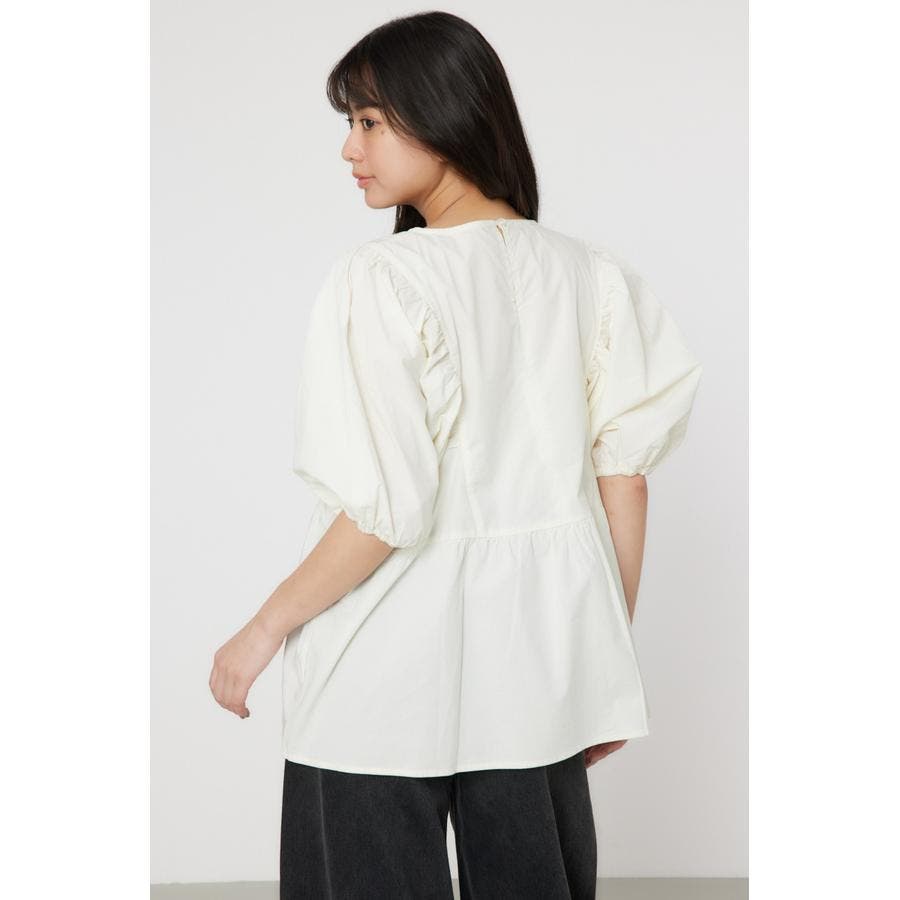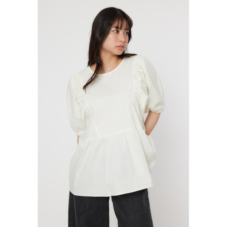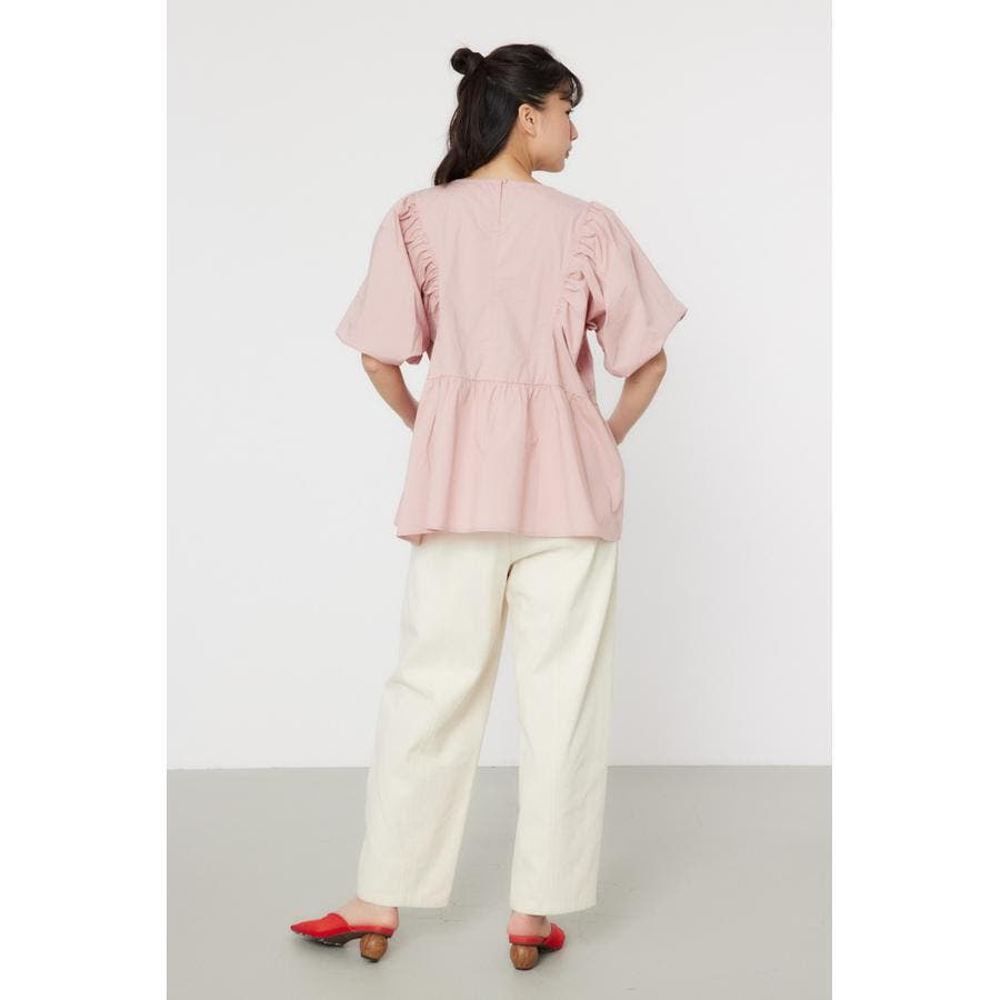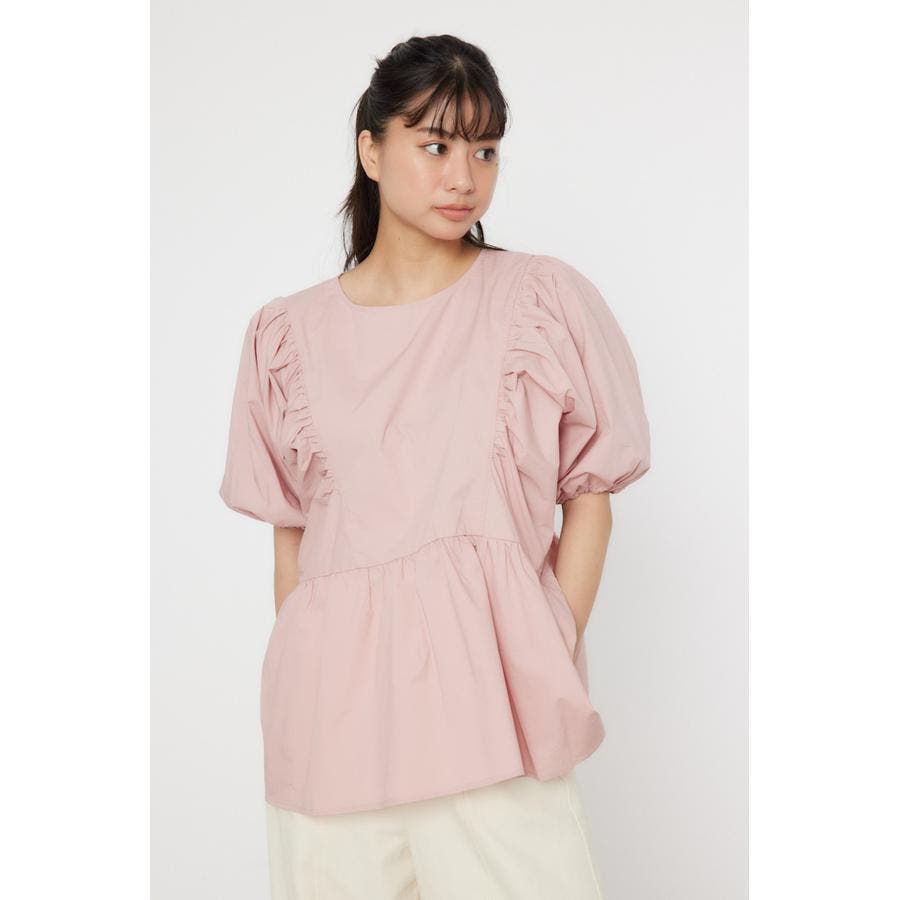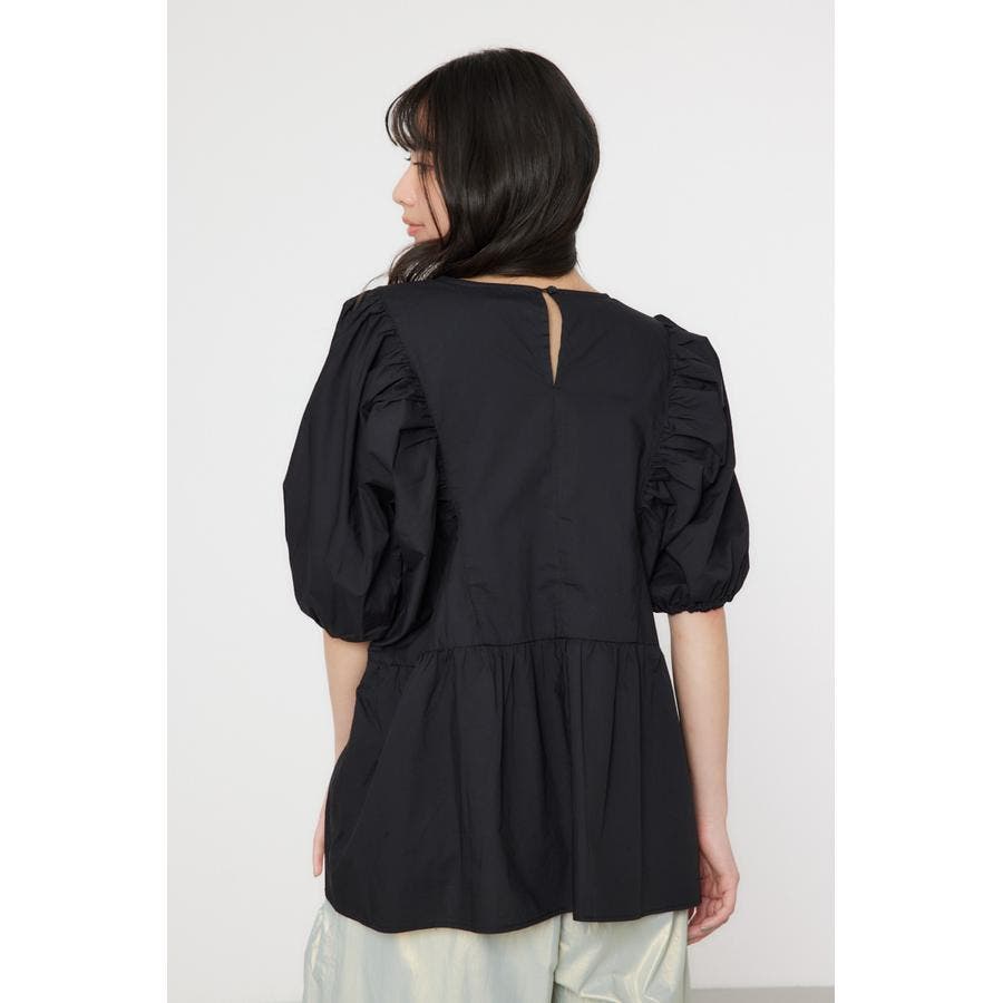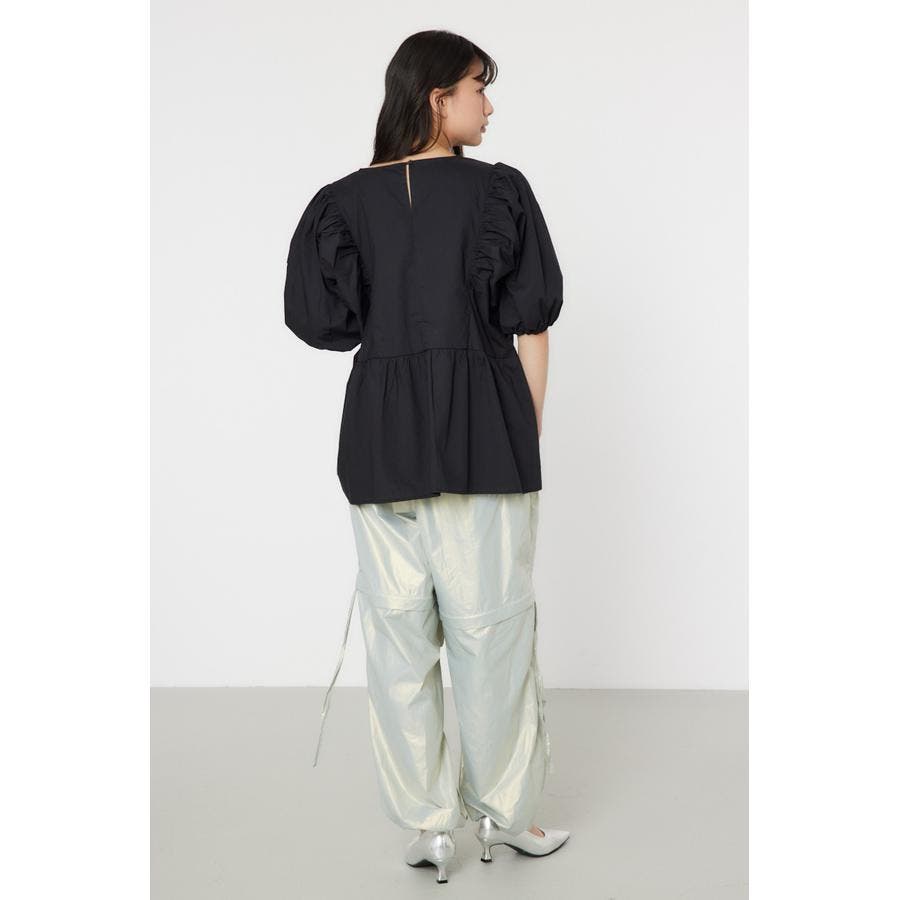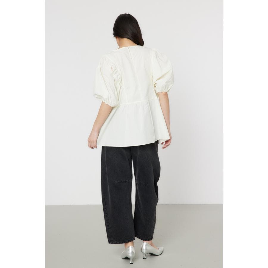 袖ボリュームペプラムトップス