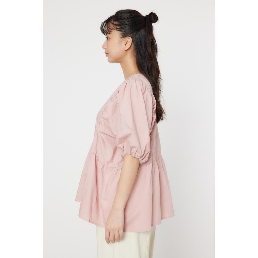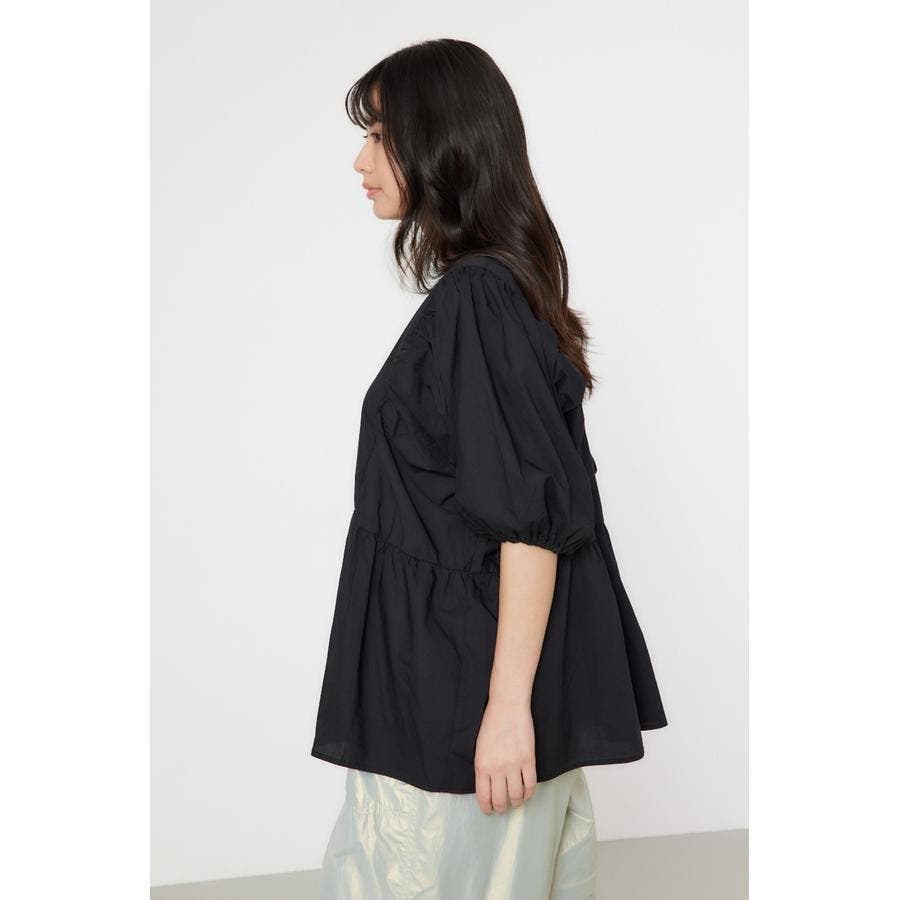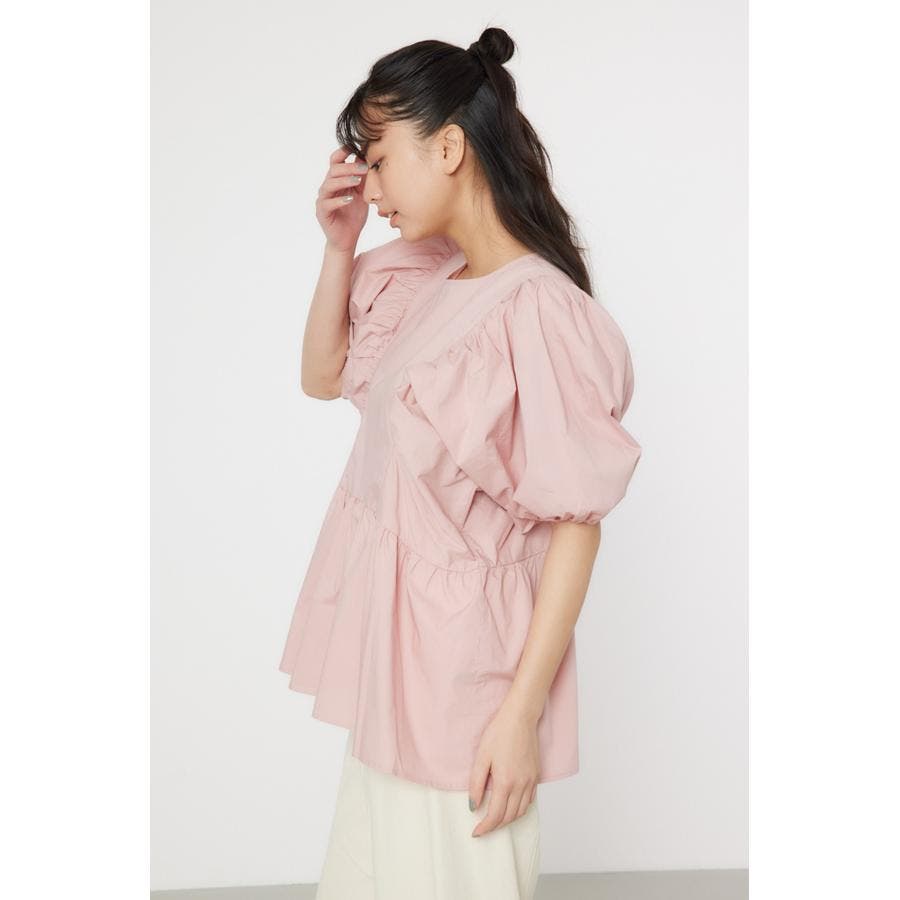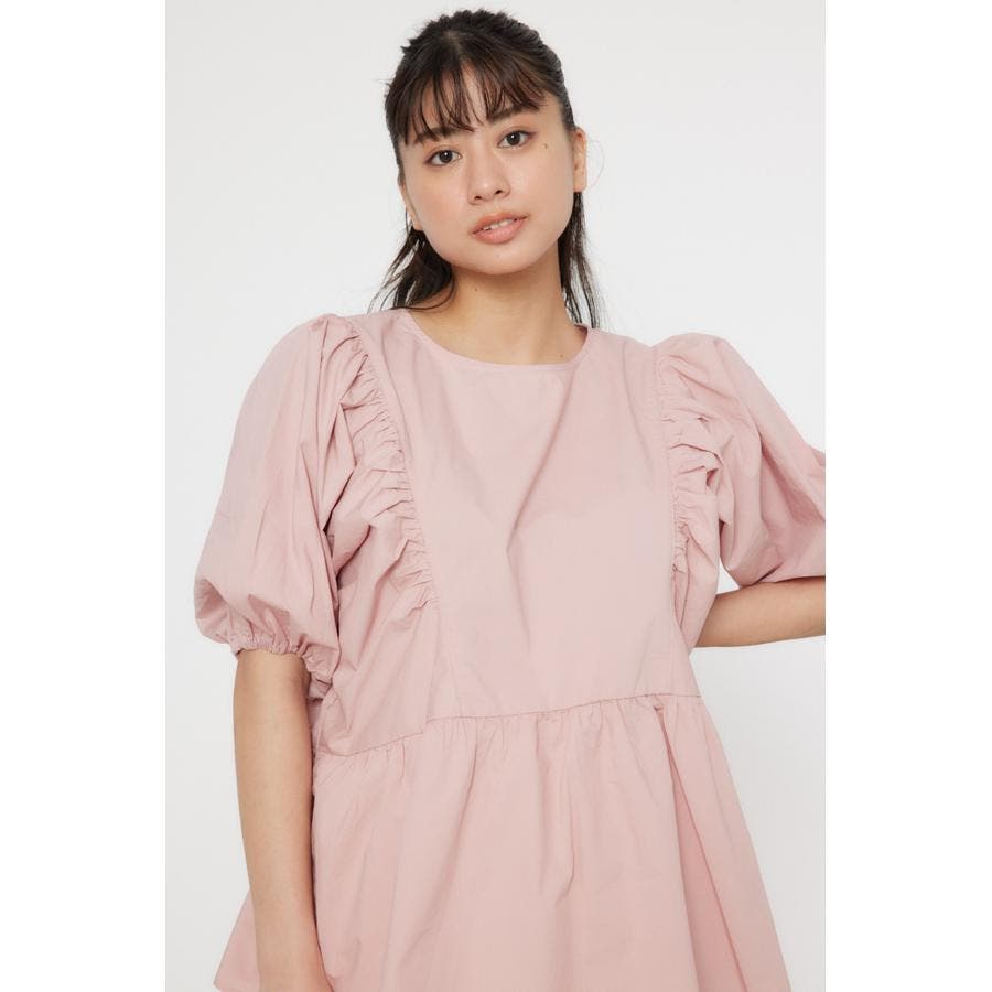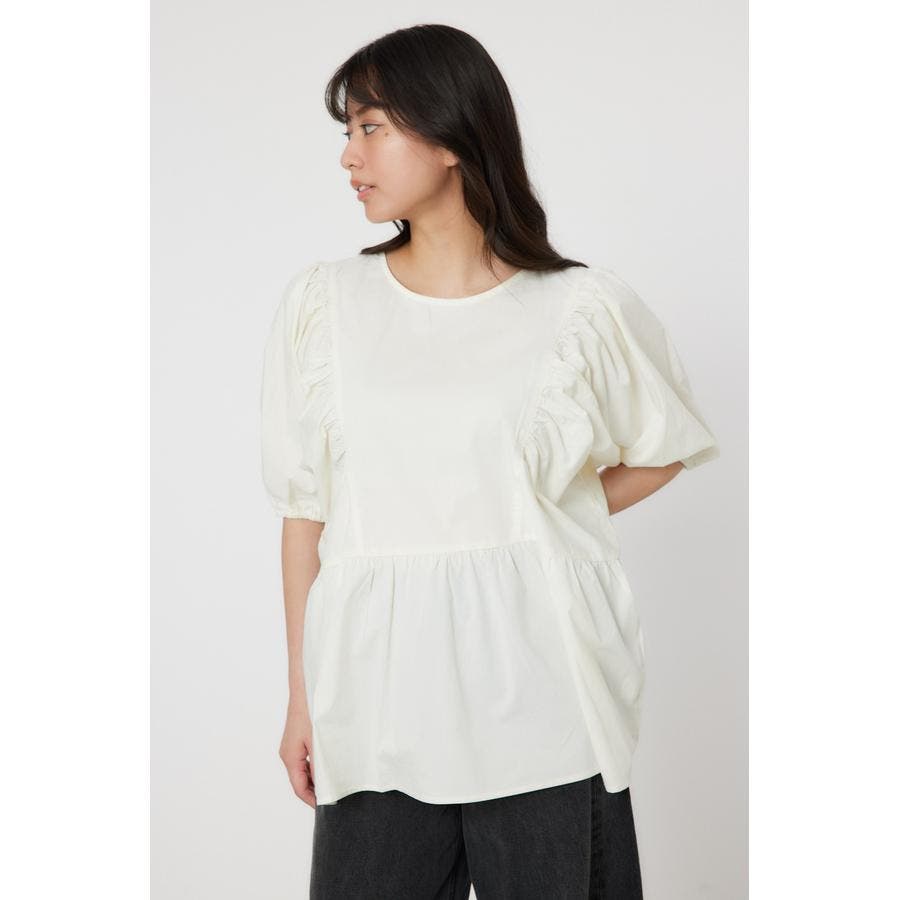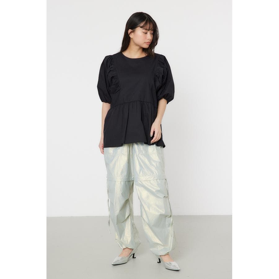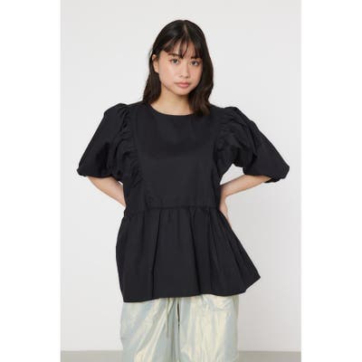 袖ボリュームペプラムトップス