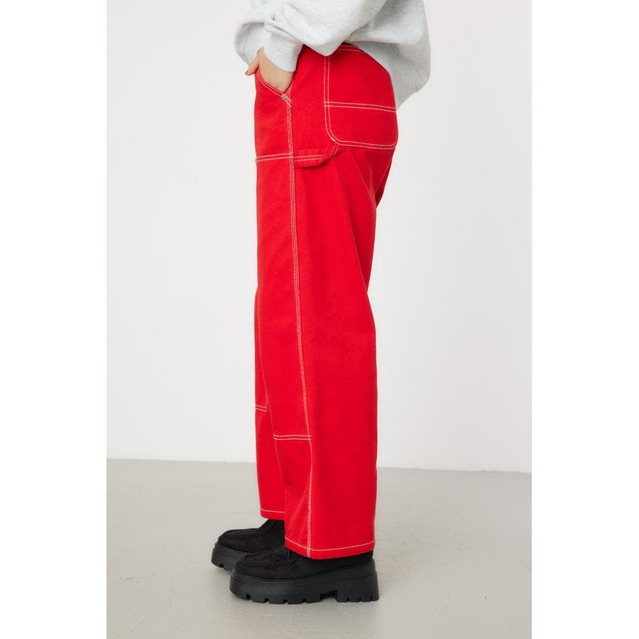 ヴィンテージのダブルニーパンツから着想を得て、ペインター仕様に仕上げたパンツ。メンズライクでありながら今っぽい雰囲気に。BLUとBLKはデニム素材で、BRNとREDはツイル素材を使用。ウエスト後ろ部分はゴム仕様なので、履き心地もラクチンです。ワイドなシルエットながらも太すぎず、普段のコーディネートに馴染みやすいアイテム。