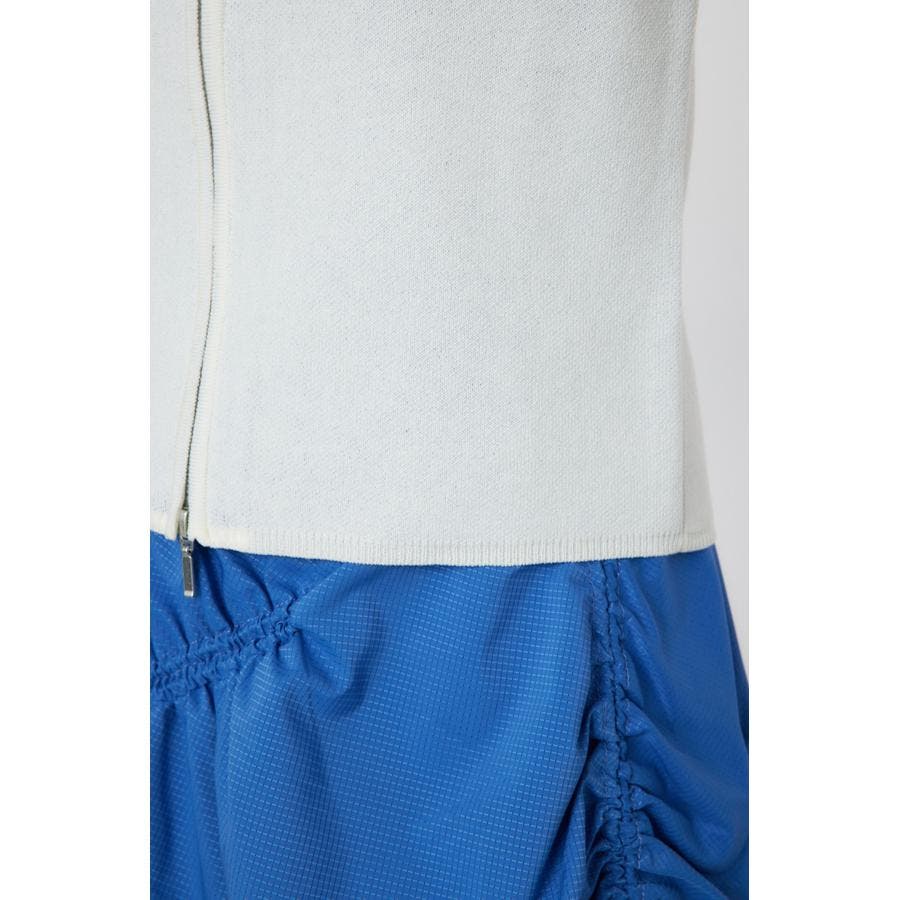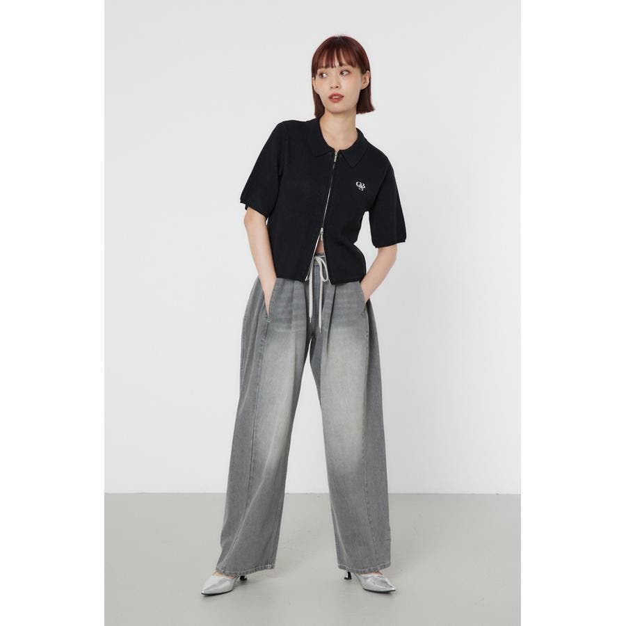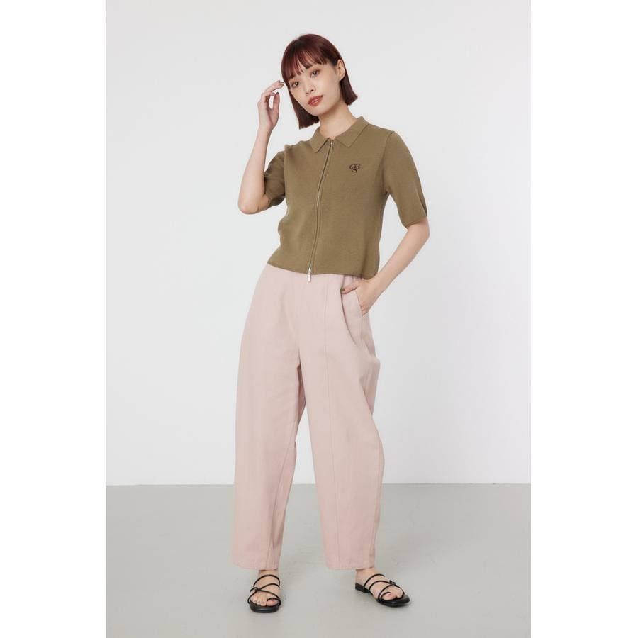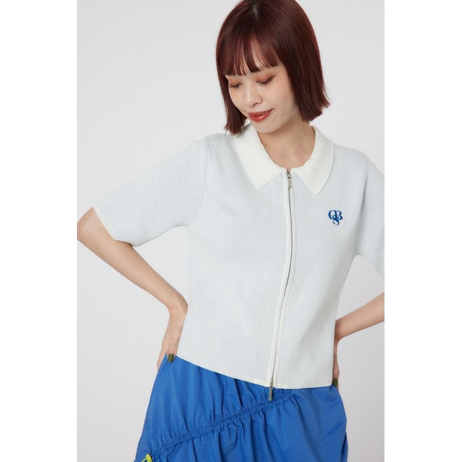 トレンド感溢れる半袖ニットカーディガン。Wジップ仕様なので、位置によって表情が変わる自由自在なアイテム。トップスとしても羽織としても使用でき、シルエットがタイトなので、ボトムはゆったりとしたスラックスやデニムと合わせるのがおすすめ。