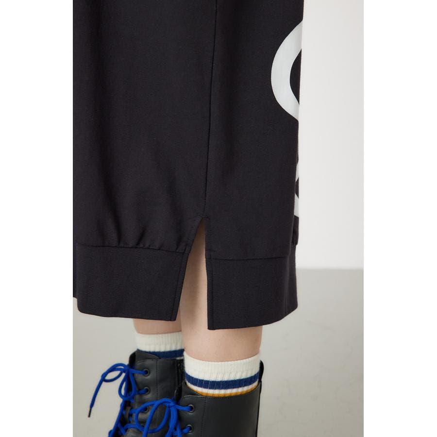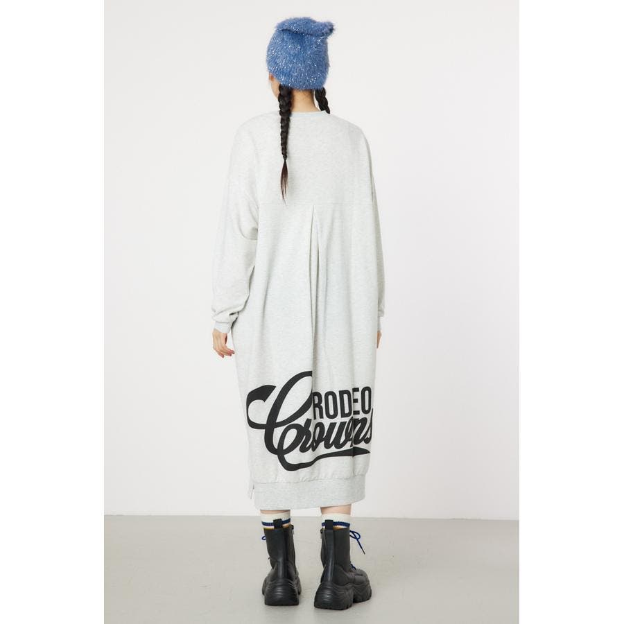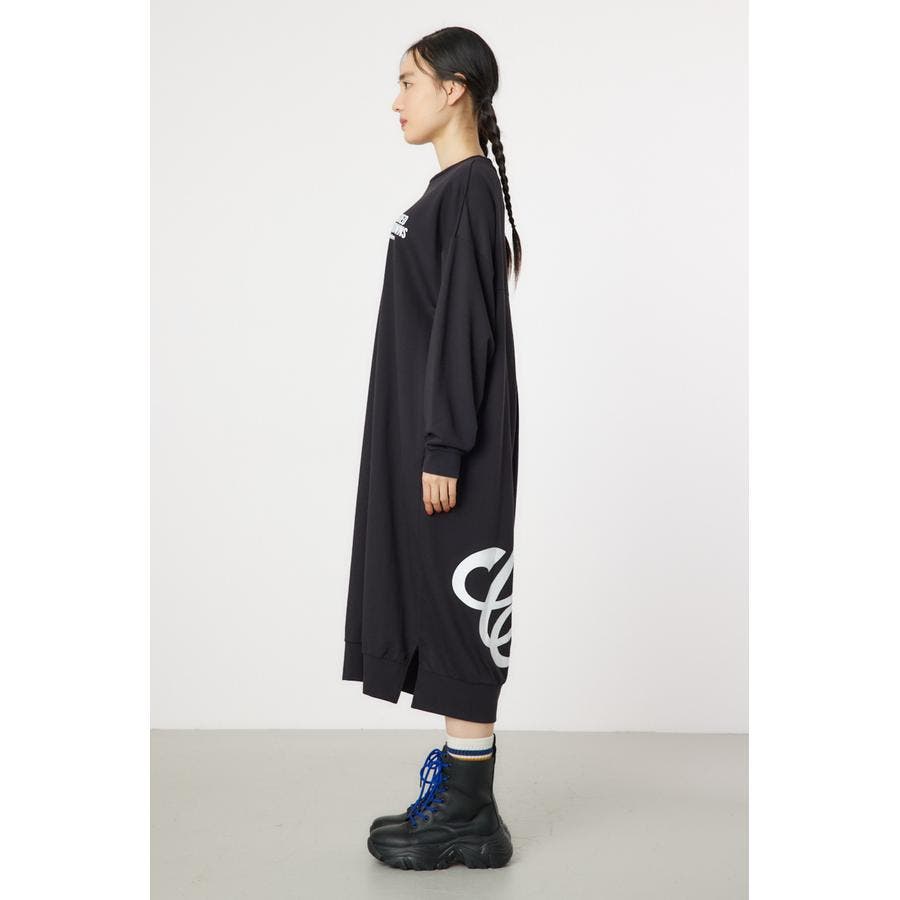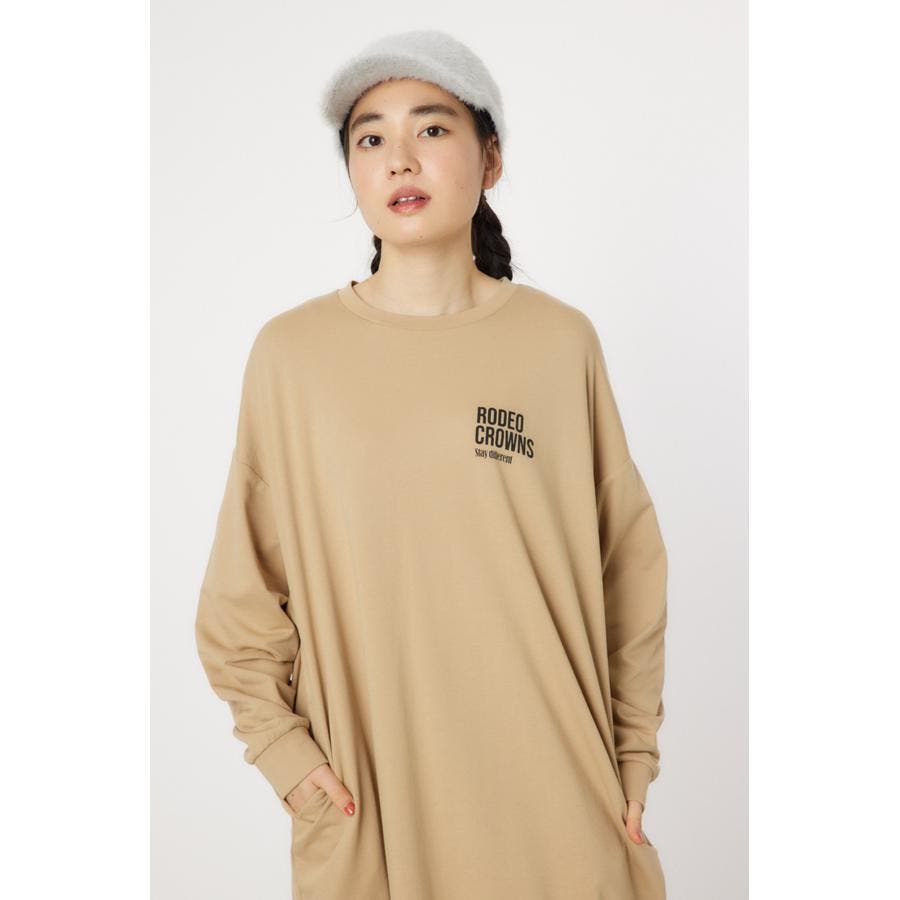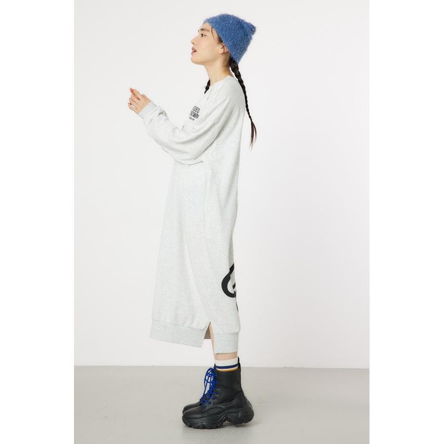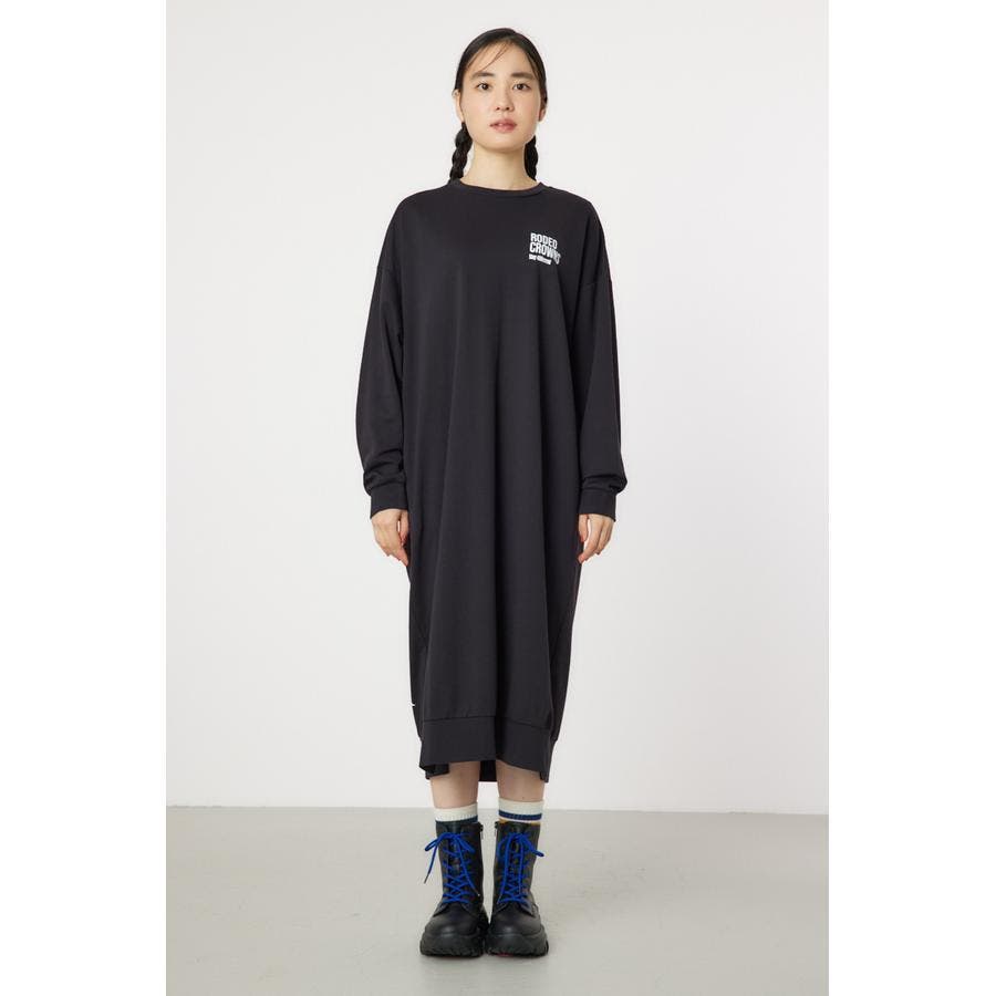 裾のバックプリントが、ただのスウェットワンピと差をつけて、カジュアルなおしゃれに最高の一枚。着心地が良いので毎日でも着たいくらい。私は167㎝でふくらはぎ中くらいの丈感だけど、低身長さんならロングで着られてそれもかわいいと思います。同型で高身長向けロングも作って欲しいなあ。