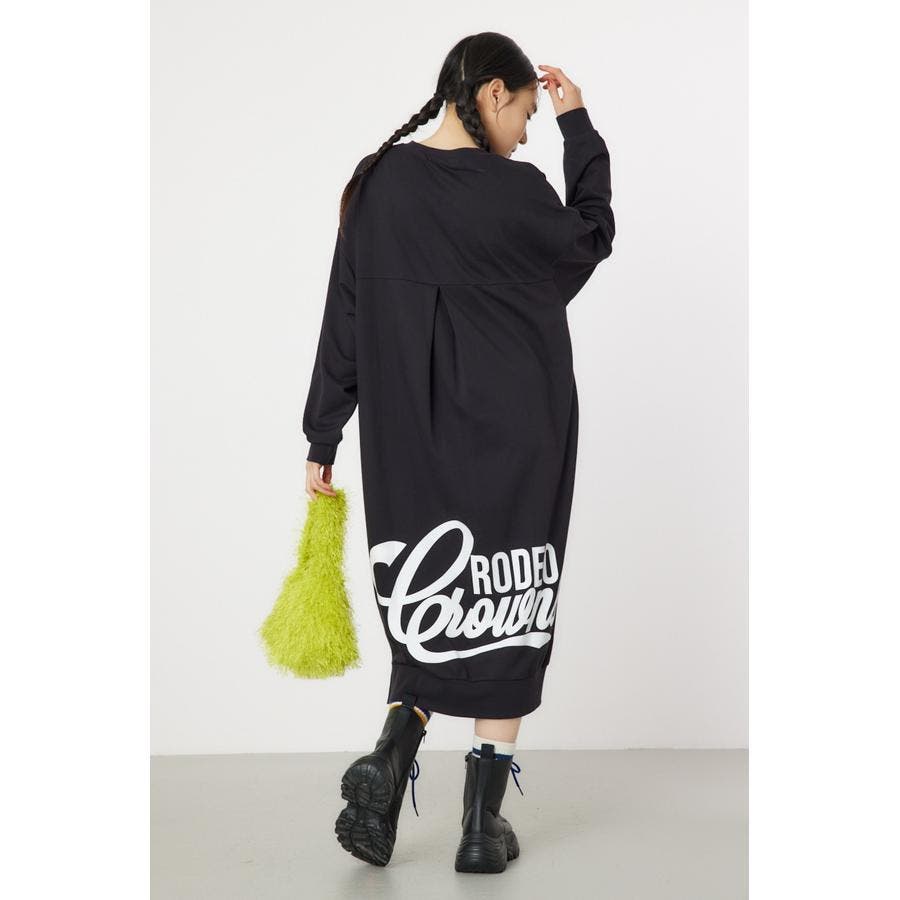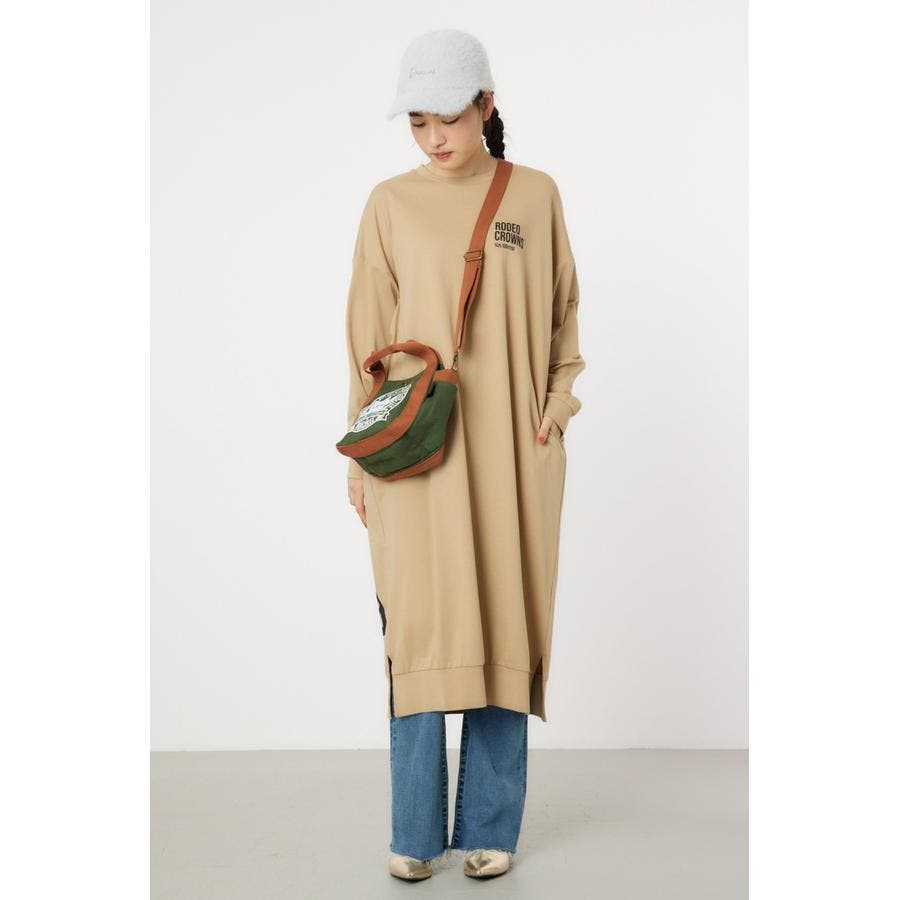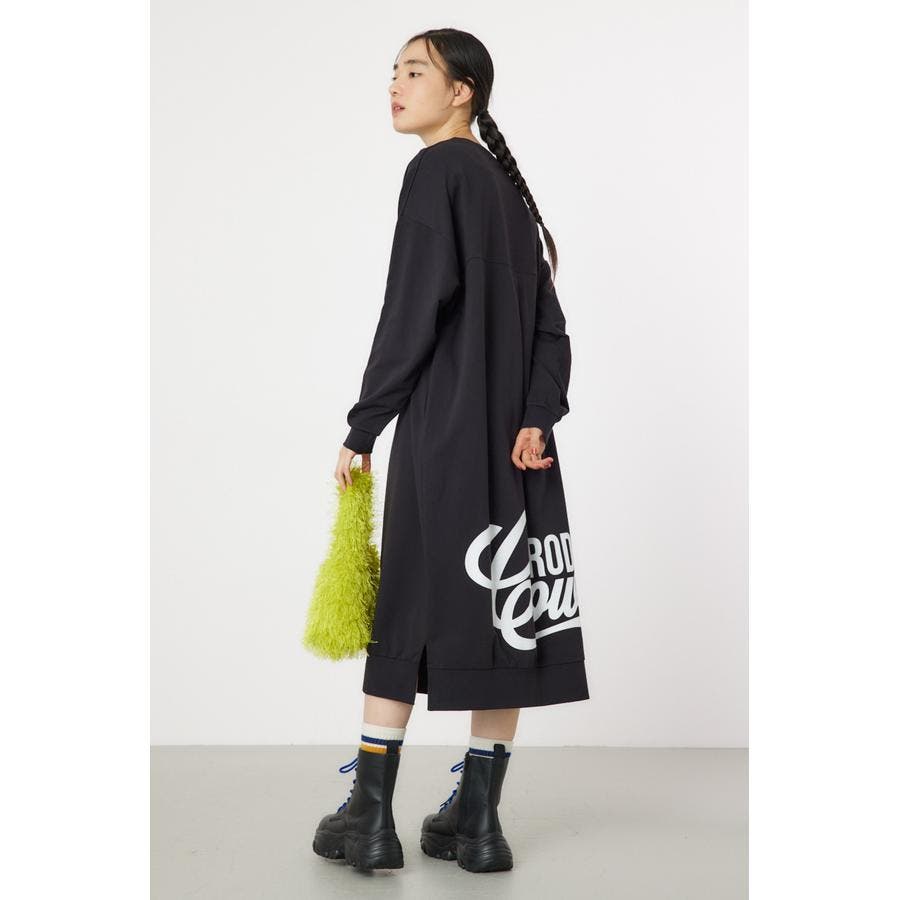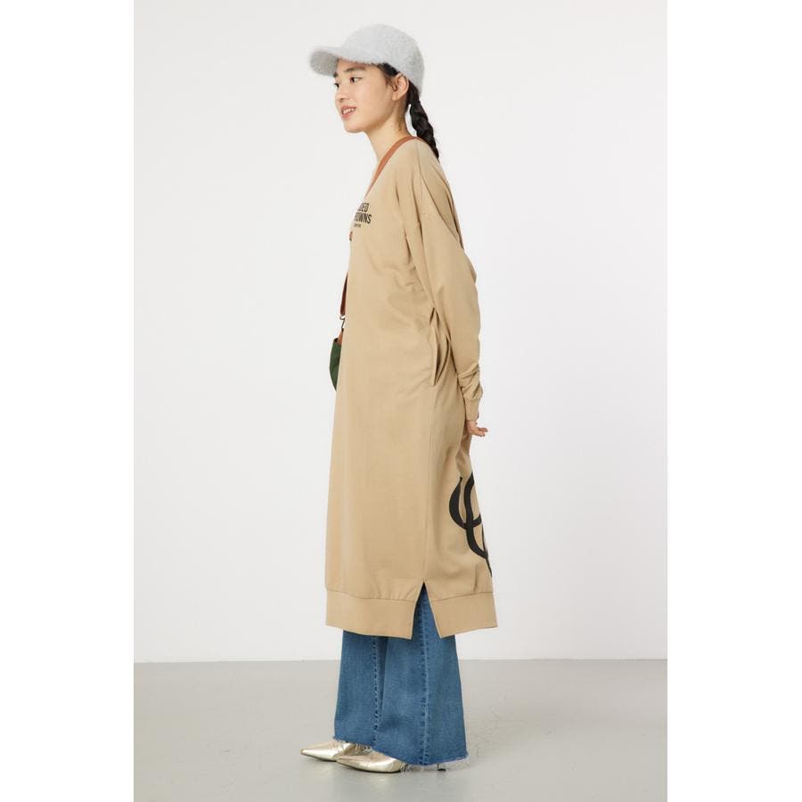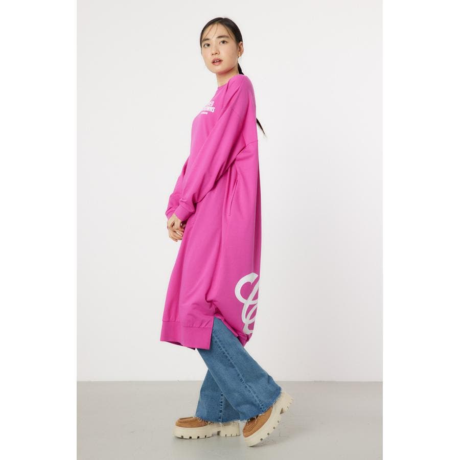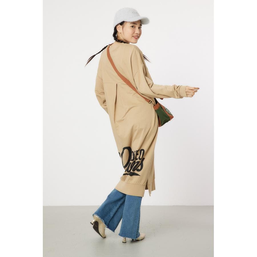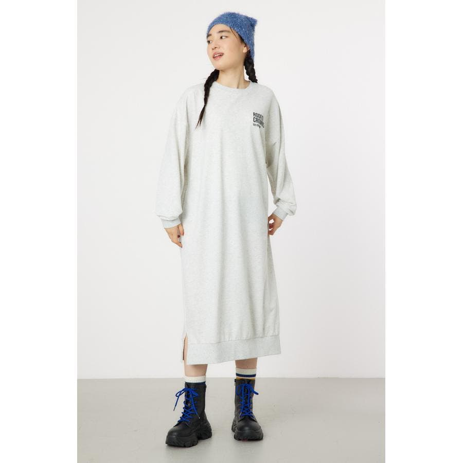 裾のバックプリントが、ただのスウェットワンピと差をつけて、カジュアルなおしゃれに最高の一枚。着心地が良いので毎日でも着たいくらい。私は167㎝でふくらはぎ中くらいの丈感だけど、低身長さんならロングで着られてそれもかわいいと思います。同型で高身長向けロングも作って欲しいなあ。