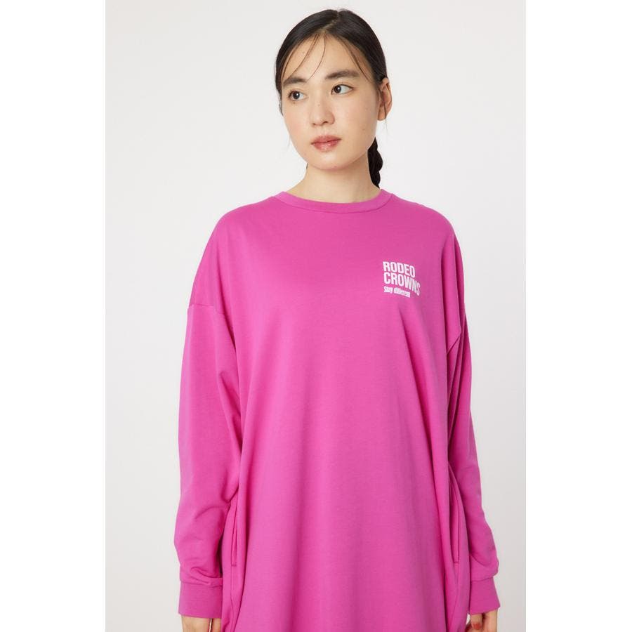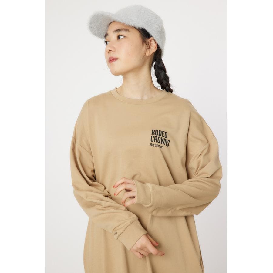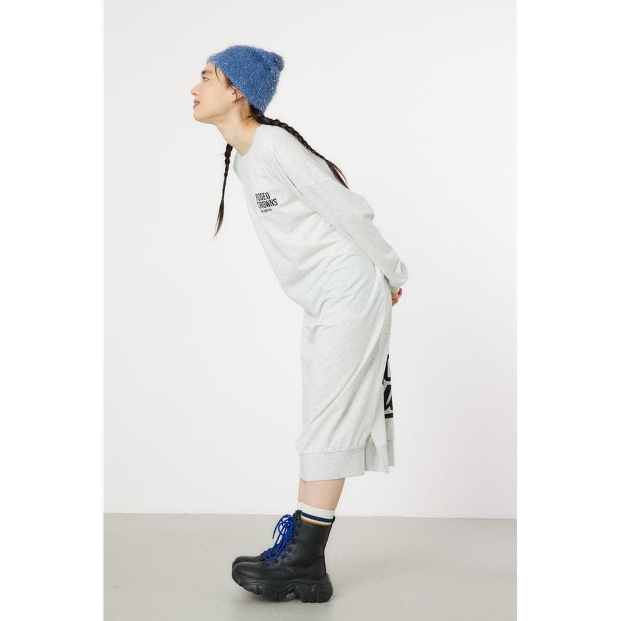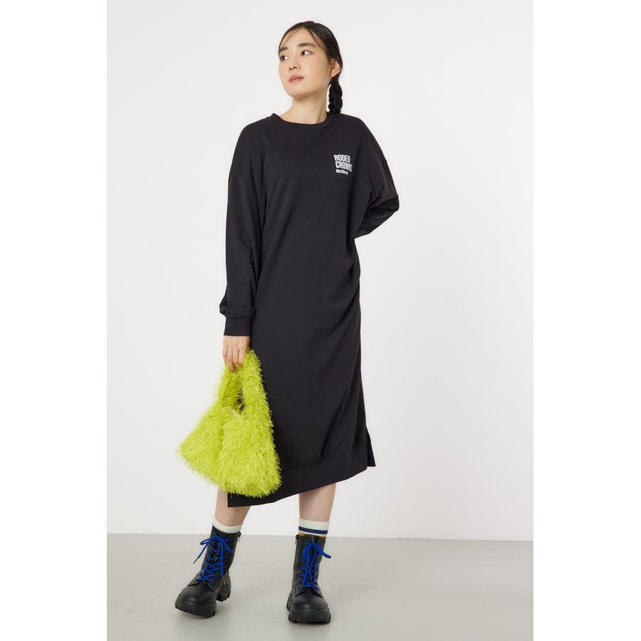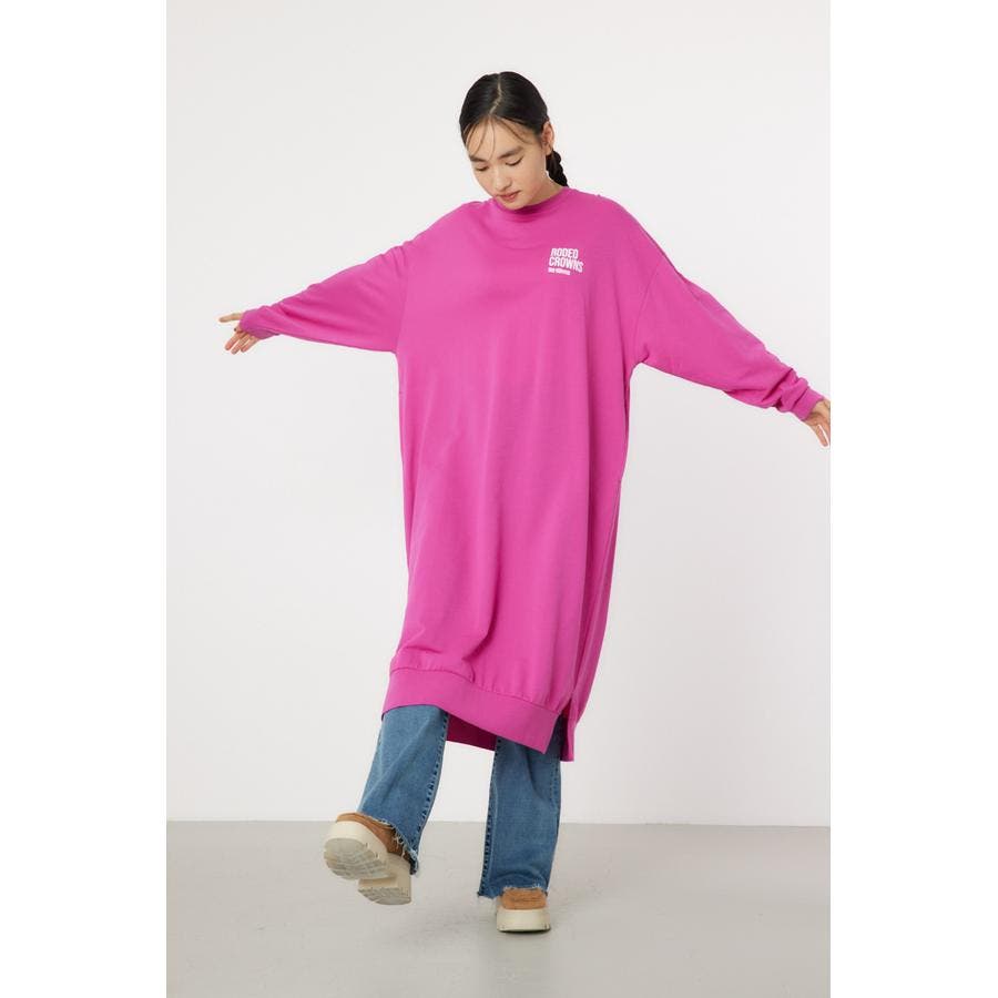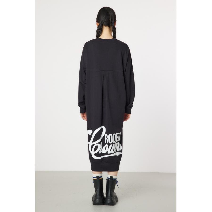 裾のバックプリントが、ただのスウェットワンピと差をつけて、カジュアルなおしゃれに最高の一枚。着心地が良いので毎日でも着たいくらい。私は167㎝でふくらはぎ中くらいの丈感だけど、低身長さんならロングで着られてそれもかわいいと思います。同型で高身長向けロングも作って欲しいなあ。
