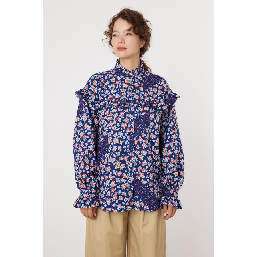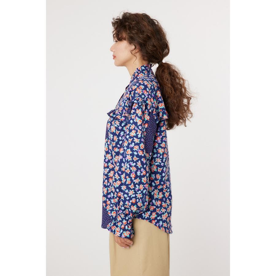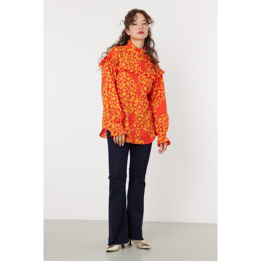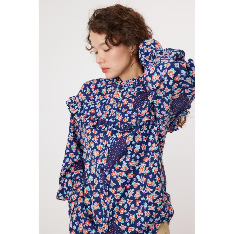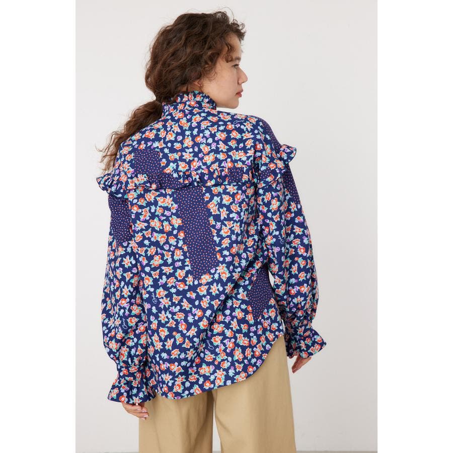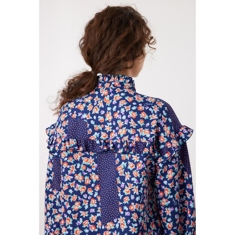 80'sパターンを柄のベースに置き、オリジナルで作成されたフローラルパターンのブラウス。襟、袖、胸元のさりげないフリルを活かし、レイヤードスタイルを楽しめるアイテムです。色褪せないデザインをお楽しみください。