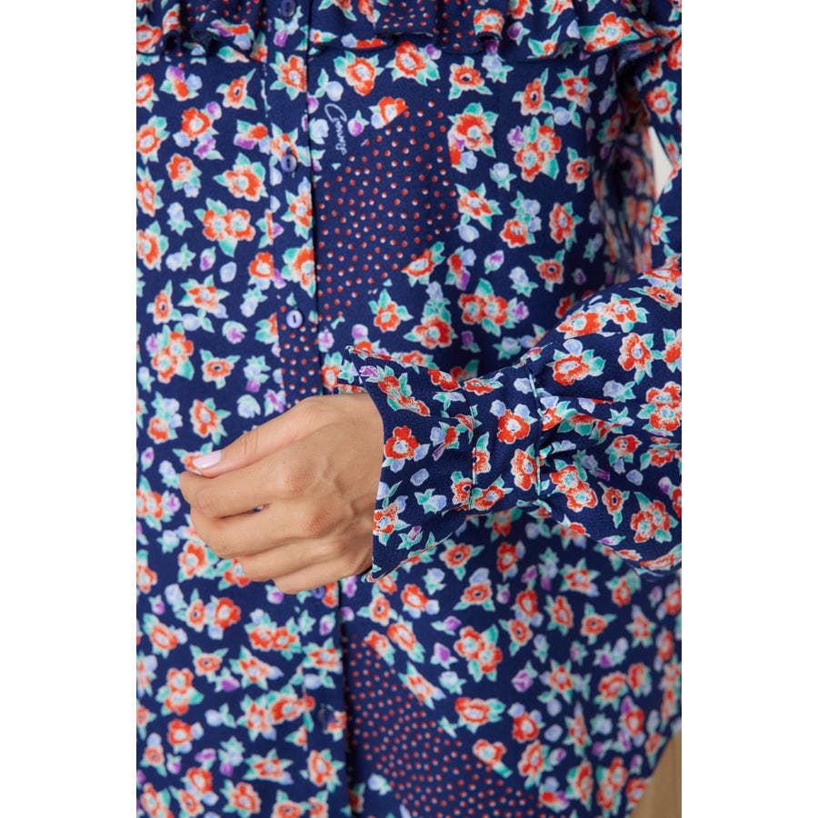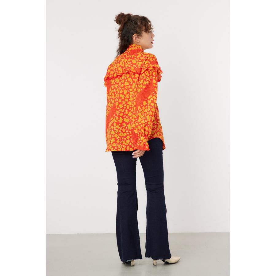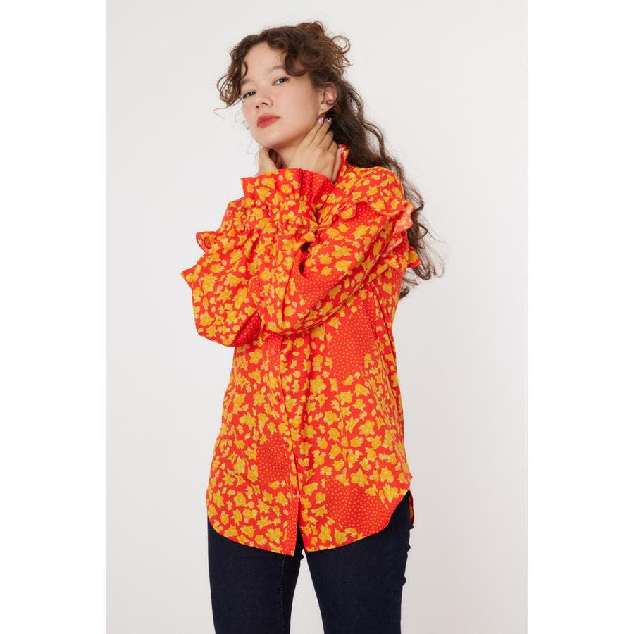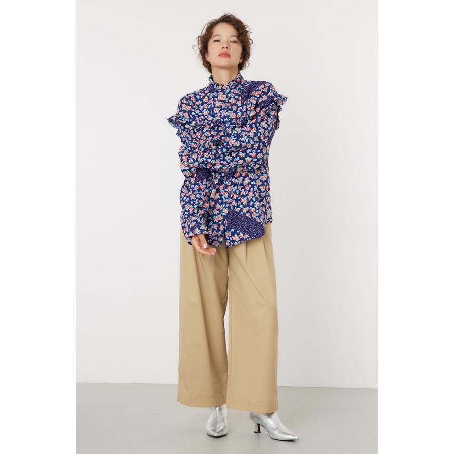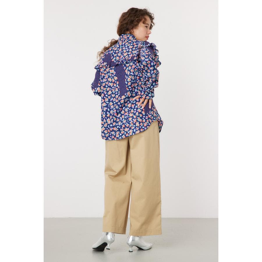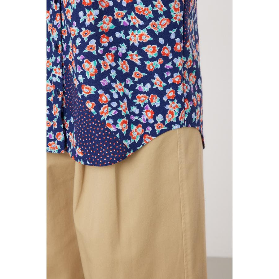 80'sパターンを柄のベースに置き、オリジナルで作成されたフローラルパターンのブラウス。襟、袖、胸元のさりげないフリルを活かし、レイヤードスタイルを楽しめるアイテムです。色褪せないデザインをお楽しみください。
