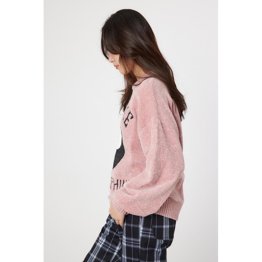 トレンド感のあるグラフィックがポイントのニットトップス。着心地の良いモール糸と合わせやすいデザインで、コーディネートの主役に。ゆったりとしたサイズ感のアイテムです。