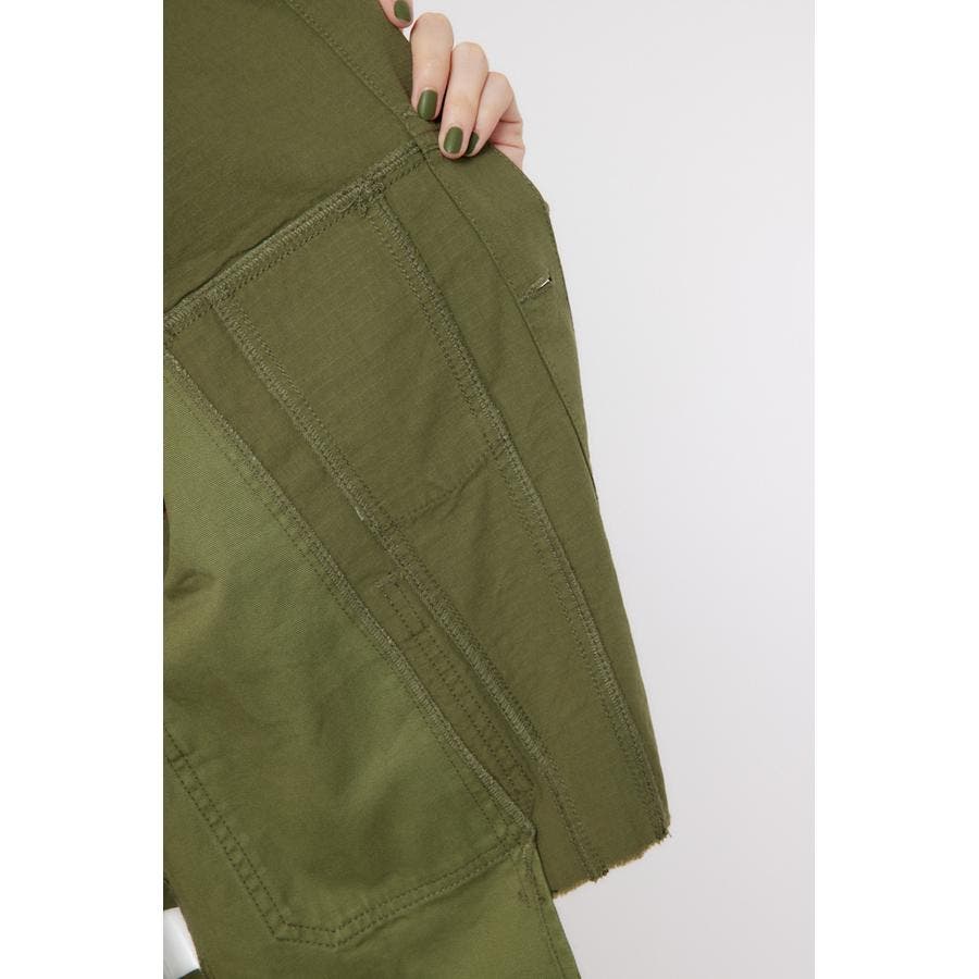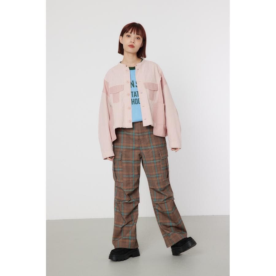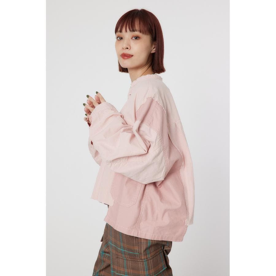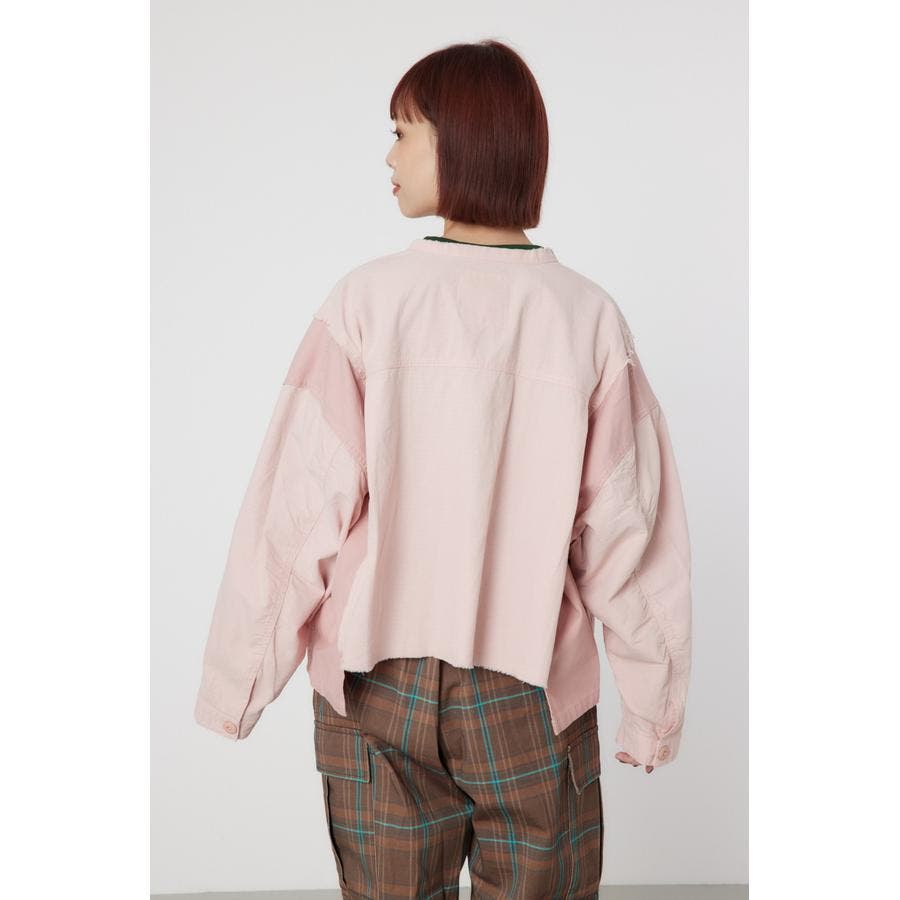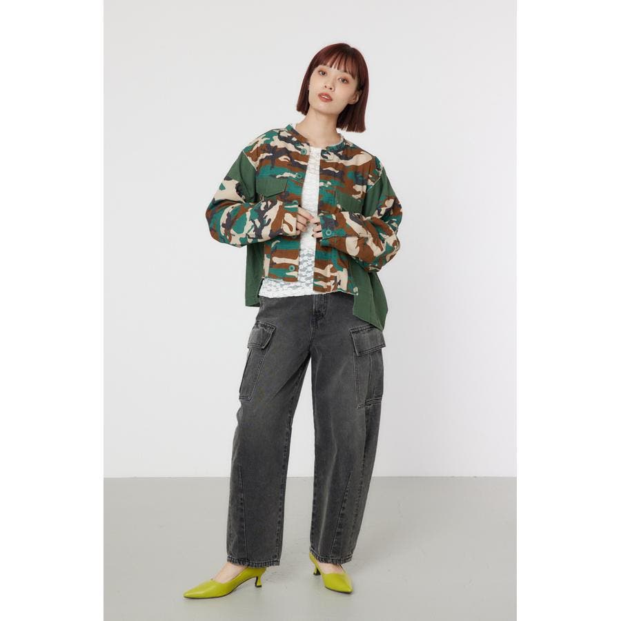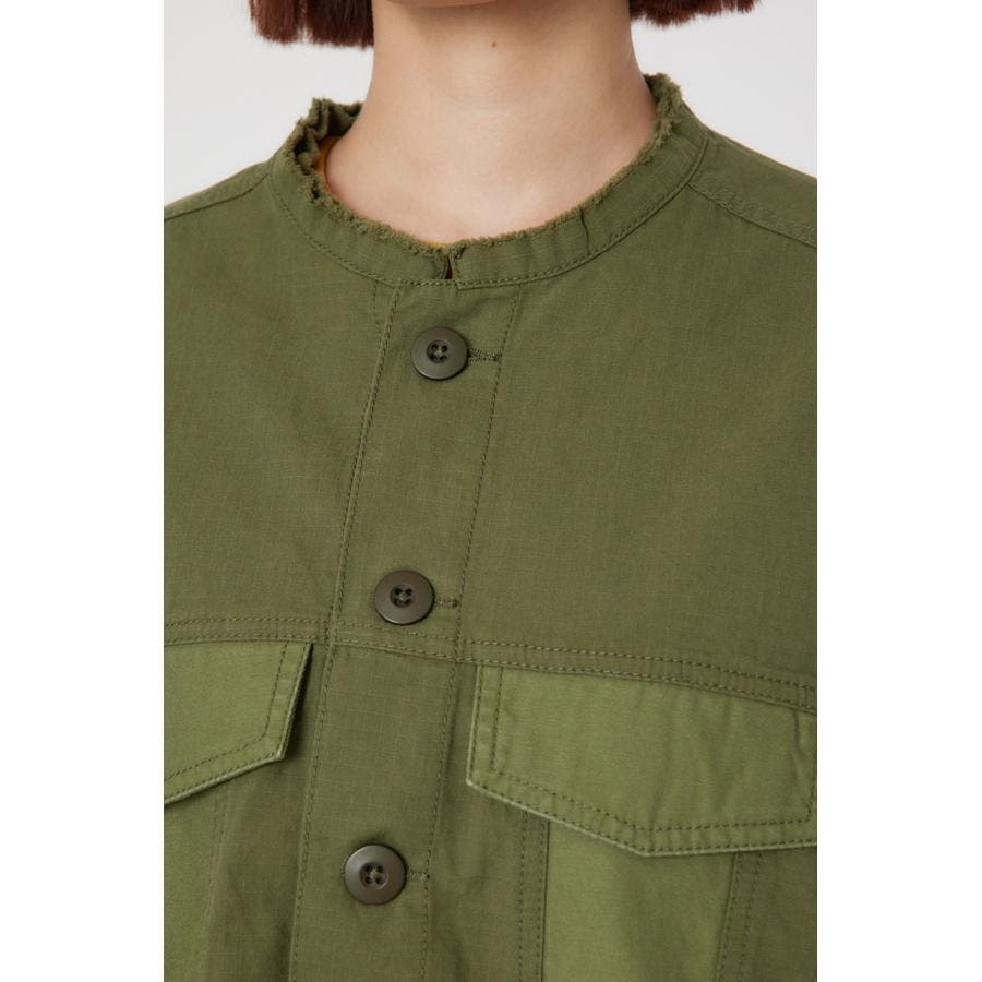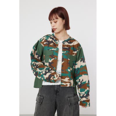 2色のミリタリージャケットをドッキングさせたようなデザインのリメイク風ジャケット。やや短めの丈感で、スタイリングのバランスも取りやすいアイテムです。