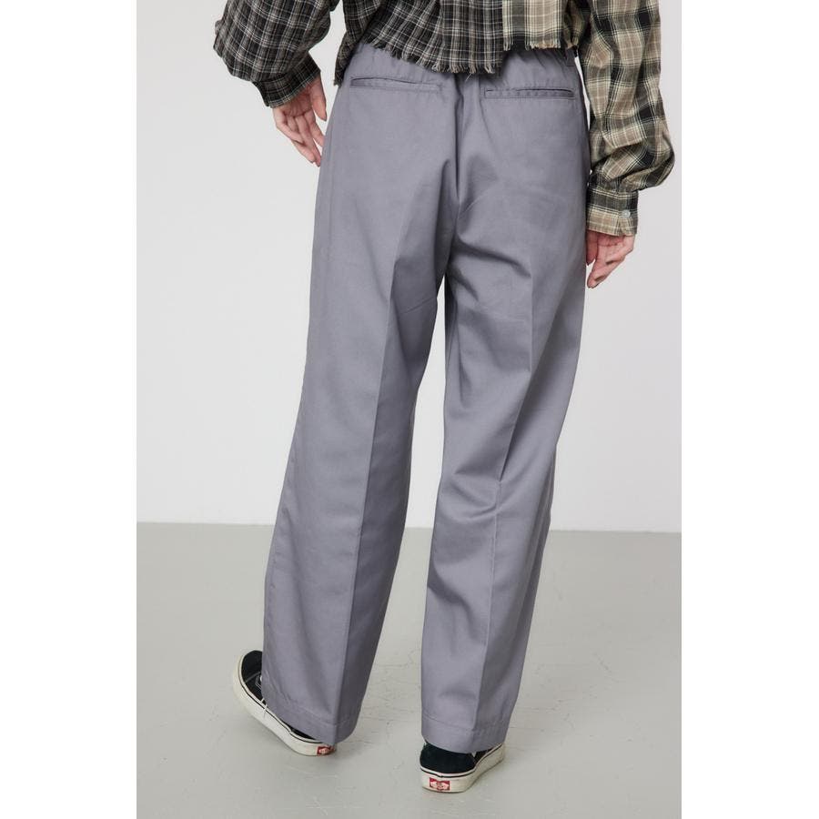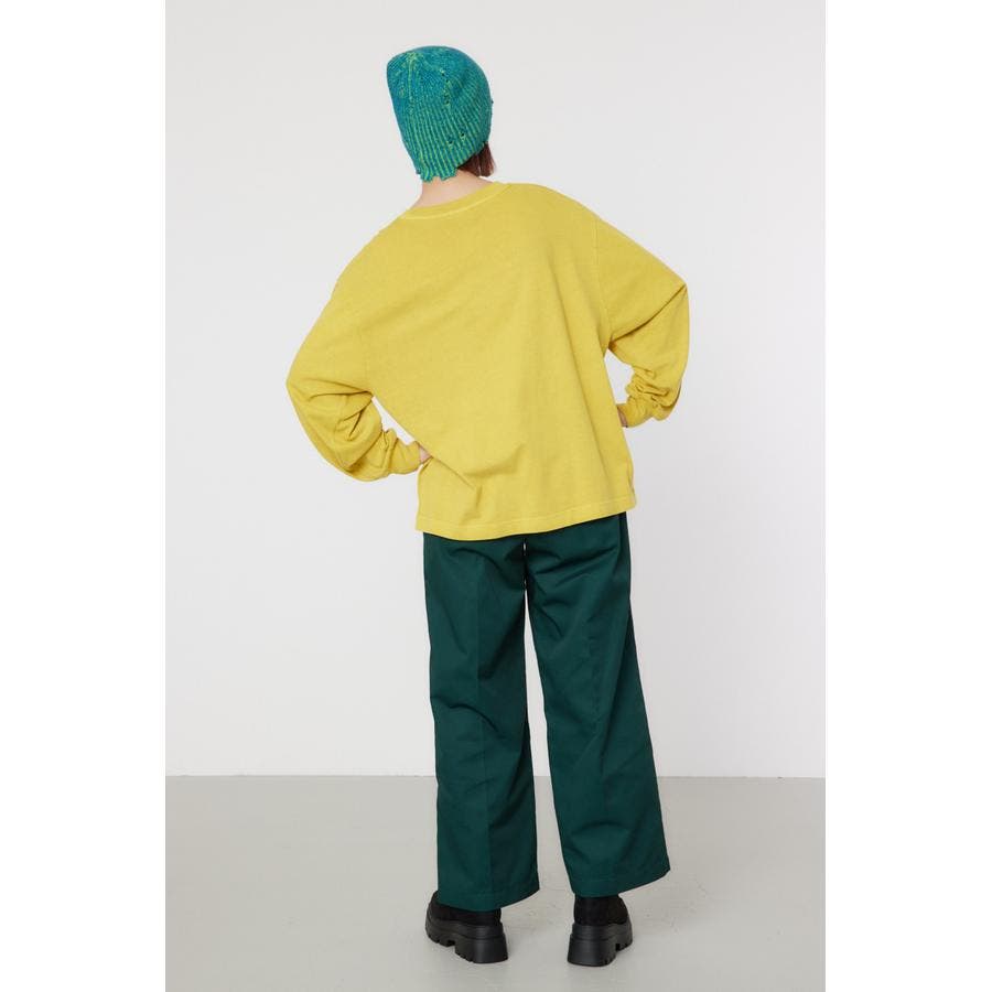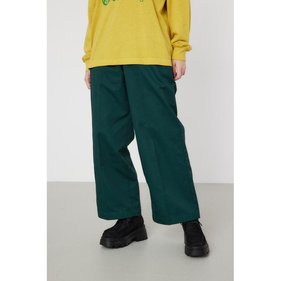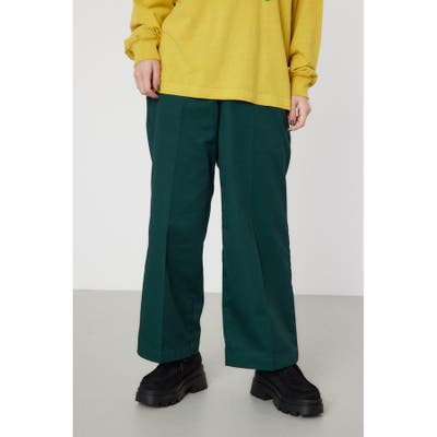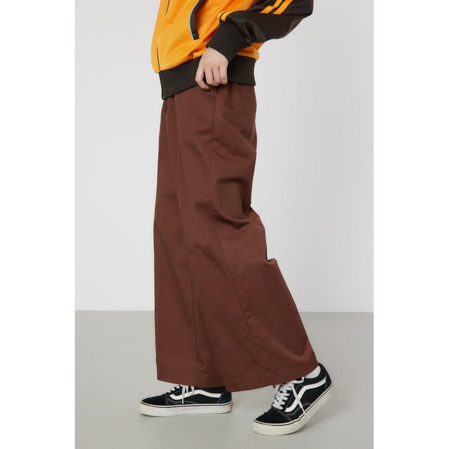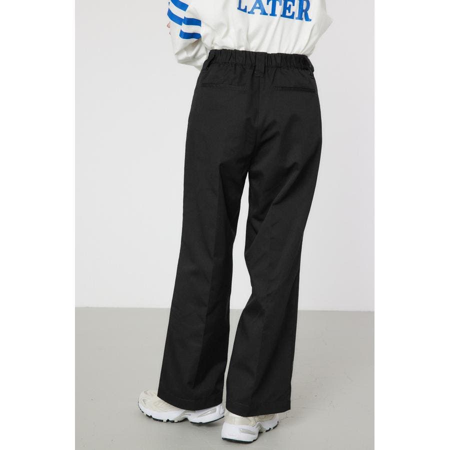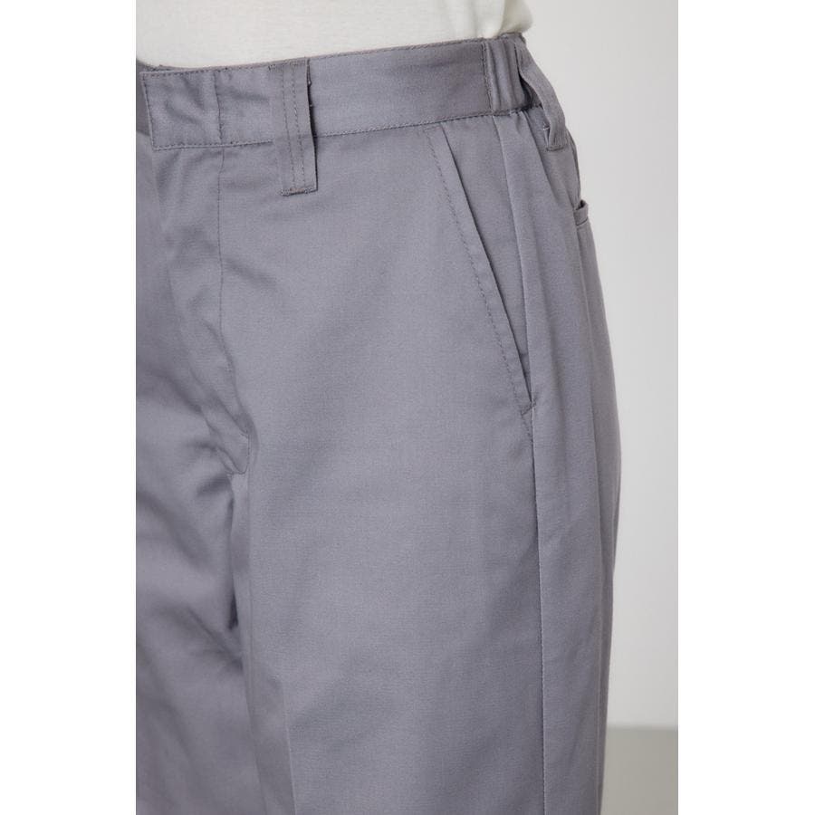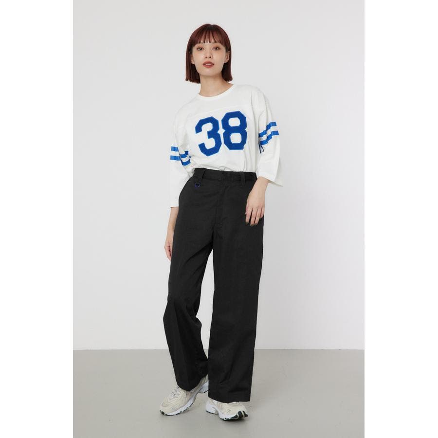 メンズのスケーターが履いているような目の詰まったしっかり目のチノ素材を使用したパンツ。履けば履くほど馴染んで柔らかくなるアイテムです。センタープレスを施し、カジュアルで太めのデザインながら、足をきれいに見せてくれる優れもの。ベルトループには配色のDカンが付いているので、キーやイヤホンケースなどお好きな物をぶら下げて着用すると、メンズライクなスタイリングが完成します。