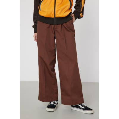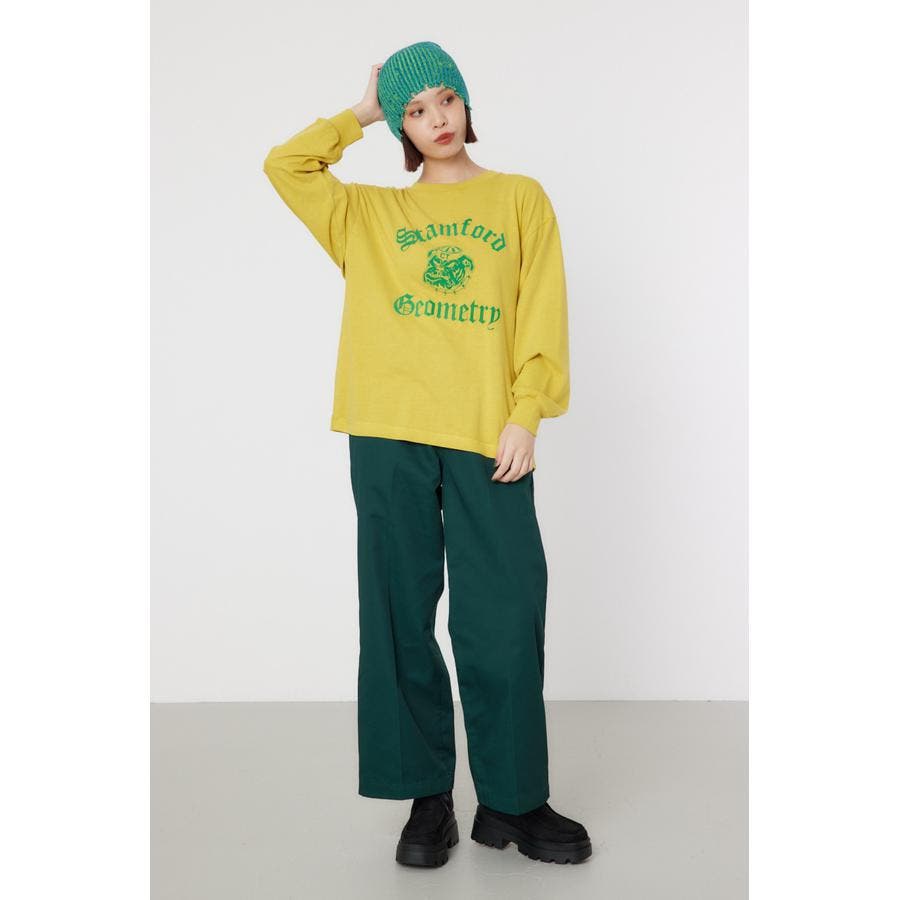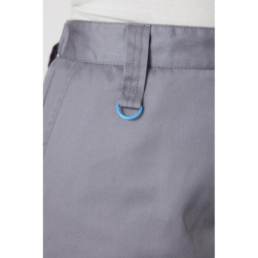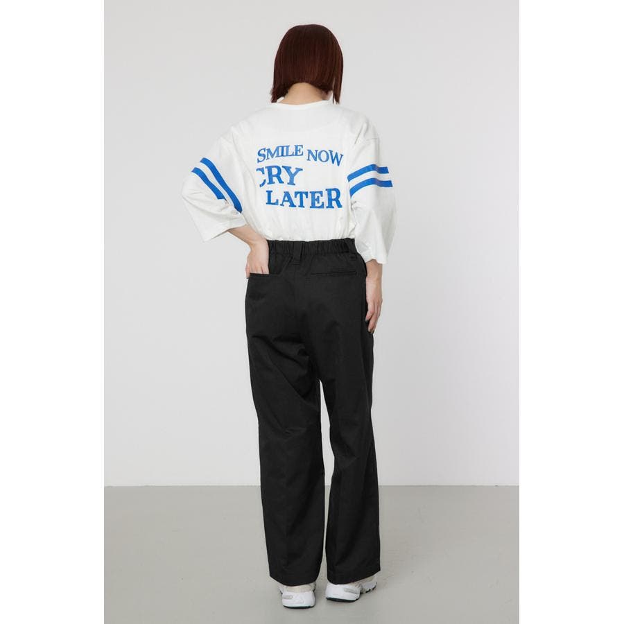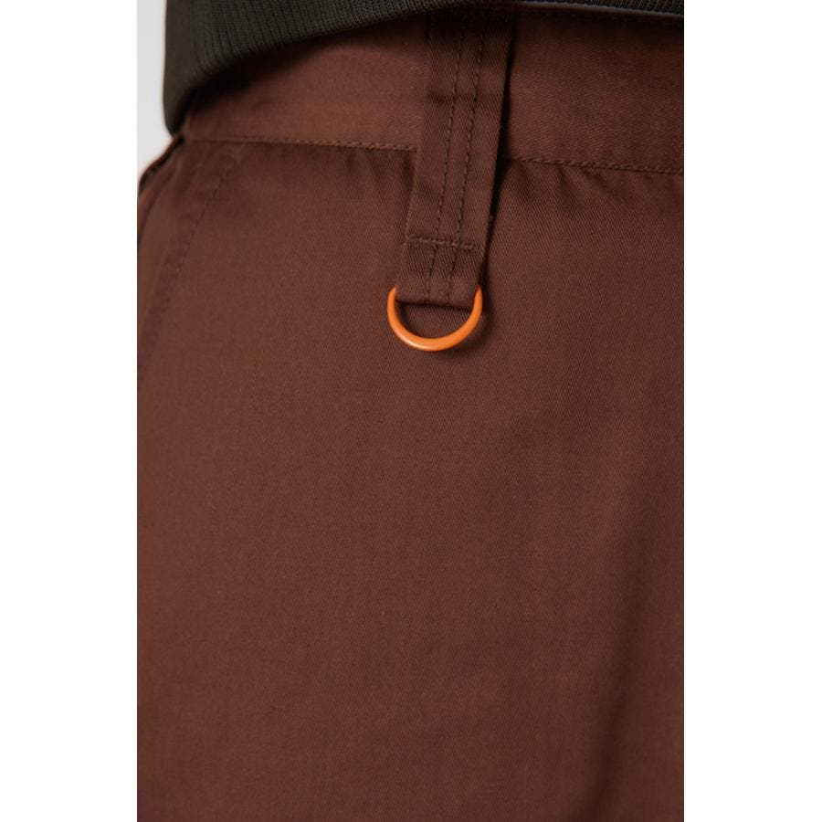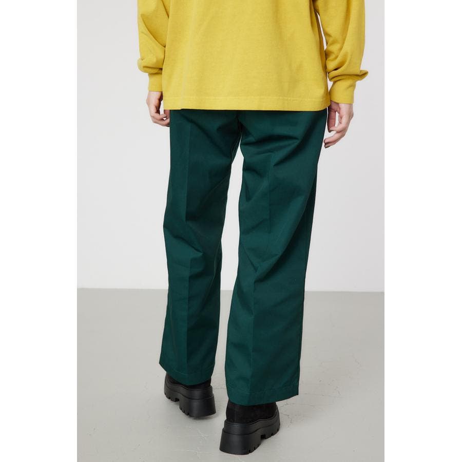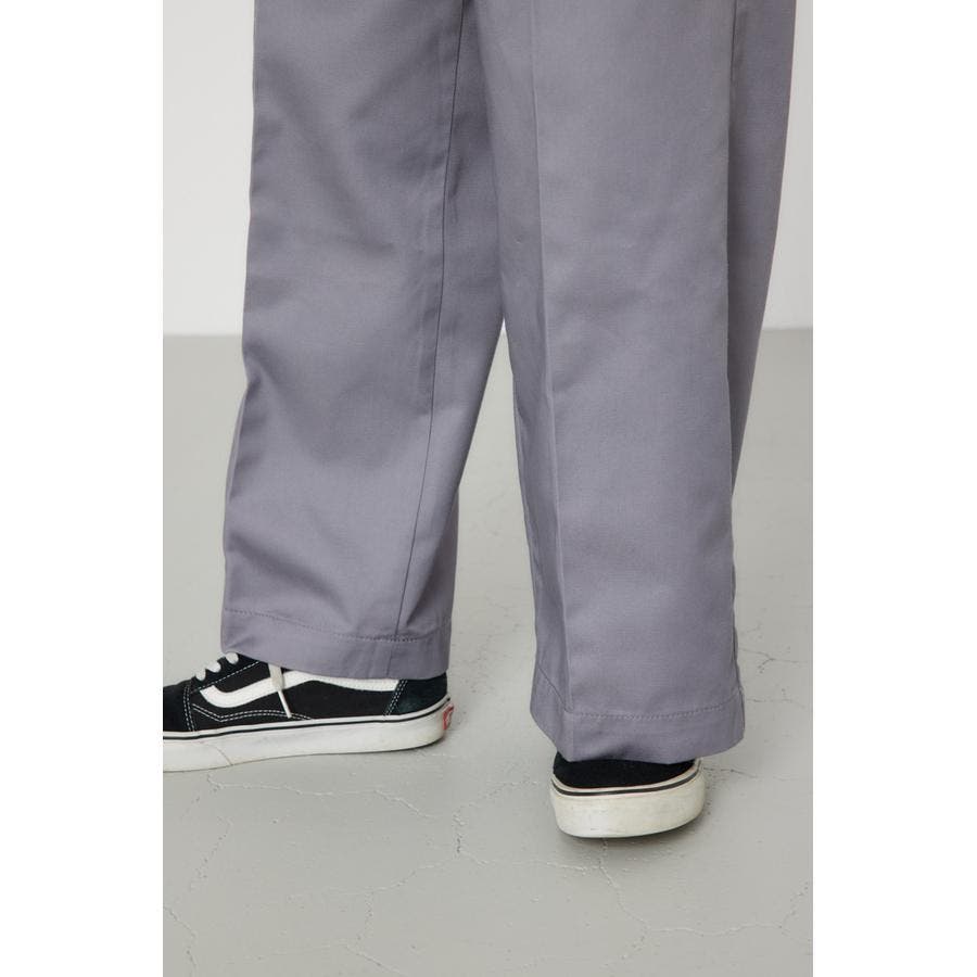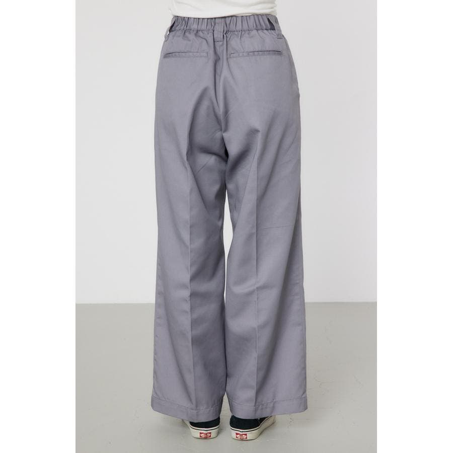 メンズのスケーターが履いているような目の詰まったしっかり目のチノ素材を使用したパンツ。履けば履くほど馴染んで柔らかくなるアイテムです。センタープレスを施し、カジュアルで太めのデザインながら、足をきれいに見せてくれる優れもの。ベルトループには配色のDカンが付いているので、キーやイヤホンケースなどお好きな物をぶら下げて着用すると、メンズライクなスタイリングが完成します。