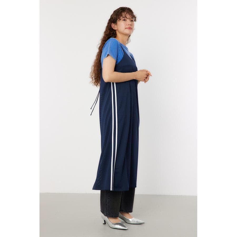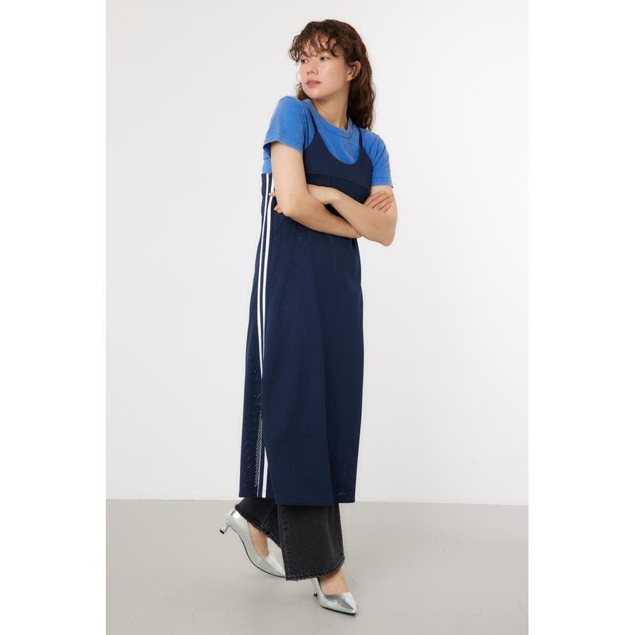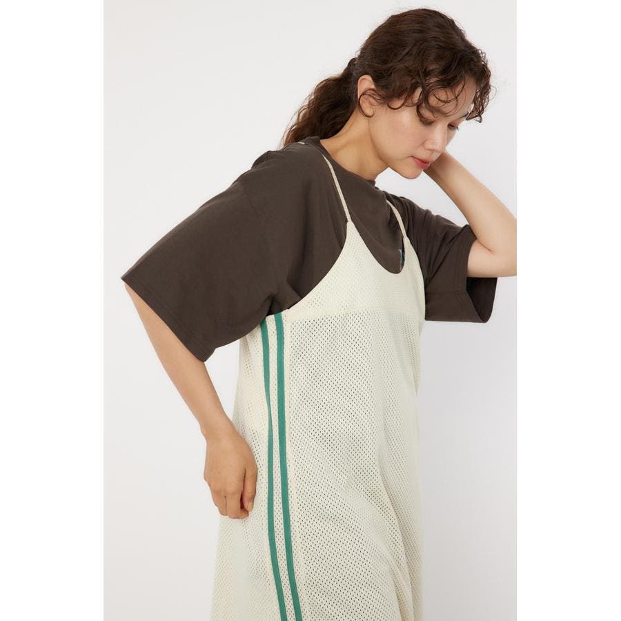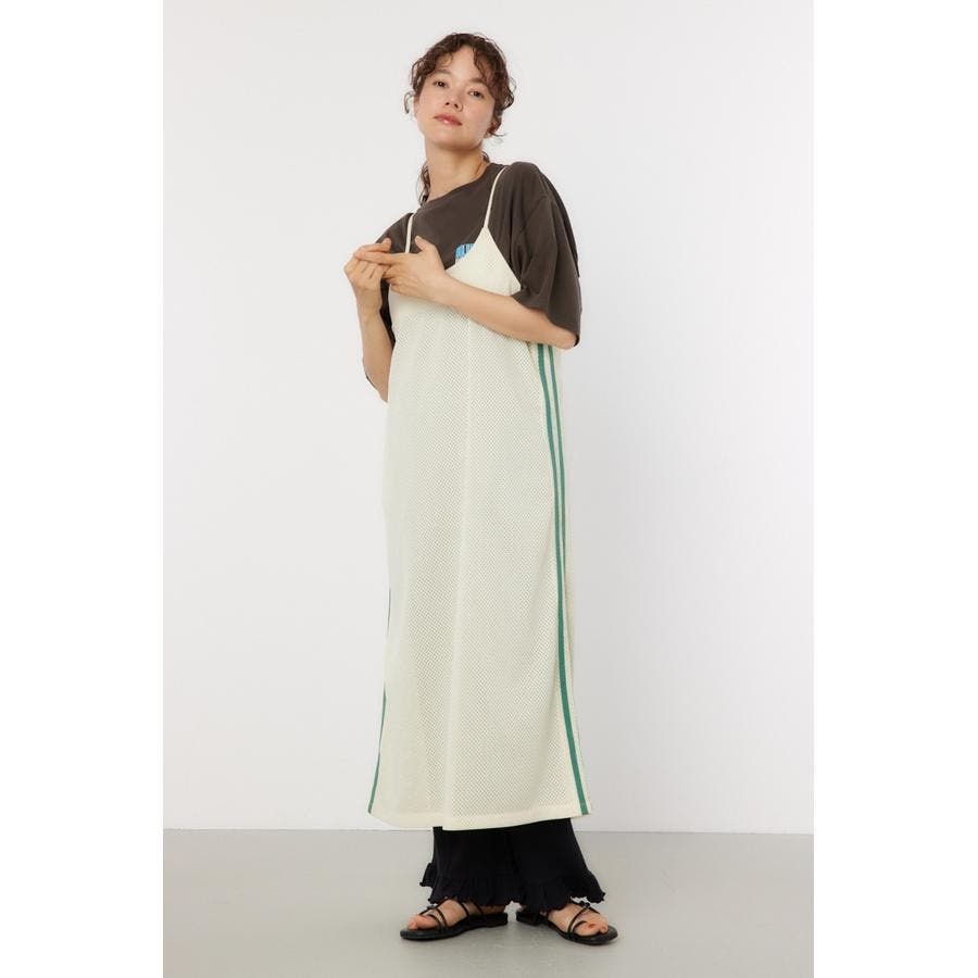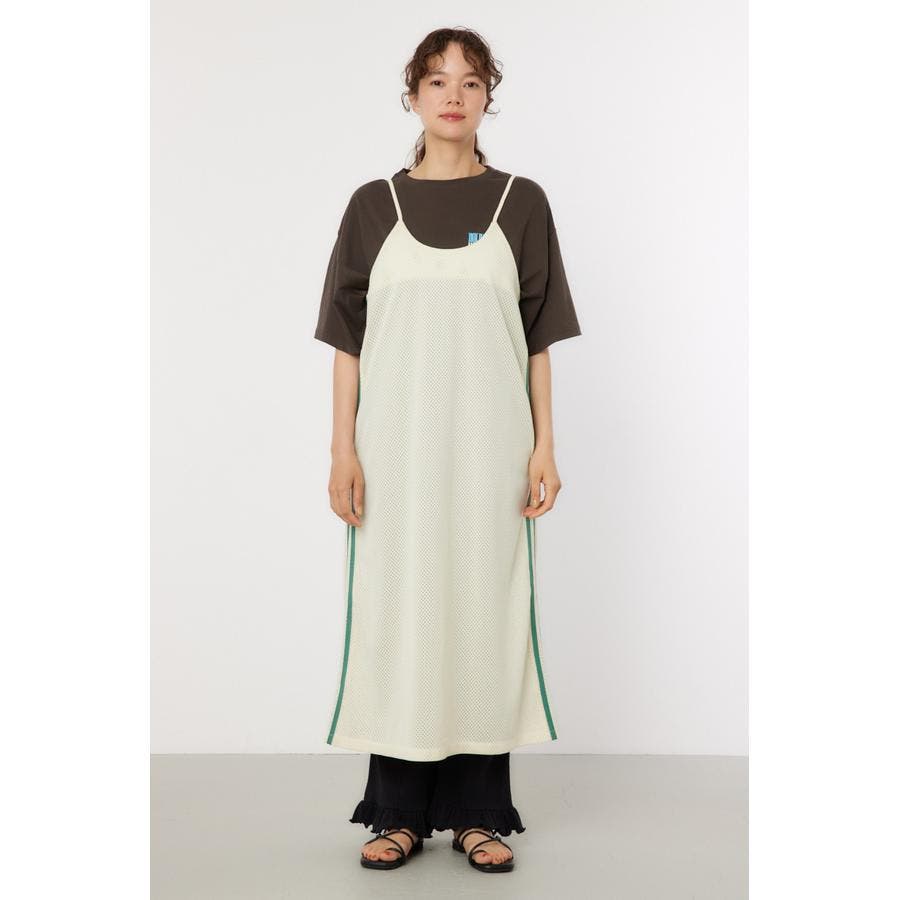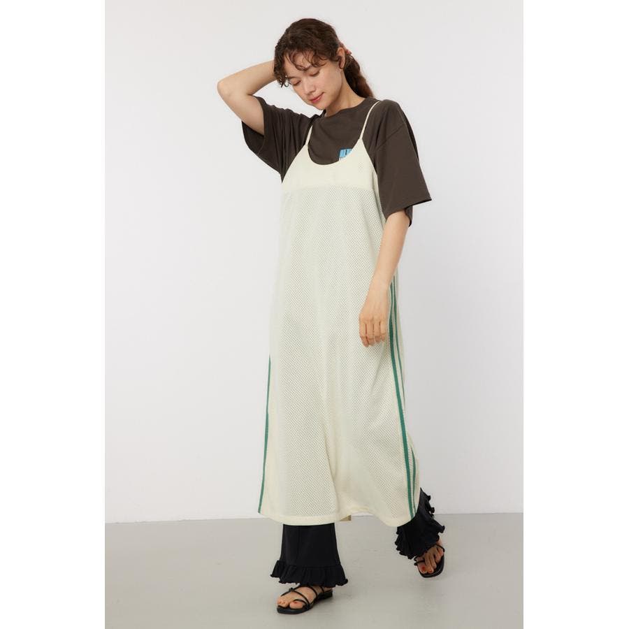 スポーティーなメッシュ素材を使用したキャミワンピース。サイドラインを施したシンプルなデザインなので、グラフィックTシャツを合わせるのがおすすめ。オーバーサイズのTシャツの下にワンピを着用して、スカートだけを出すスタイリングもイチオシです。