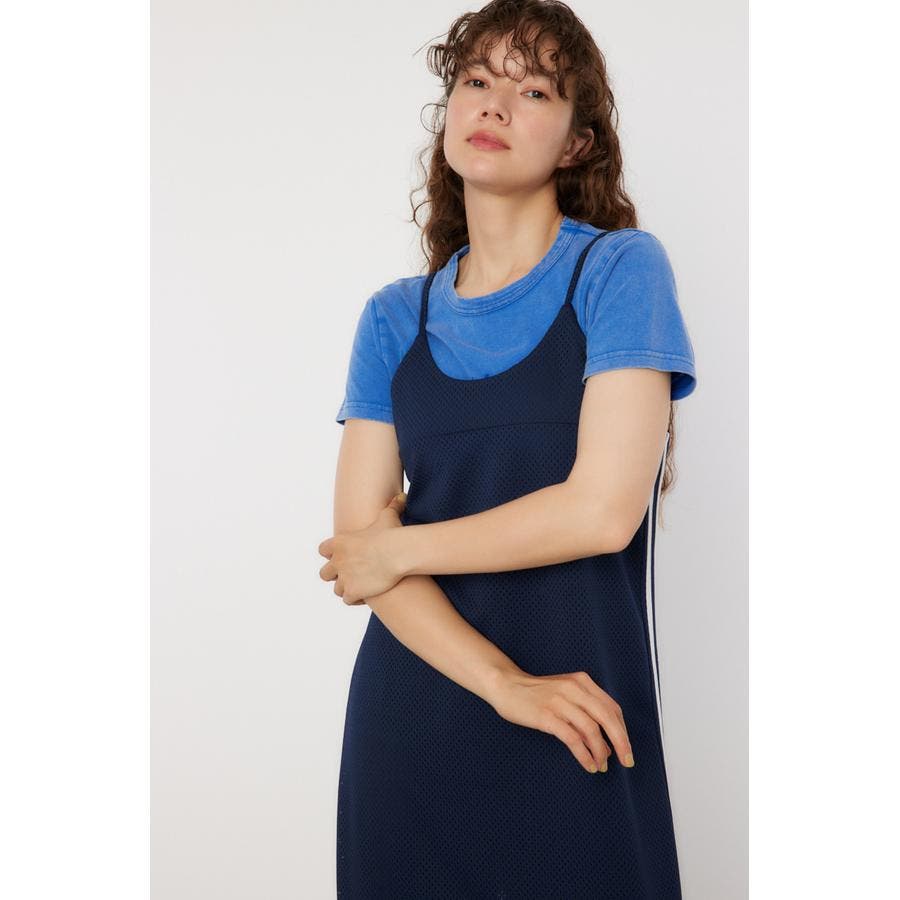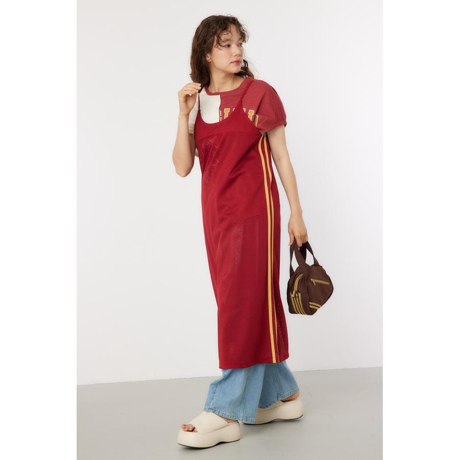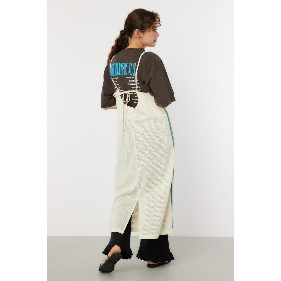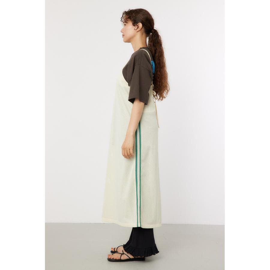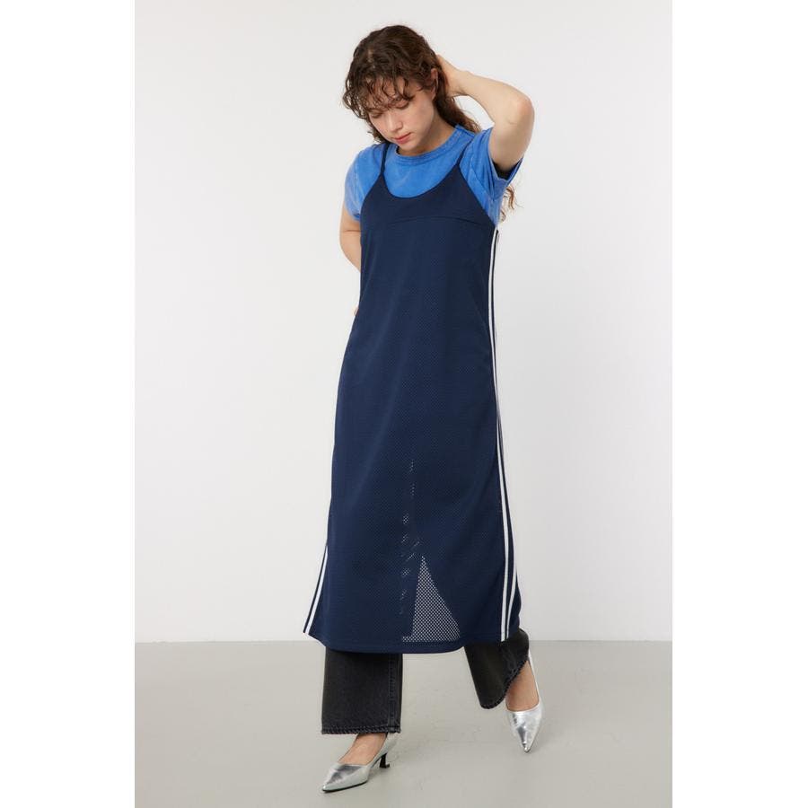 スポーティーなメッシュ素材を使用したキャミワンピース。サイドラインを施したシンプルなデザインなので、グラフィックTシャツを合わせるのがおすすめ。オーバーサイズのTシャツの下にワンピを着用して、スカートだけを出すスタイリングもイチオシです。