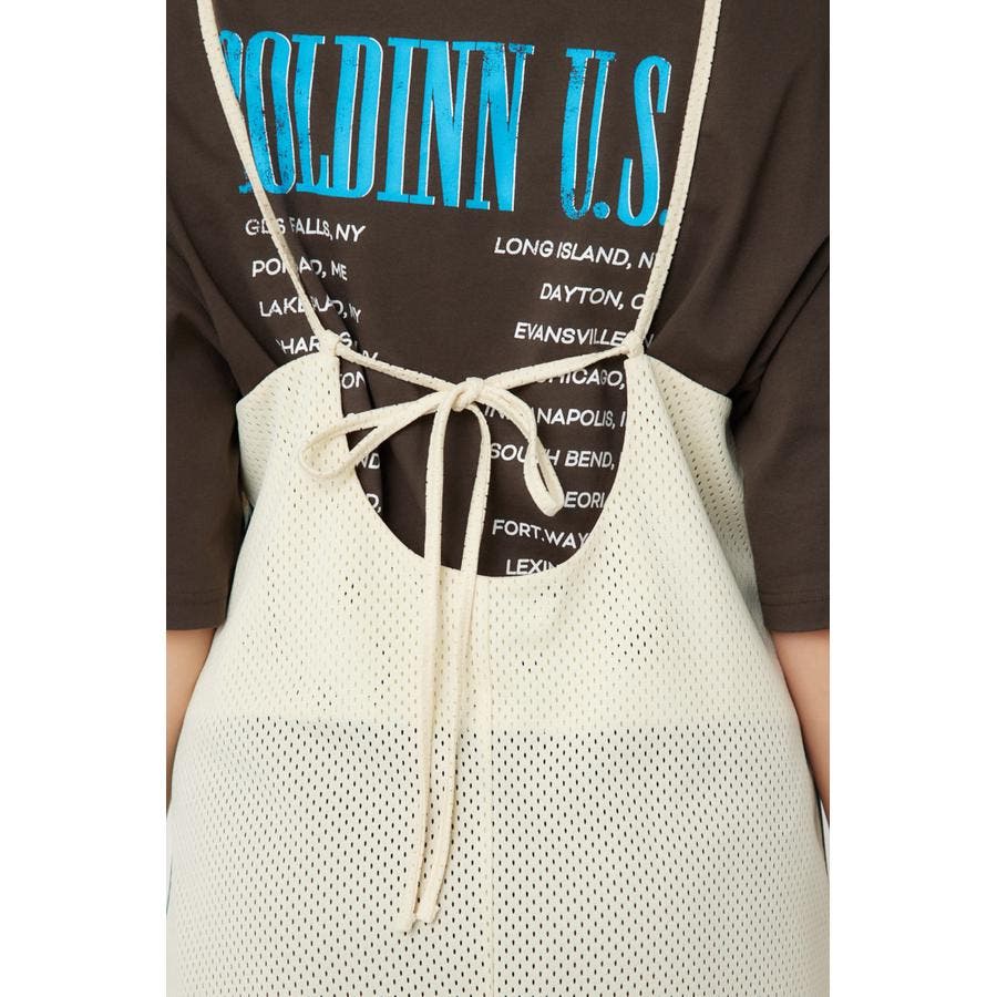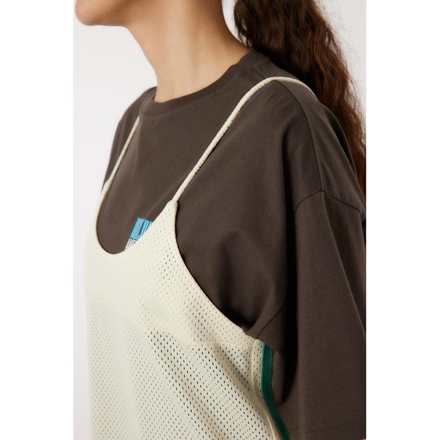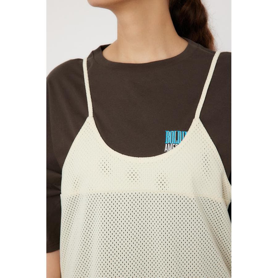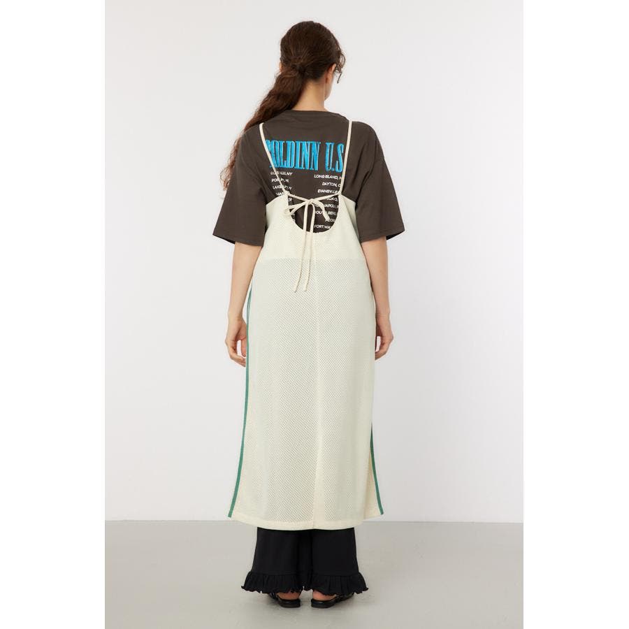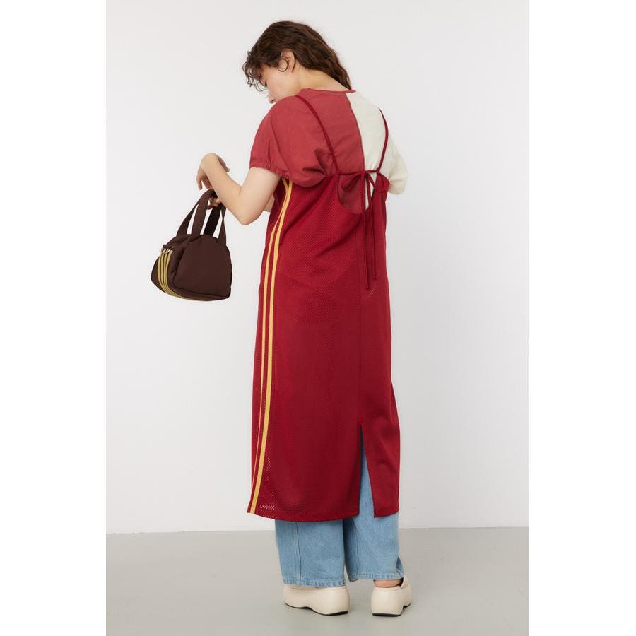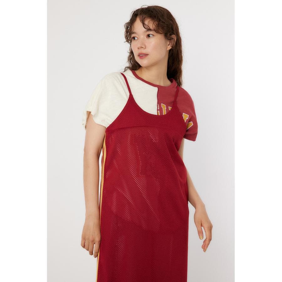 スポーティーなメッシュ素材を使用したキャミワンピース。サイドラインを施したシンプルなデザインなので、グラフィックTシャツを合わせるのがおすすめ。オーバーサイズのTシャツの下にワンピを着用して、スカートだけを出すスタイリングもイチオシです。