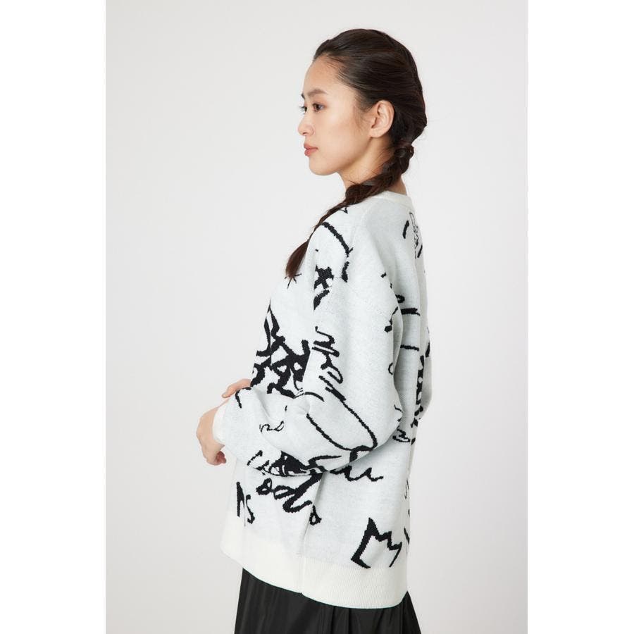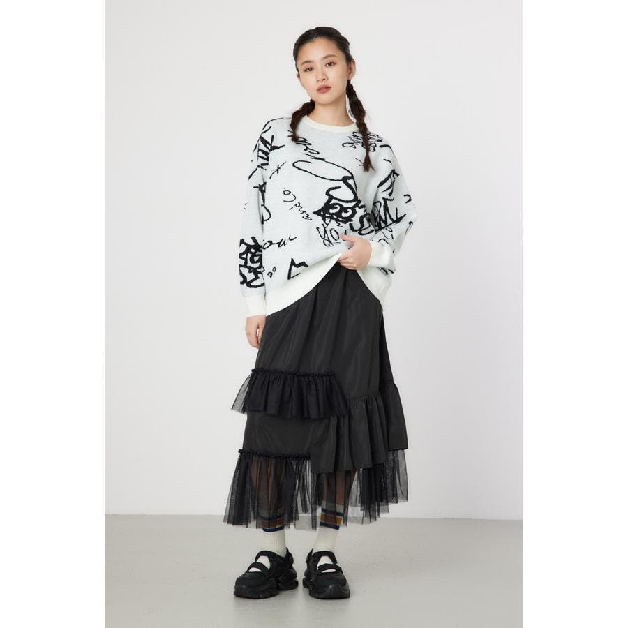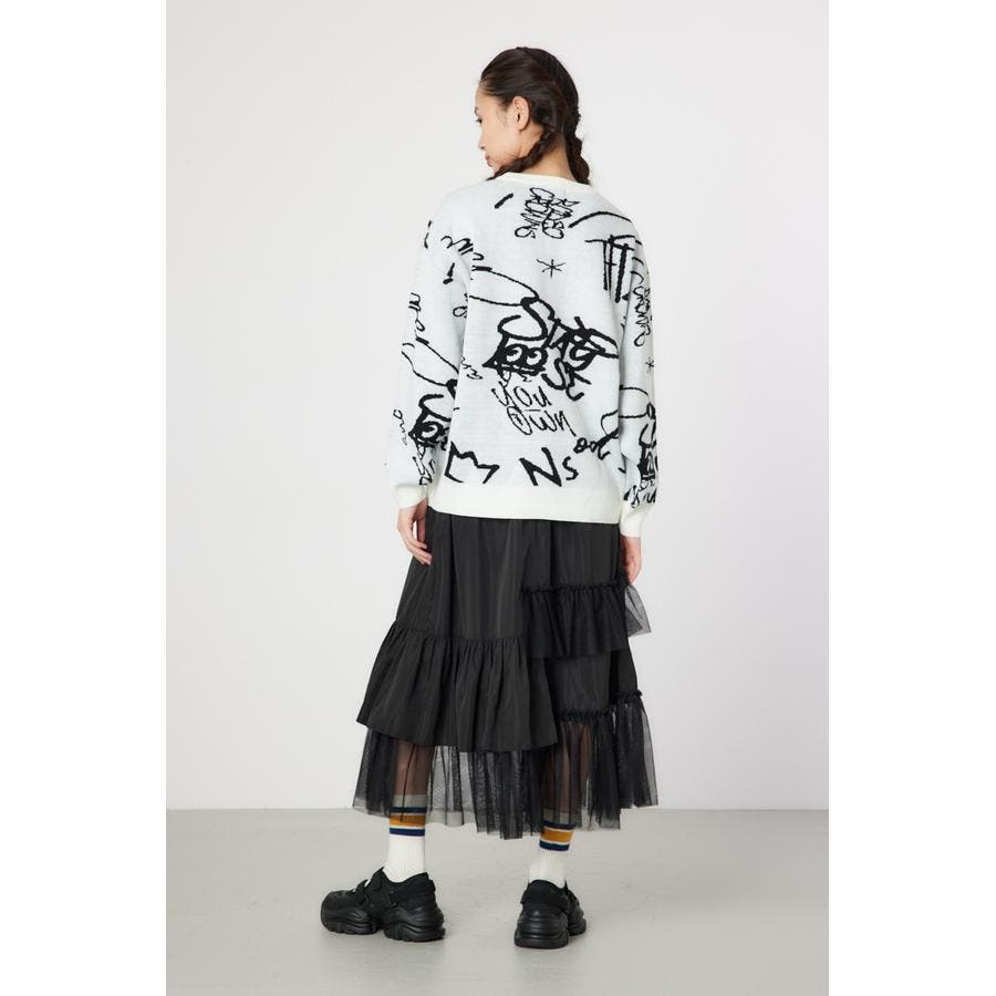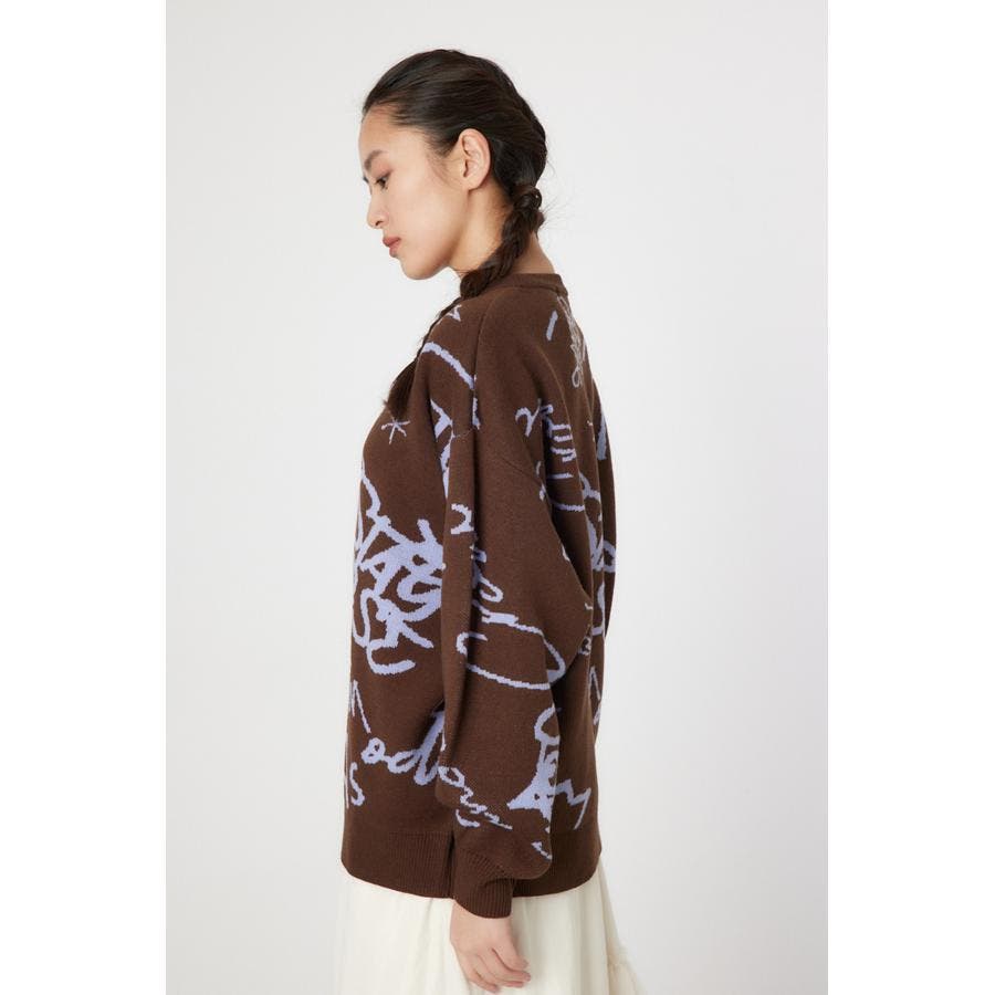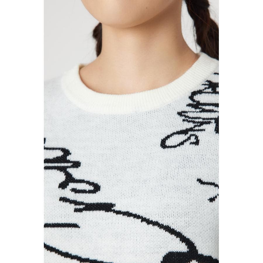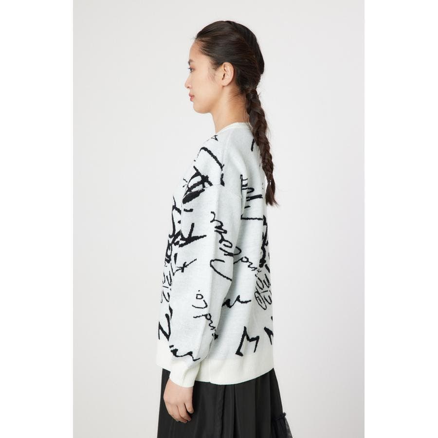 流行りのグラフィティー風のフォントでロゴやメッセージをランダムに落とし込んだ総柄ニットトップス。スタンダードなカラーで柄を落とし込んでいるので、見た目以上にコーディネートに溶け込む一枚。ニットらしいジャガード表現で、ストレスなく着用できます。ボーイズライクにバギーやワイドデニムと合わせたり、ガーリーなコーディネートの外しアイテムとしてもおすすめ。