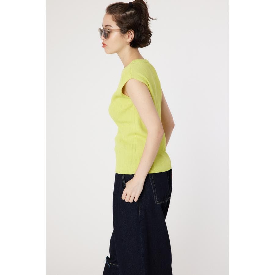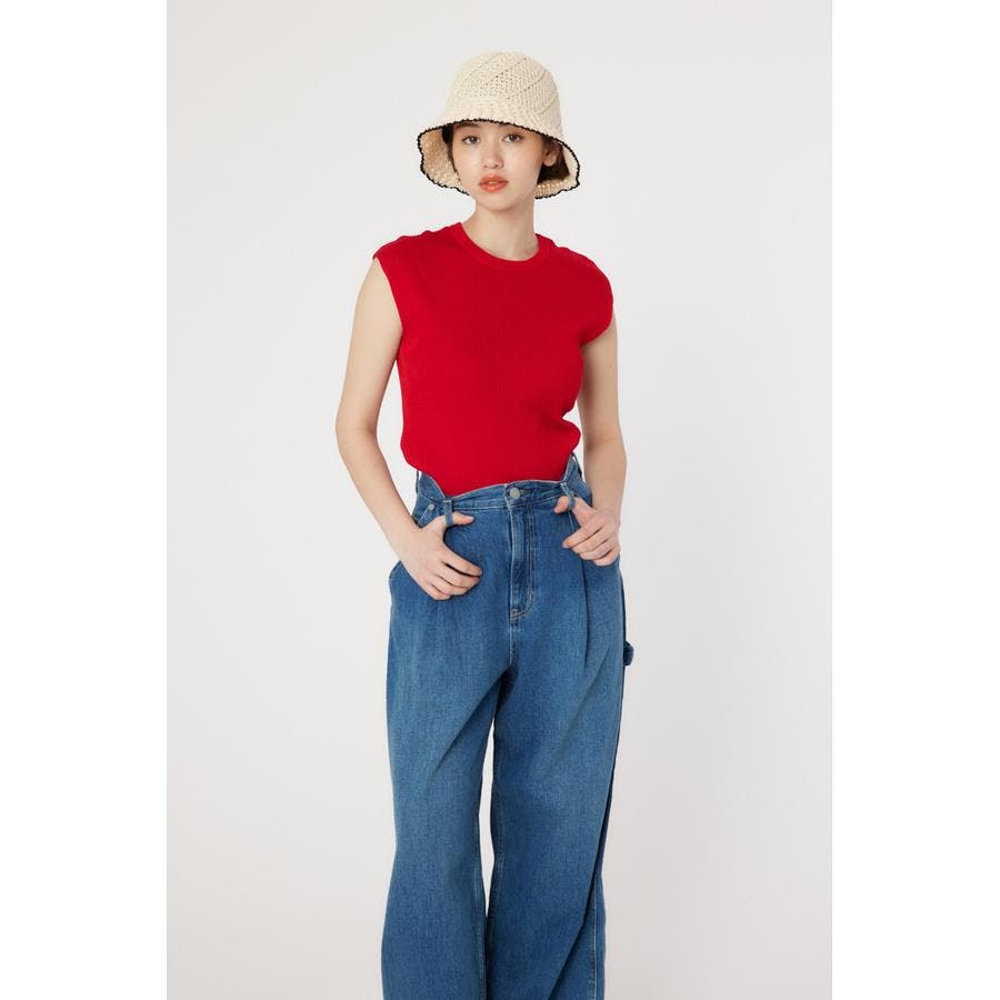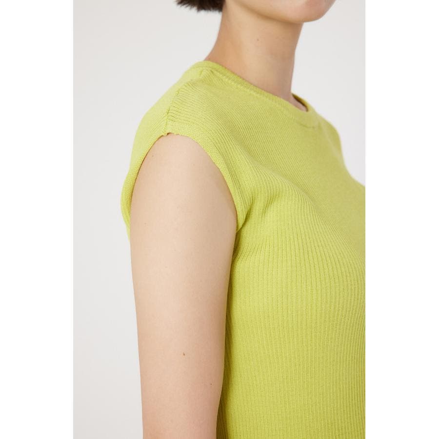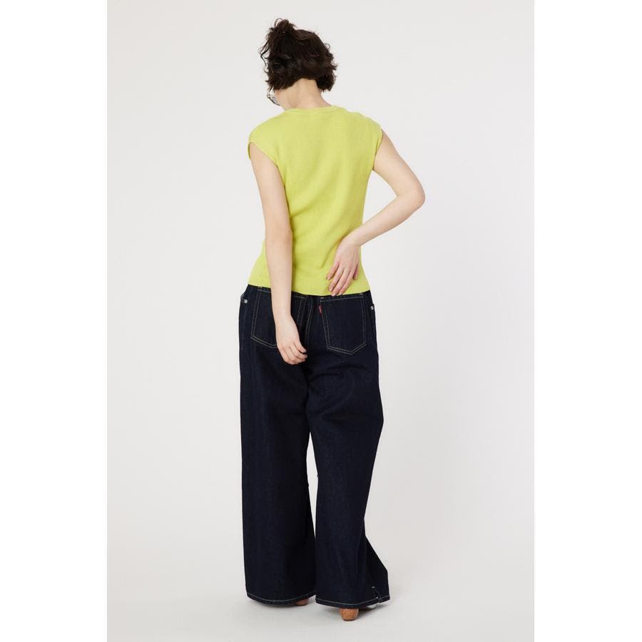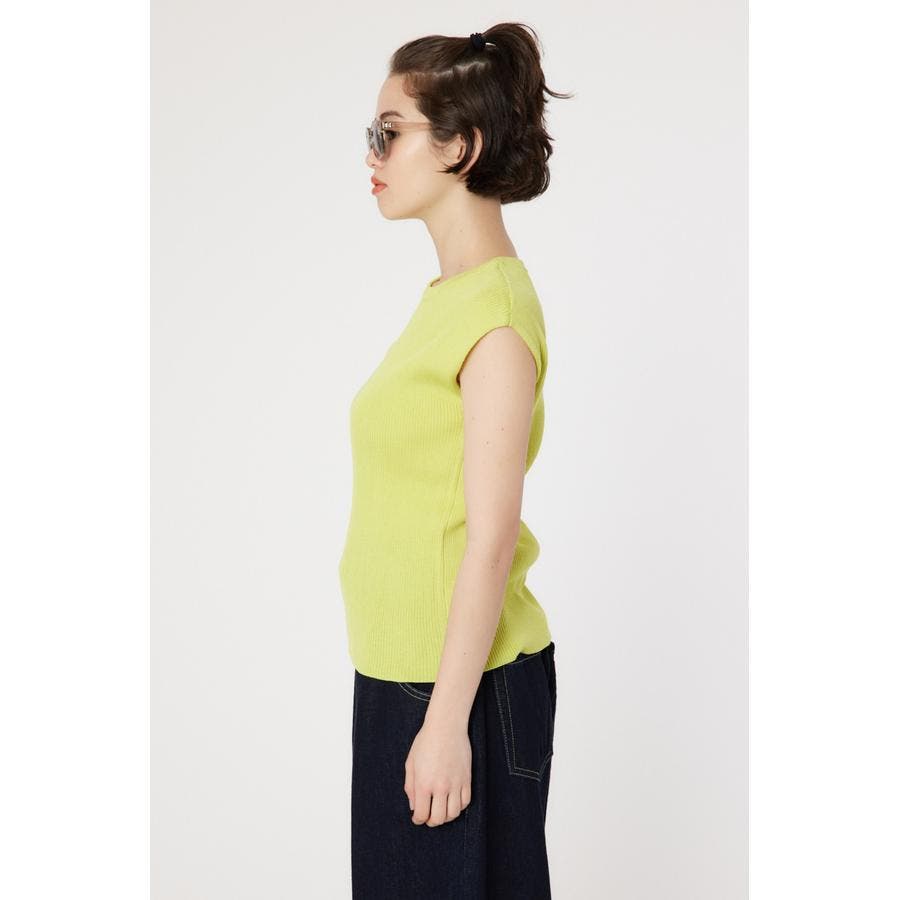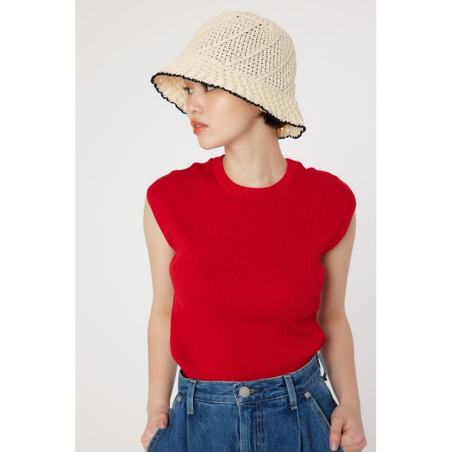 ニット編地でありながら、繊細な細番のポリエステル糸を使用し、春夏らしいドライ感を表現したノースリーブトップス。ベーシックに使えるOWHT・BLKと、コーデのポイントになるLIME・REDの4色展開です。