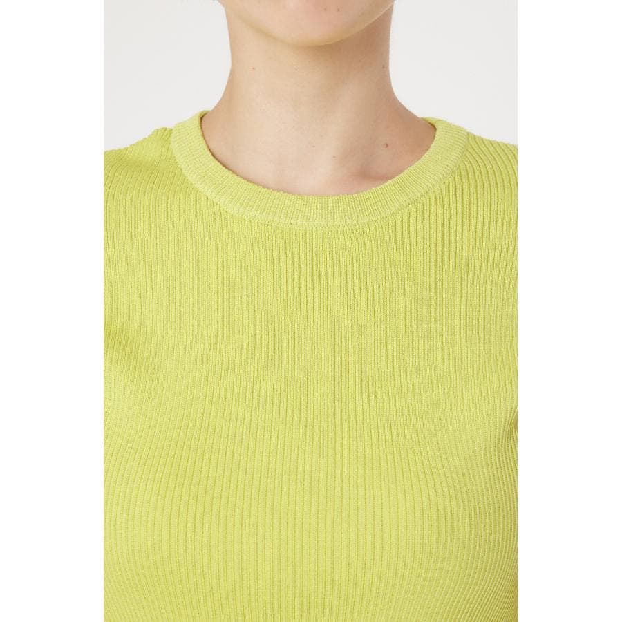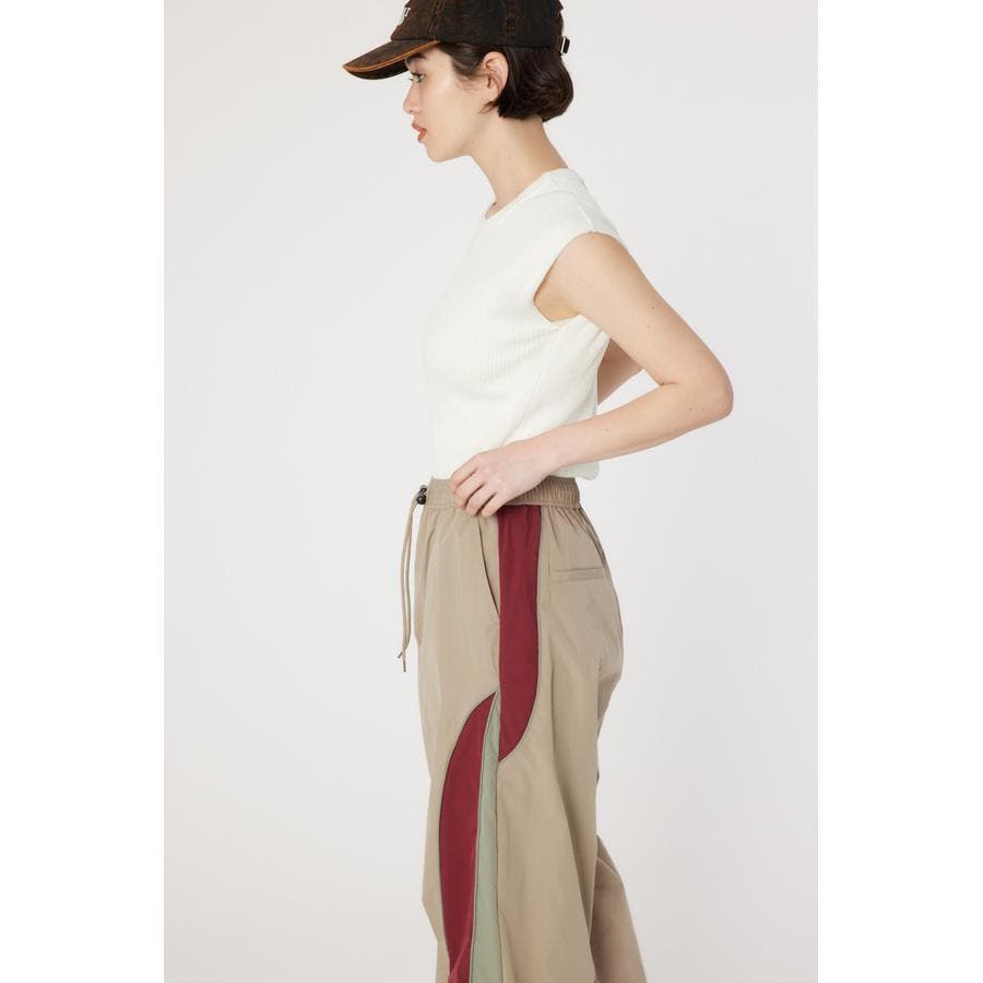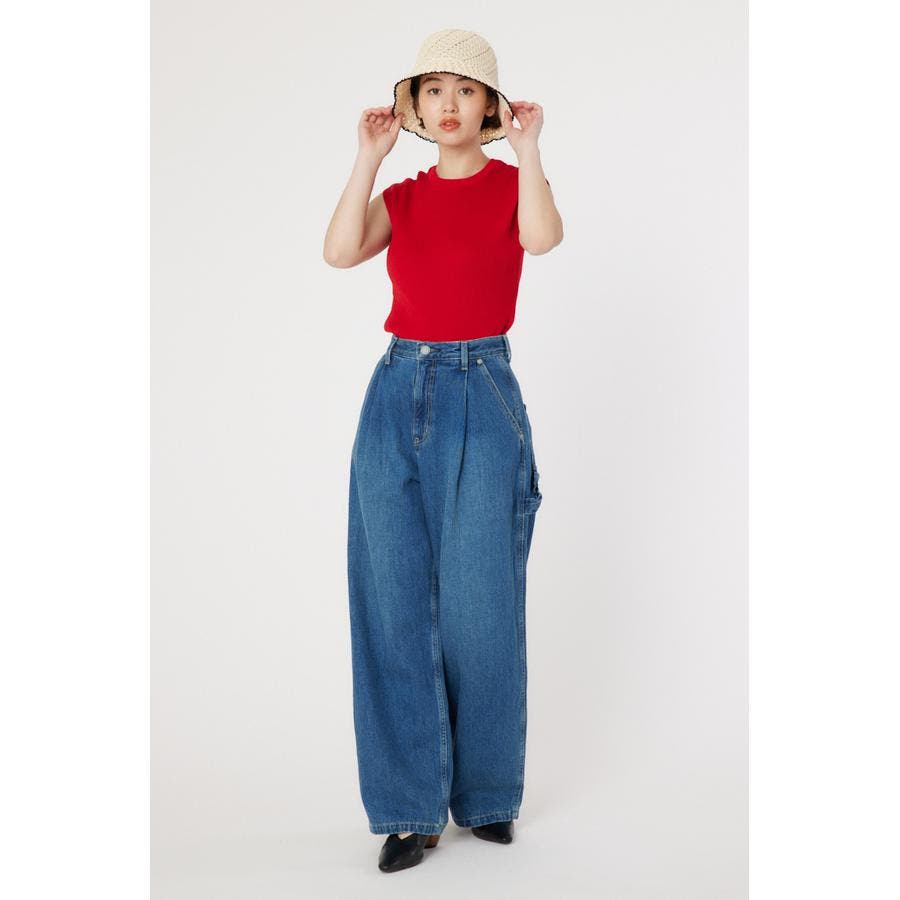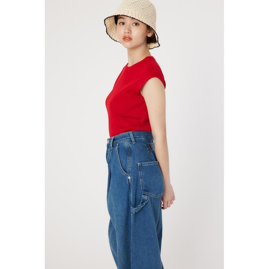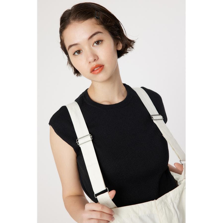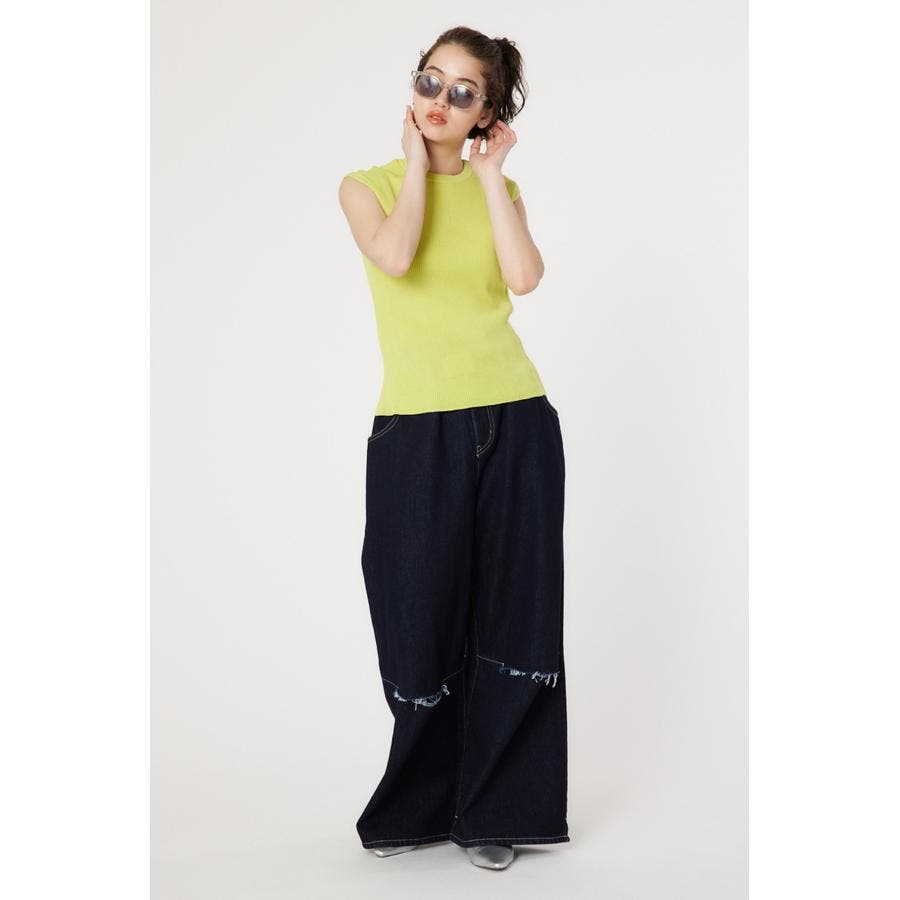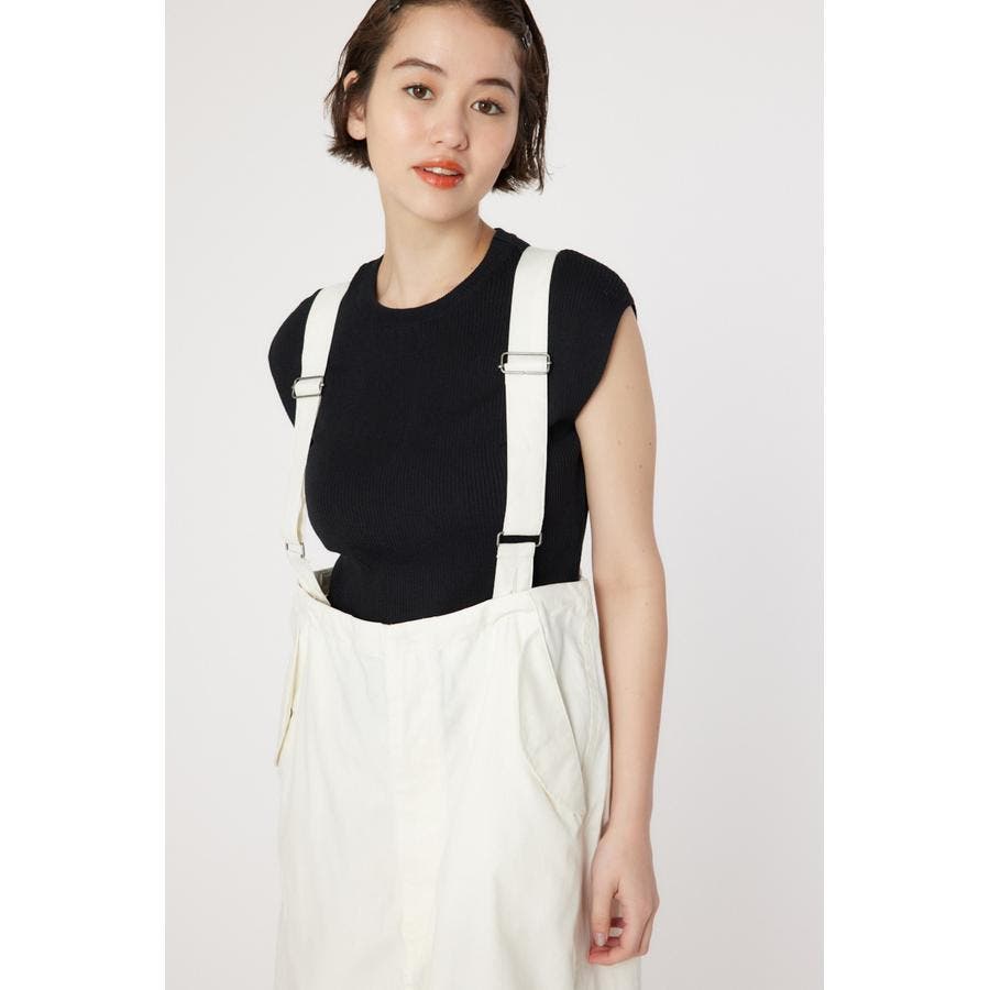 ニット編地でありながら、繊細な細番のポリエステル糸を使用し、春夏らしいドライ感を表現したノースリーブトップス。ベーシックに使えるOWHT・BLKと、コーデのポイントになるLIME・REDの4色展開です。