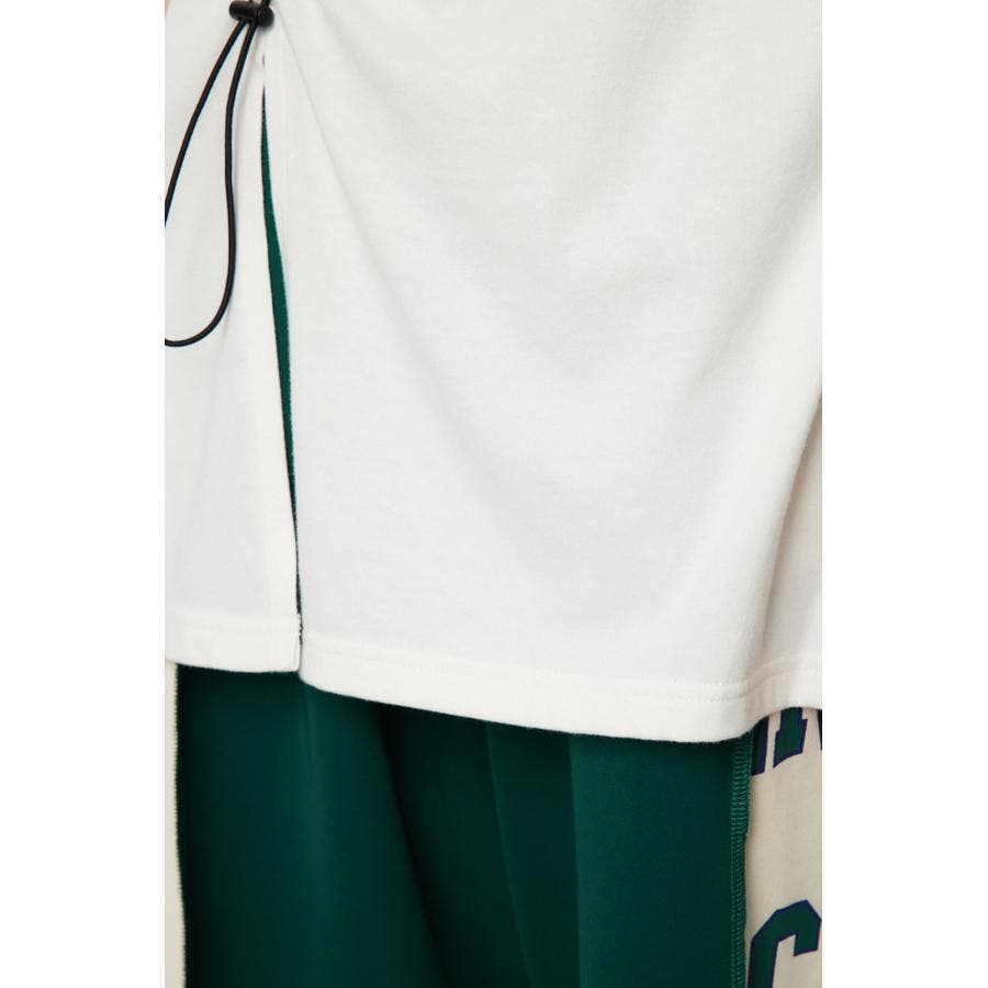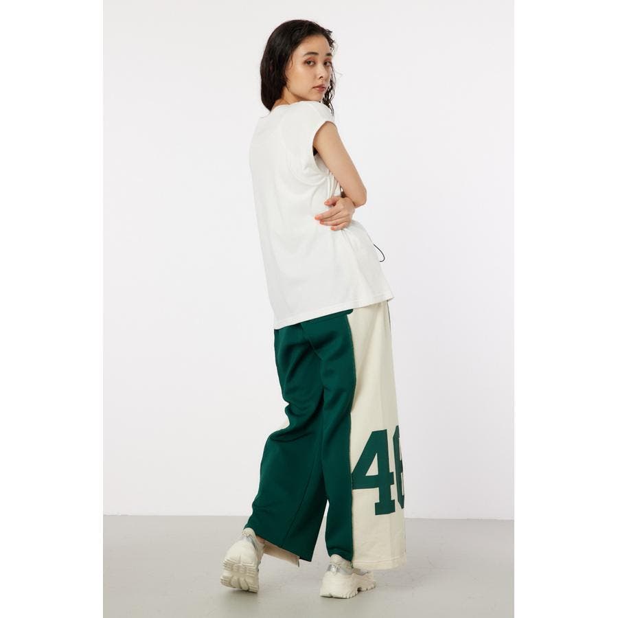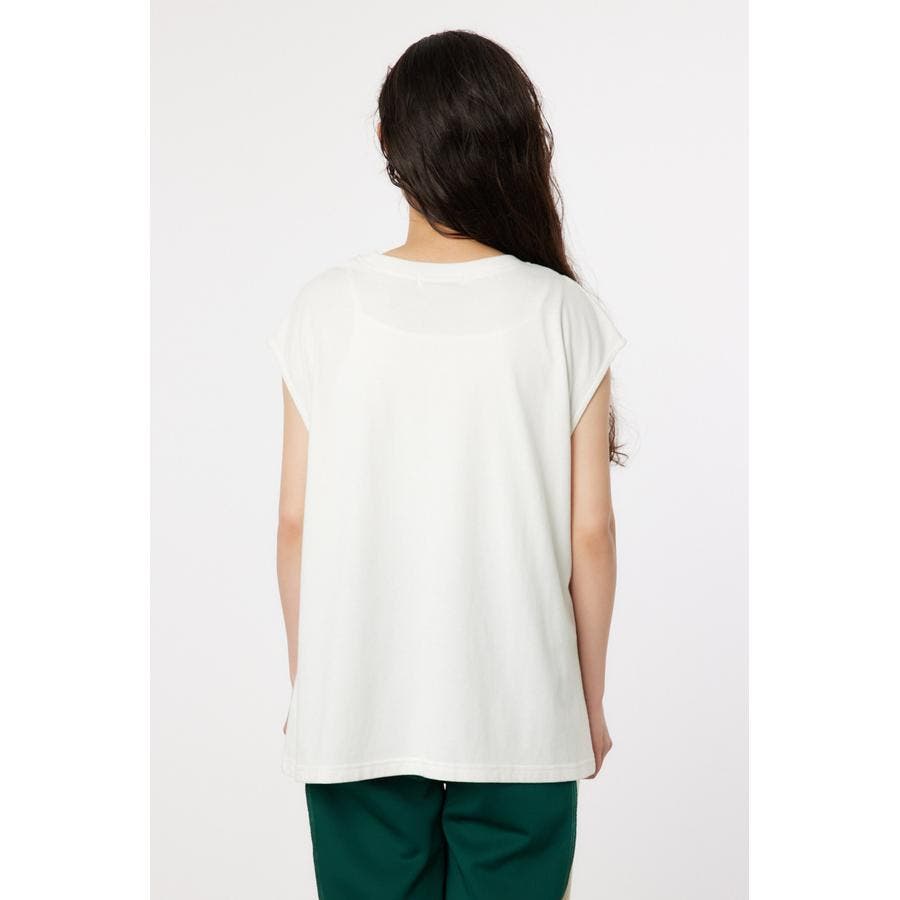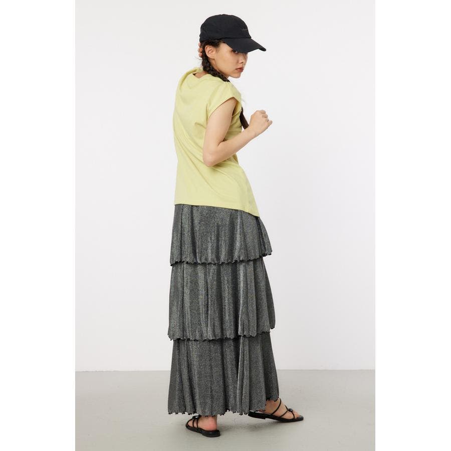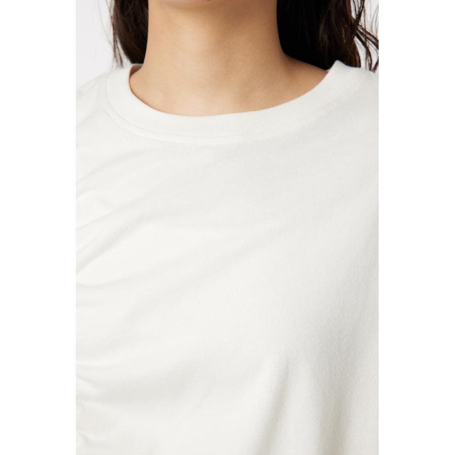 ベーシックなタンクトップに、シャーリングディティールをプラスしたトップス。シャーリング部分には長めのスリットを入れることで、インしなくても腰位置を高く、スタイルアップするデザインになっています。