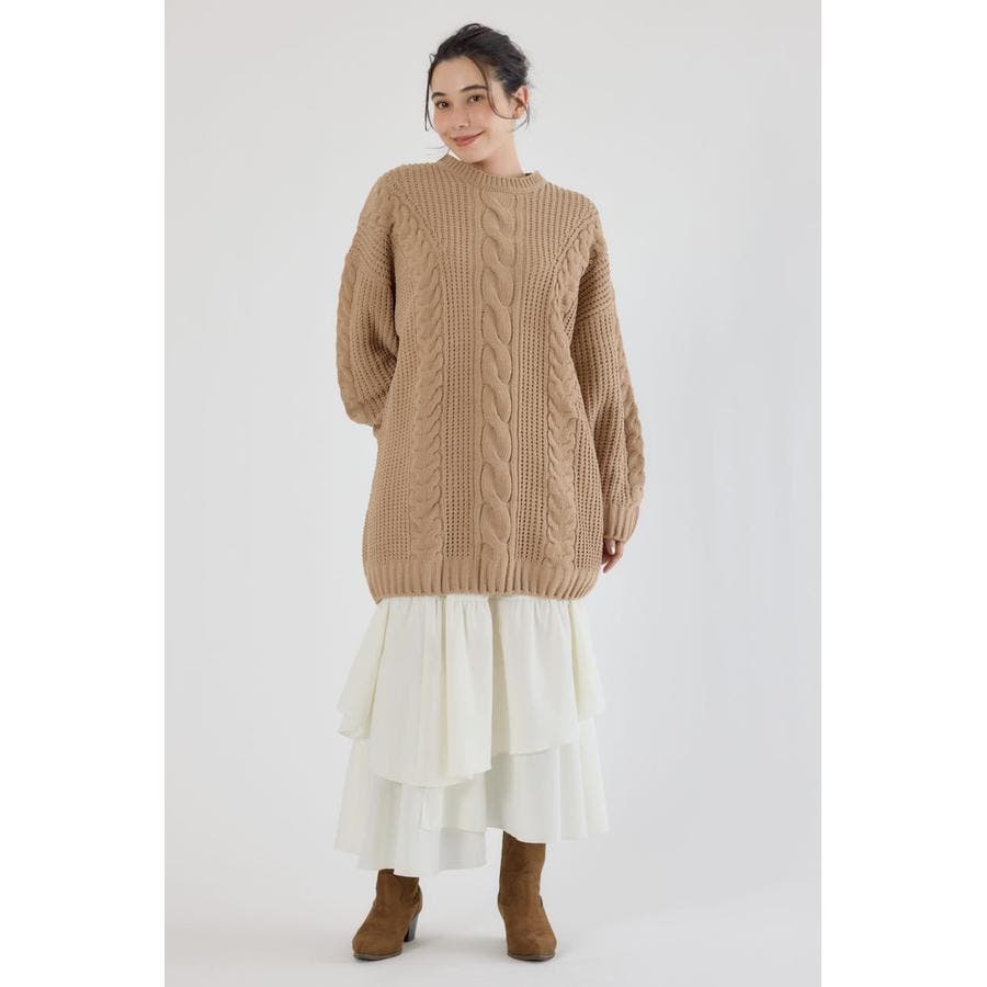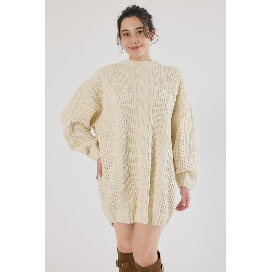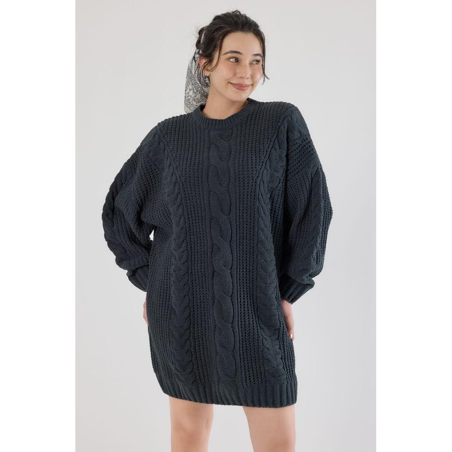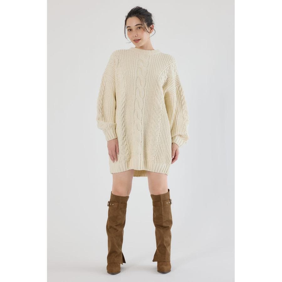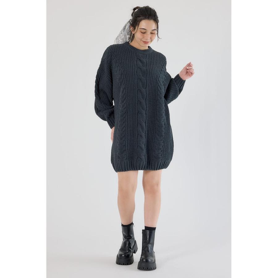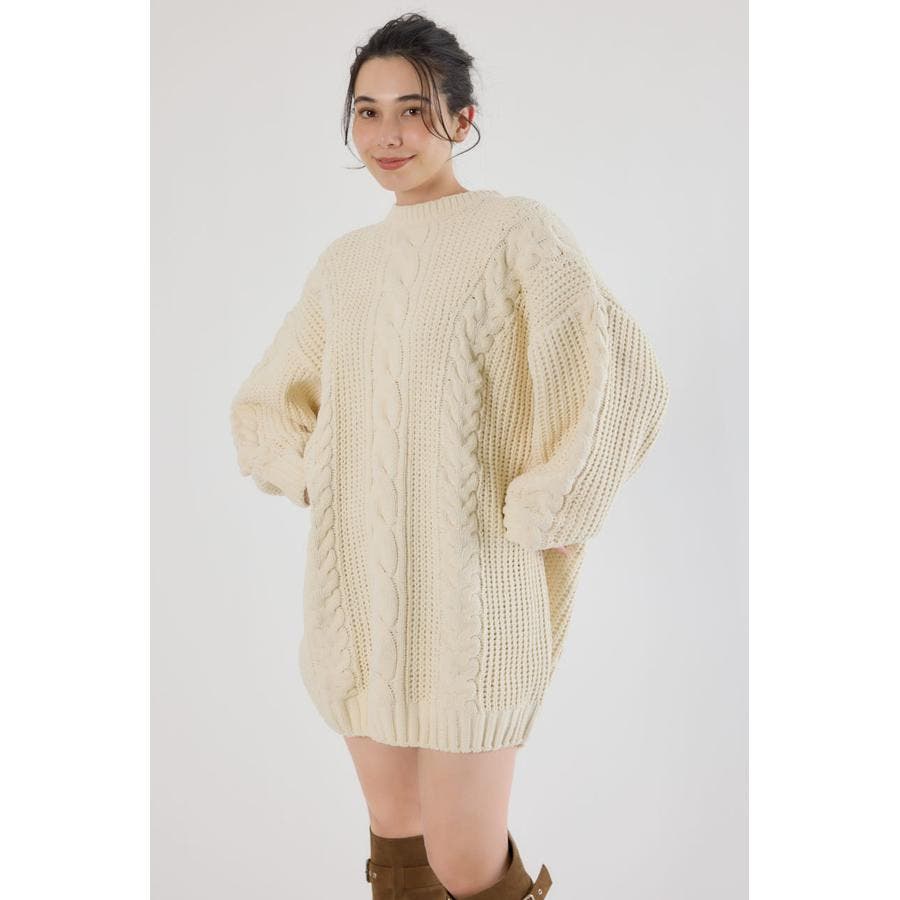ケーブルモールニットワンピース