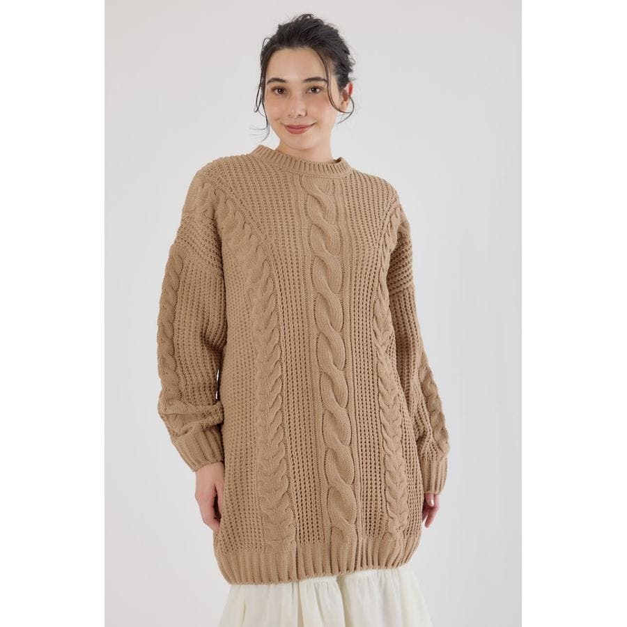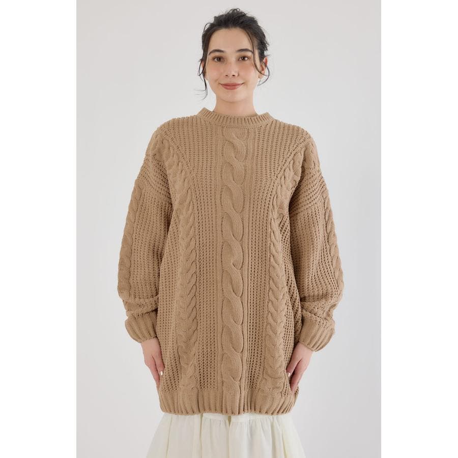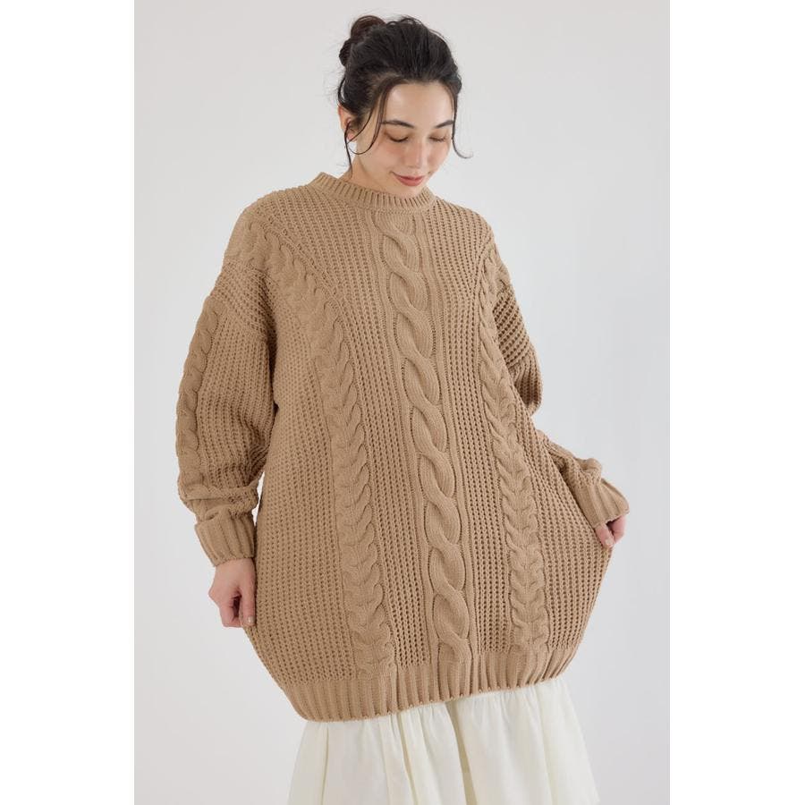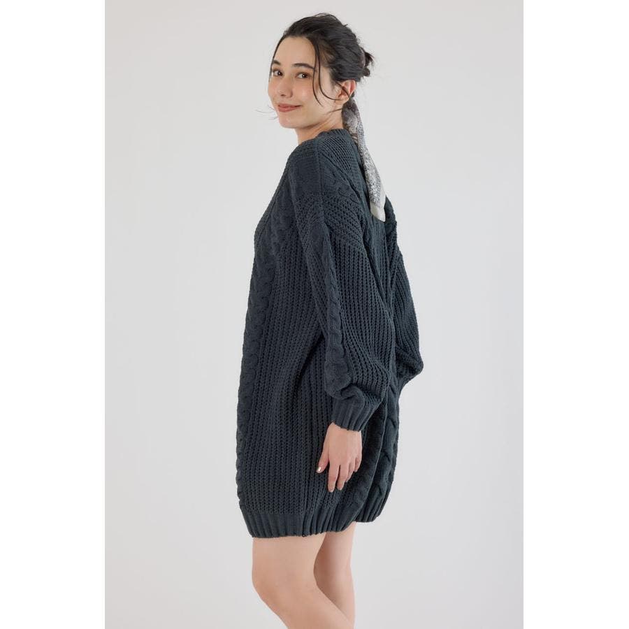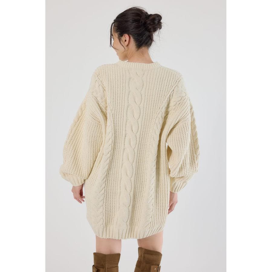 立体的なケーブル編みが印象的なニットワンピース。