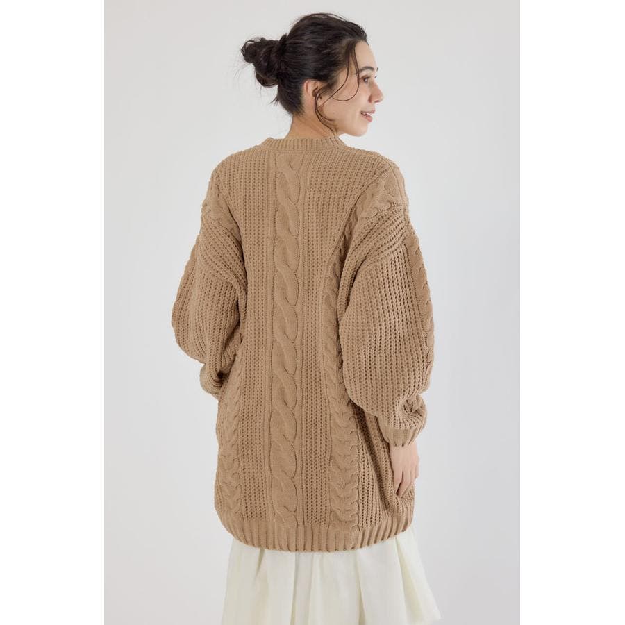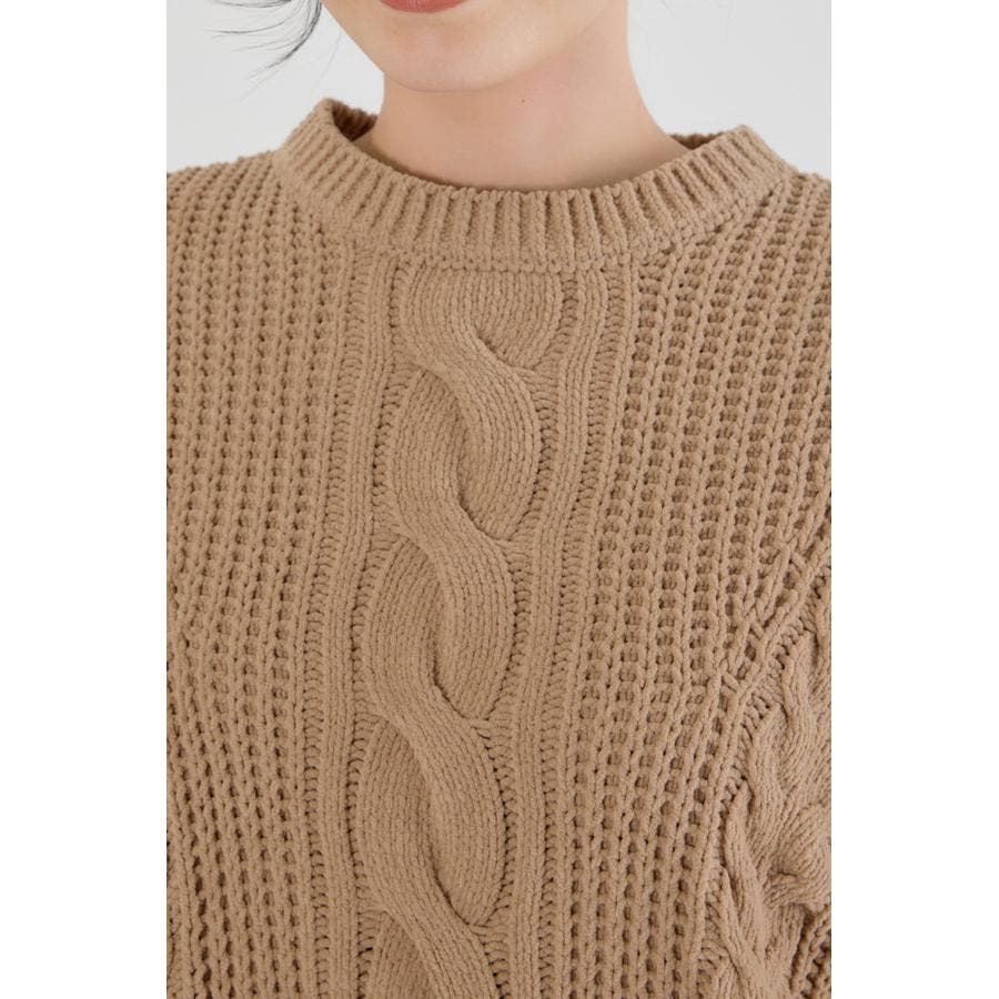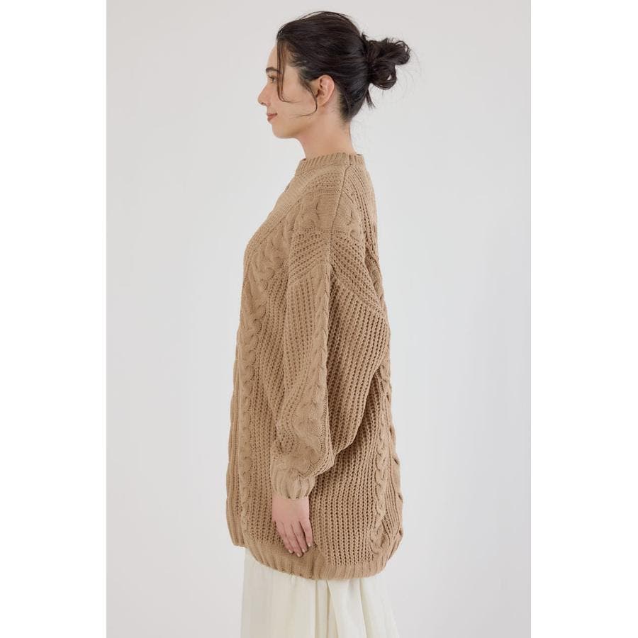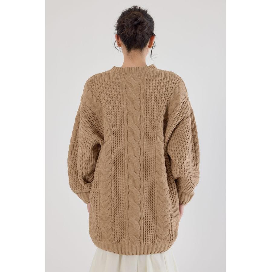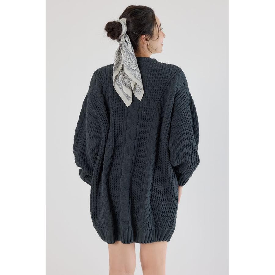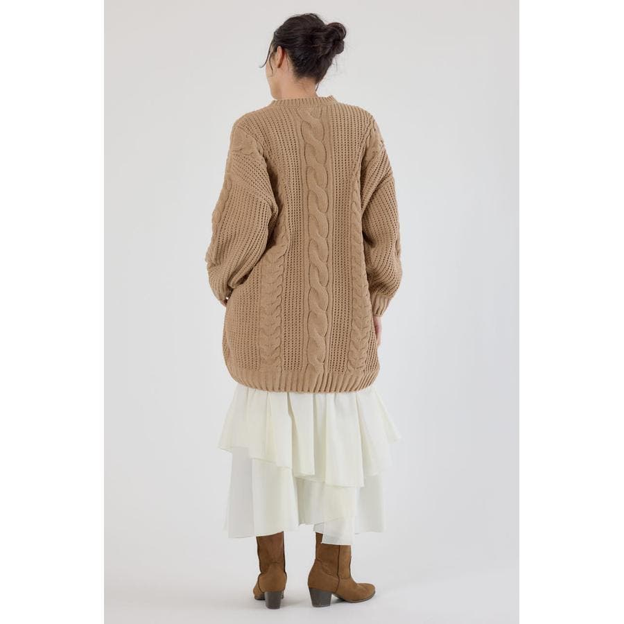 立体的なケーブル編みが印象的なニットワンピース。
