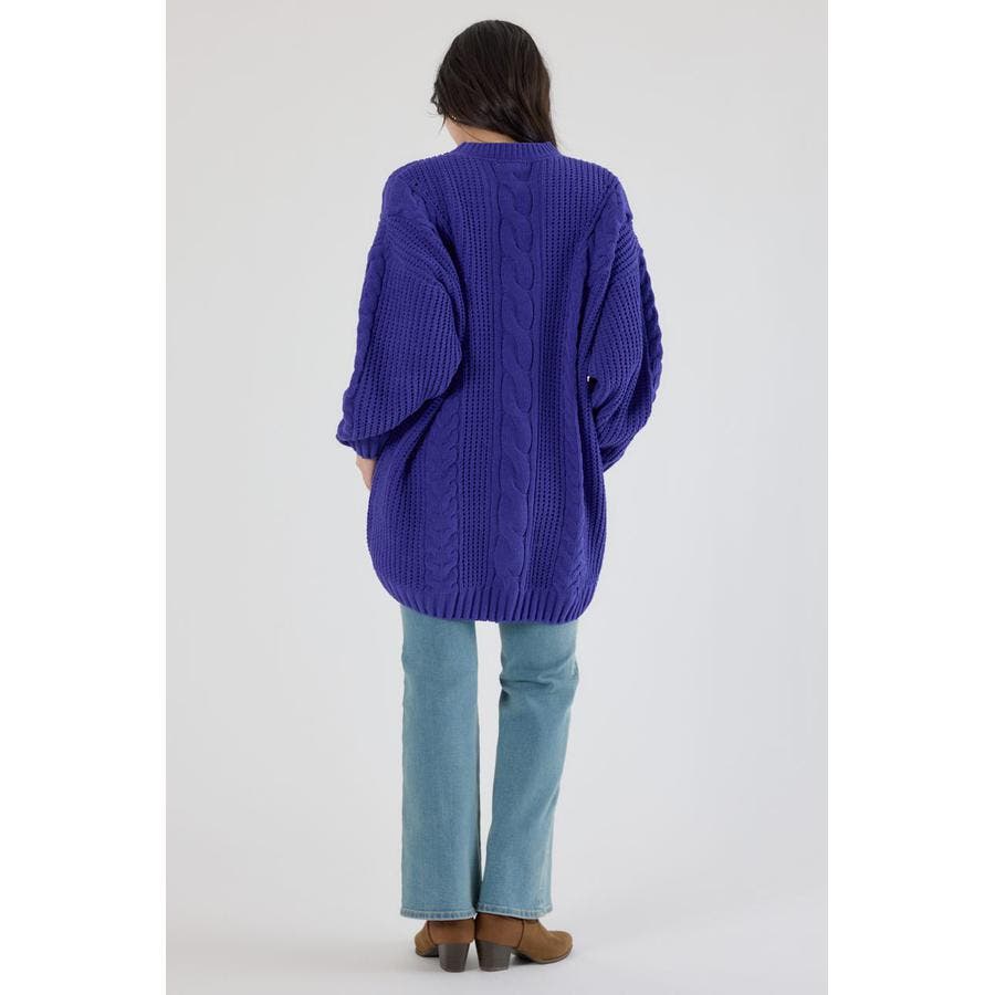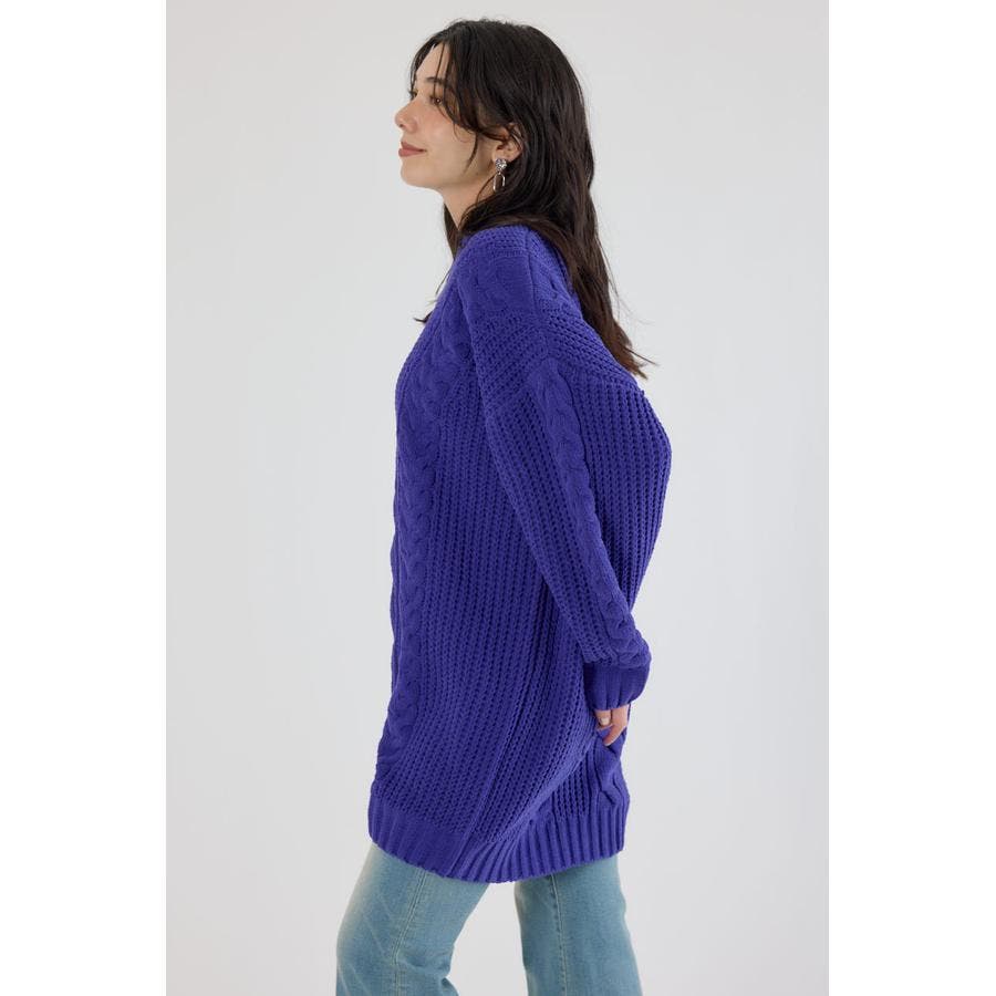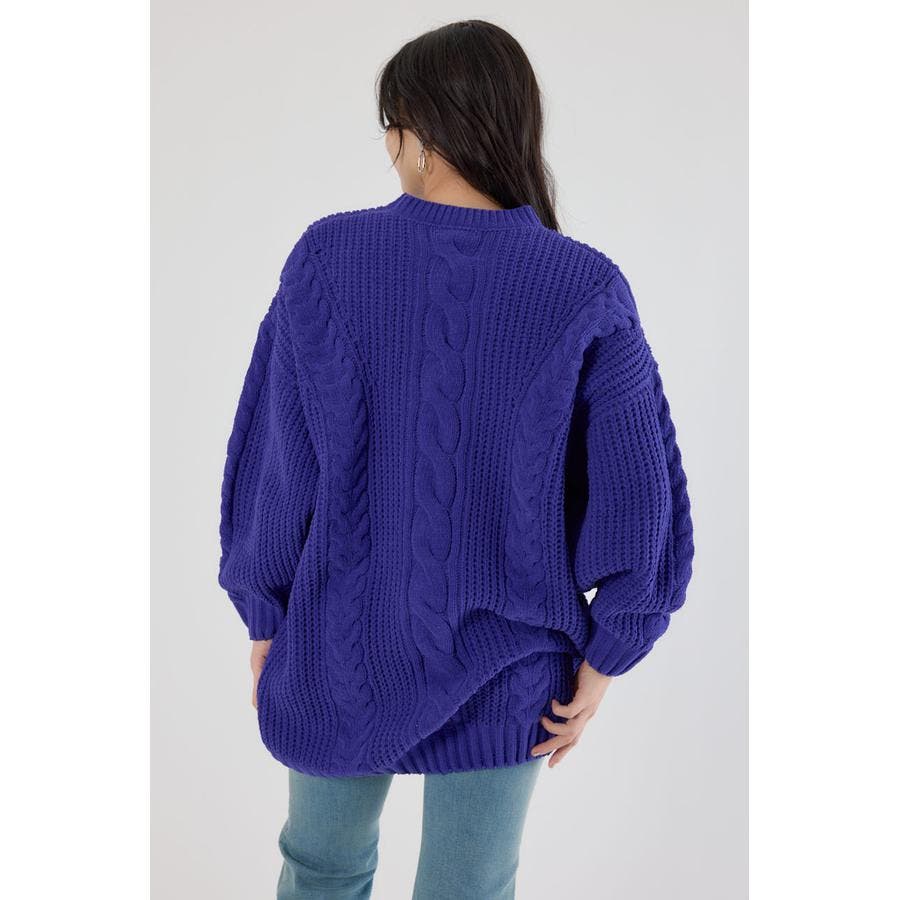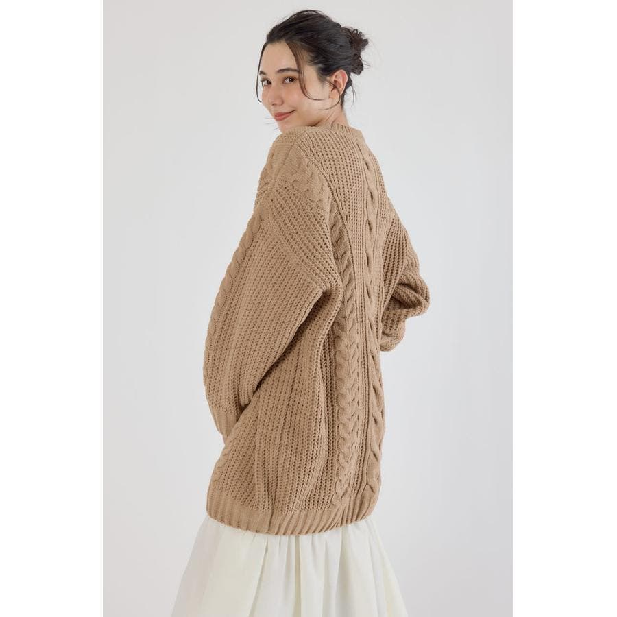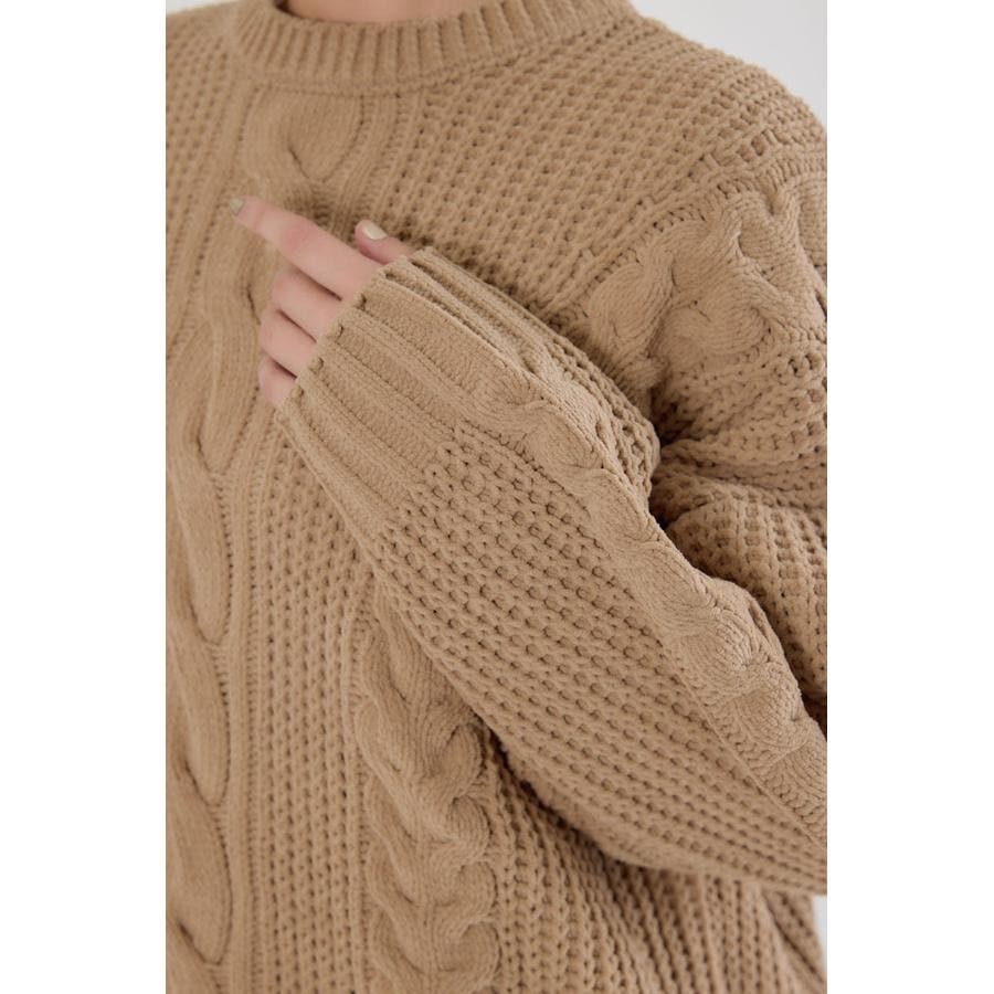 編み柄が引き立つ様にケーブルの凹凸で編み込み、風合い出しにこだわっています。