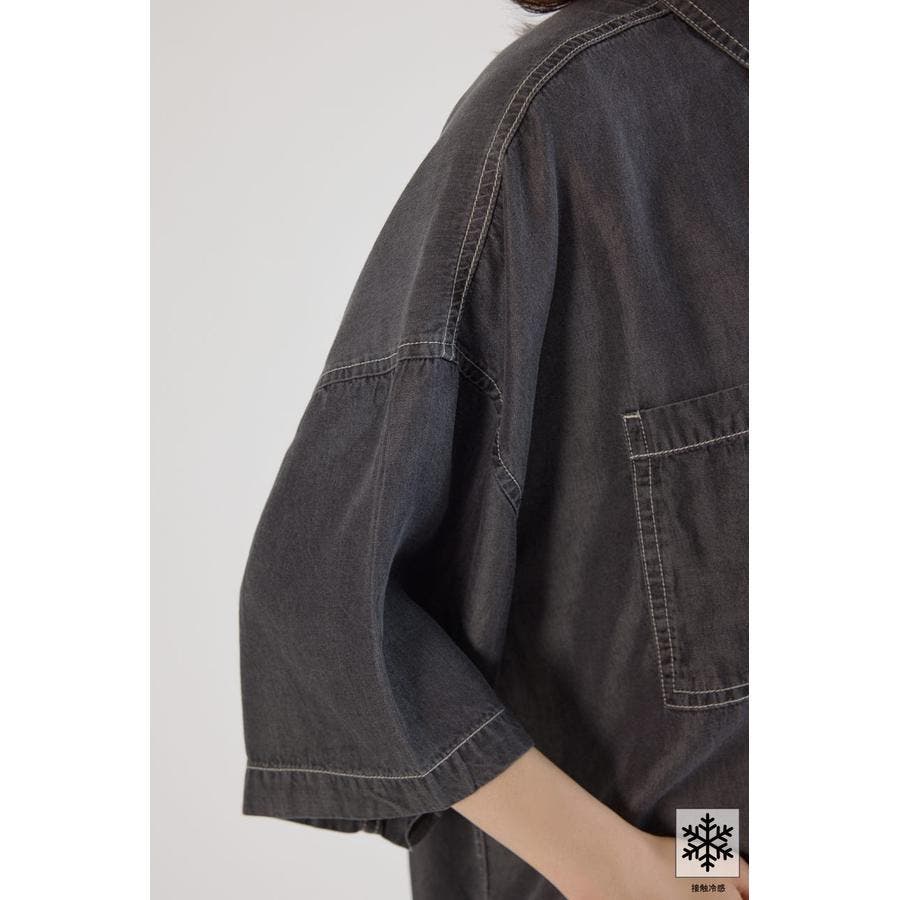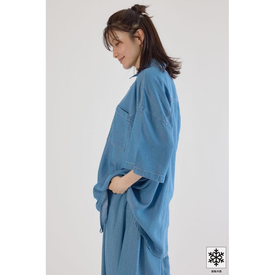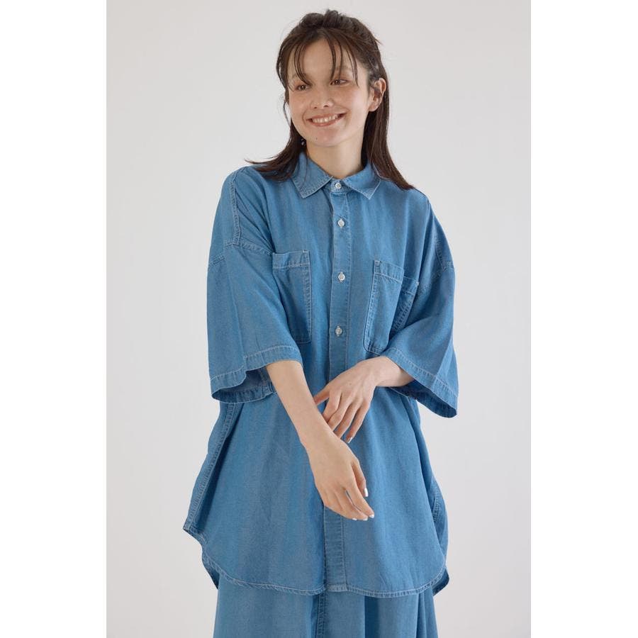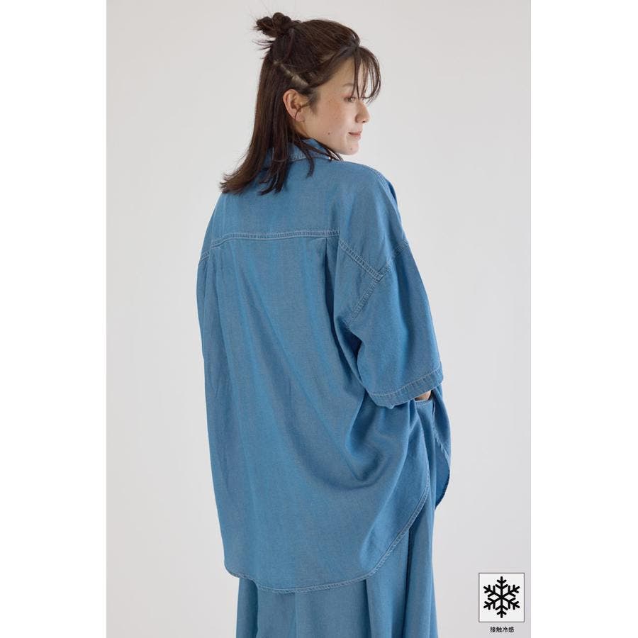 テンセルデニムで落ち感があり滑らかな風合いで着心地が良いハーフスリーブシャツ。