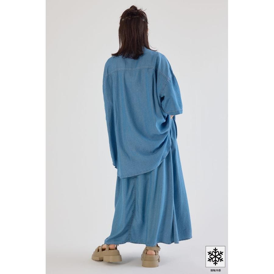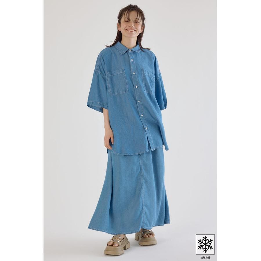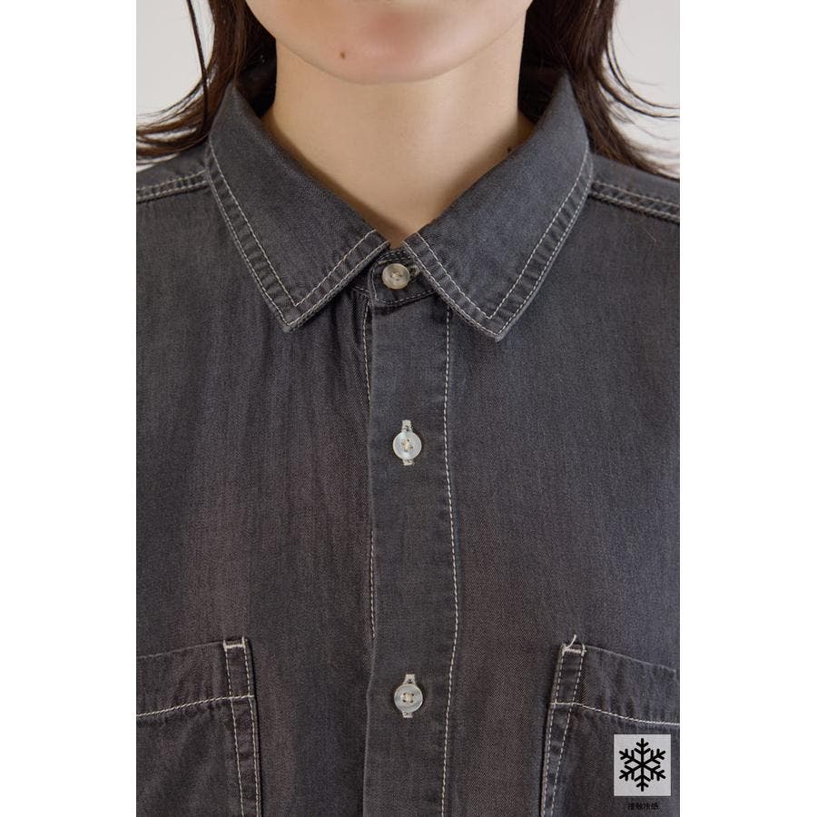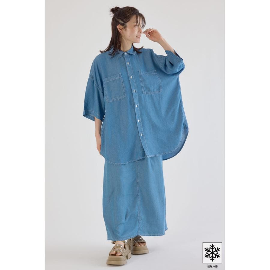 テンセルデニムで落ち感があり滑らかな風合いで着心地が良いハーフスリーブシャツ。