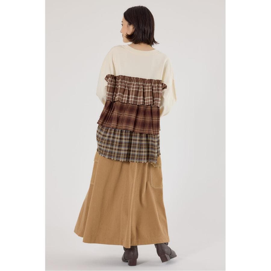 3種類のチェック生地を組み合わせたティアードデザイン。