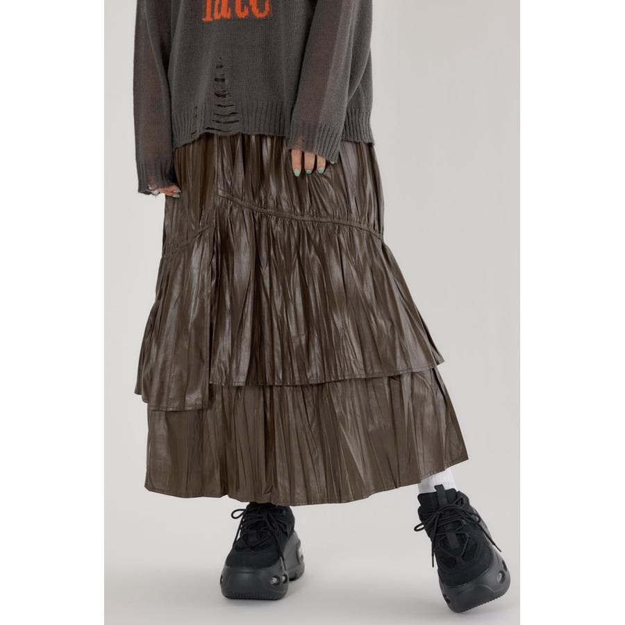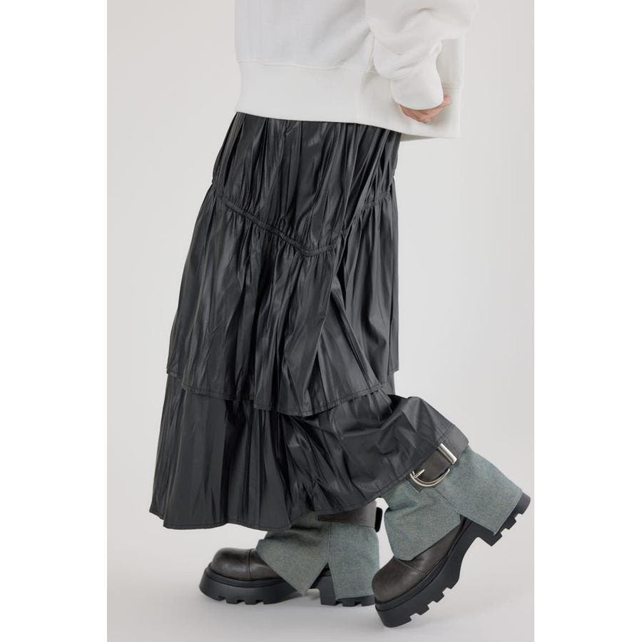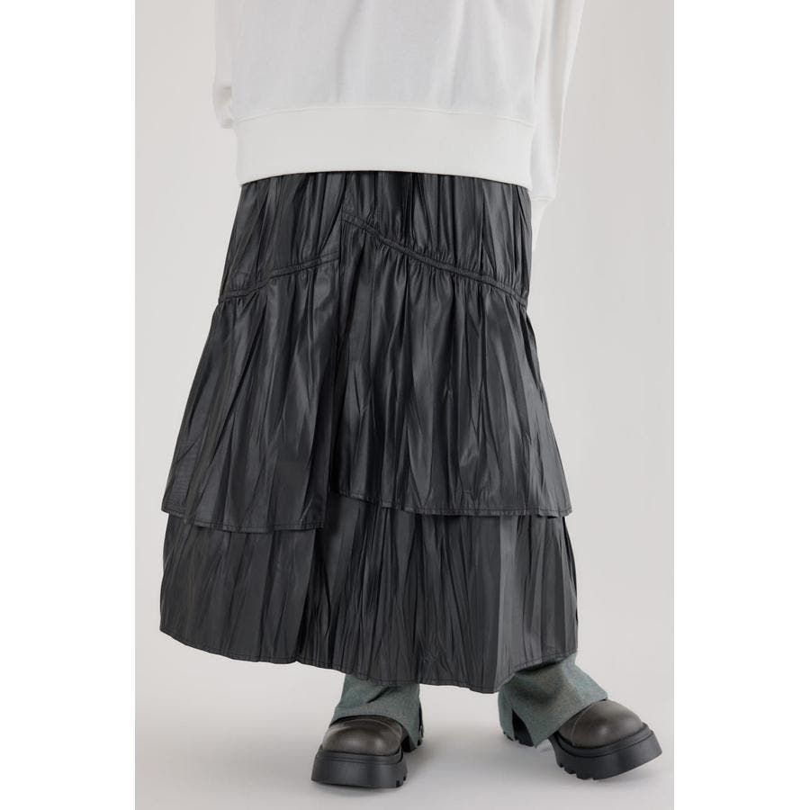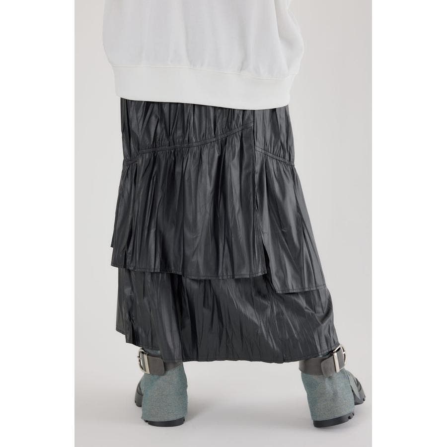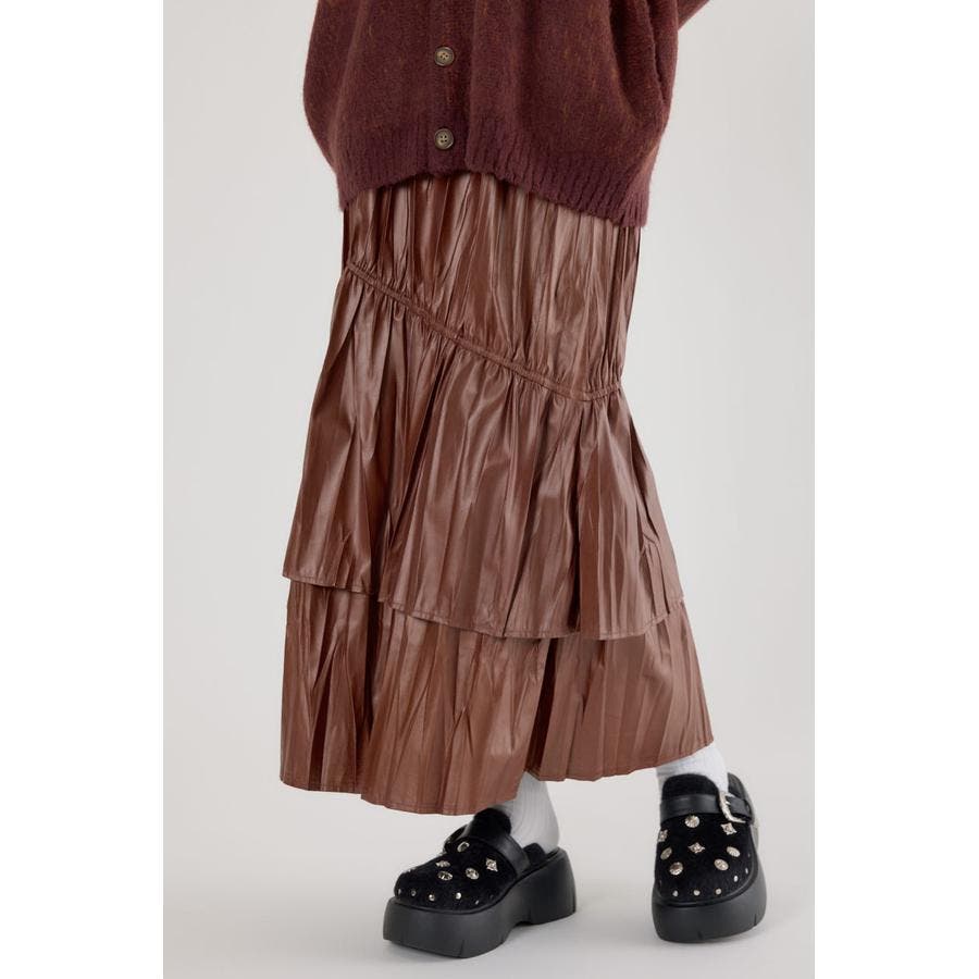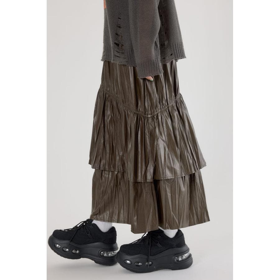レザーライクフリルティアードスカート