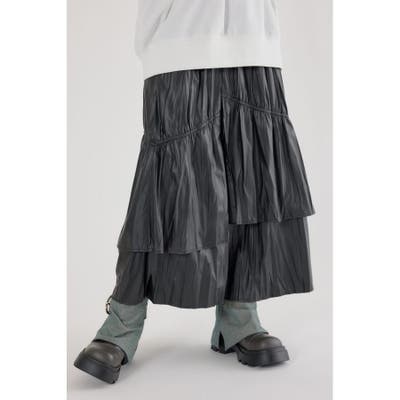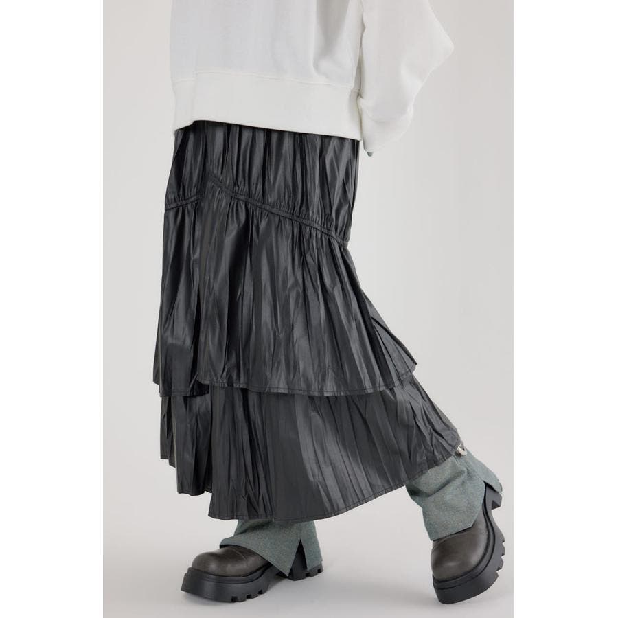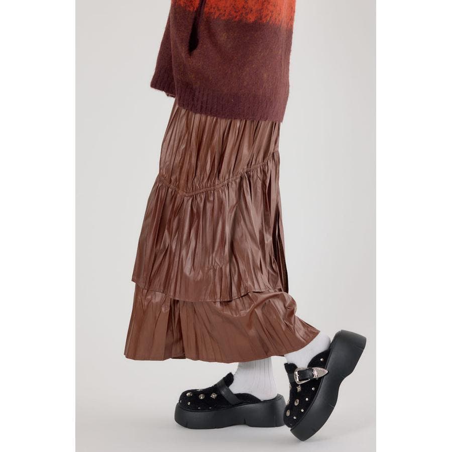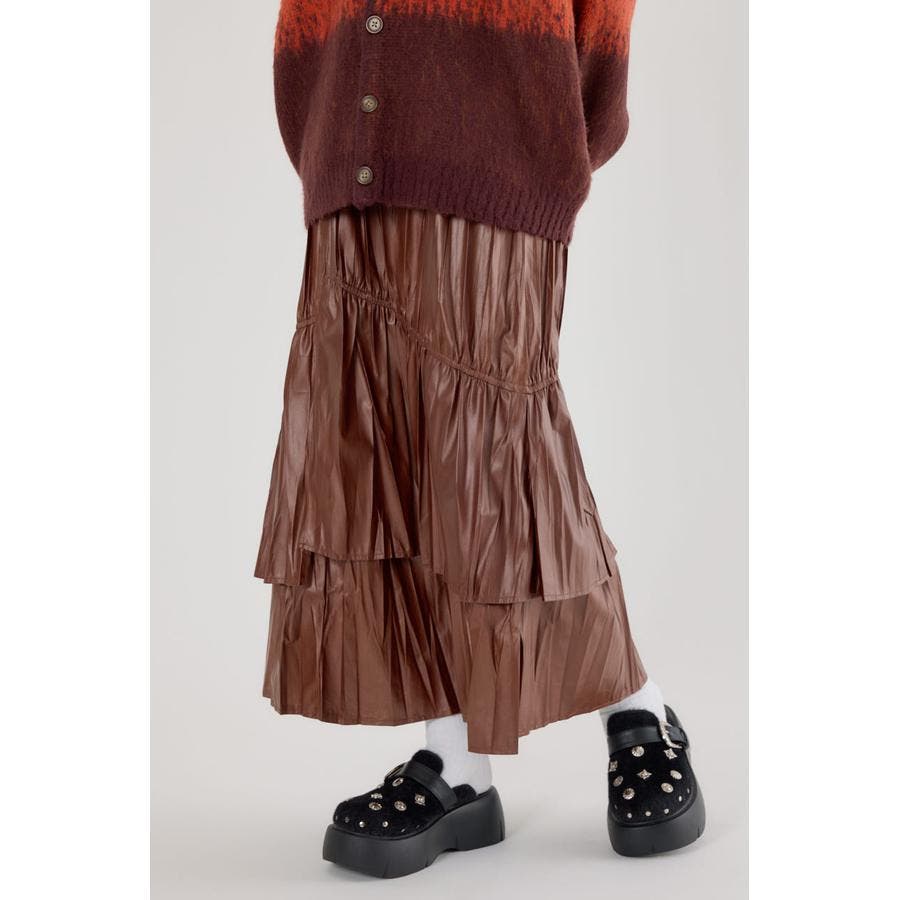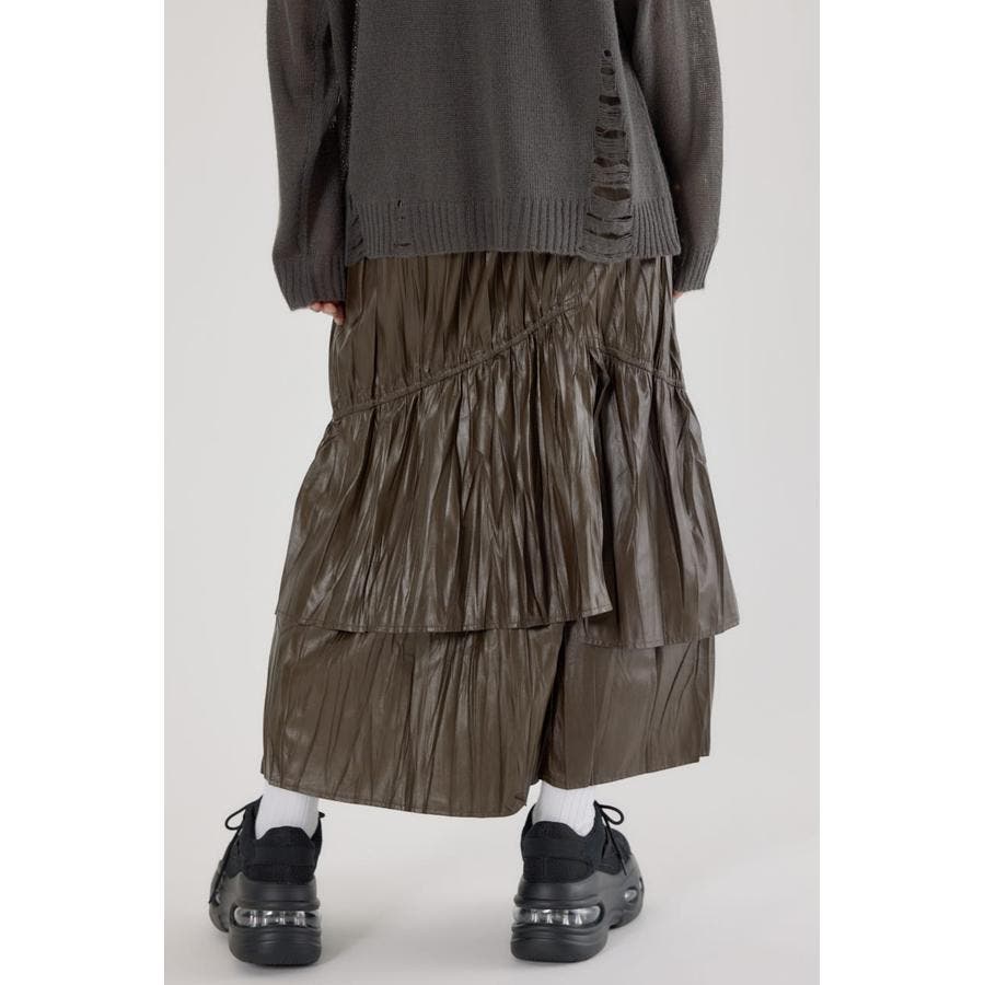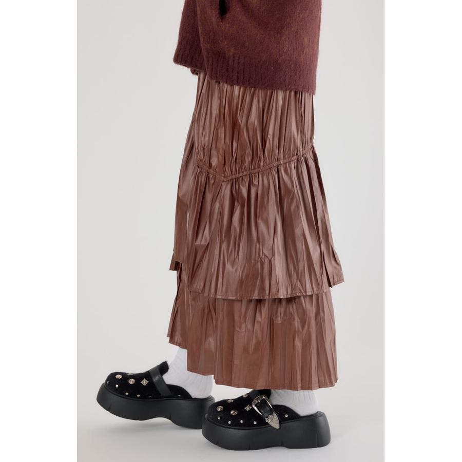 レザーライクフリルティアードスカート