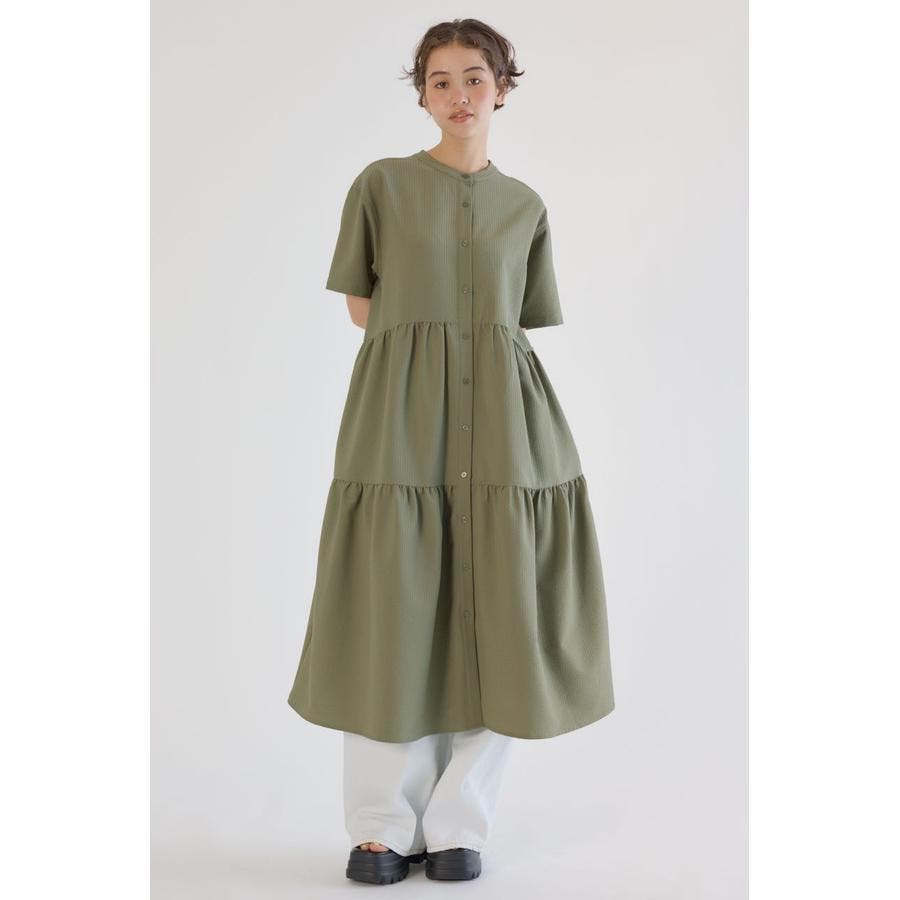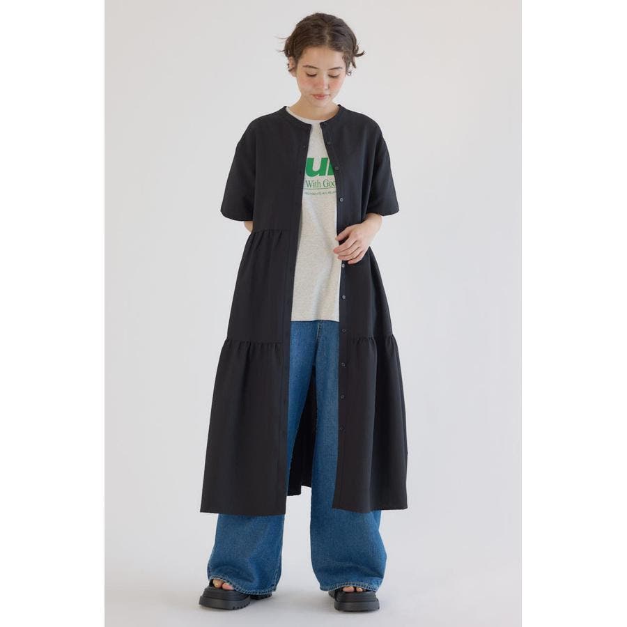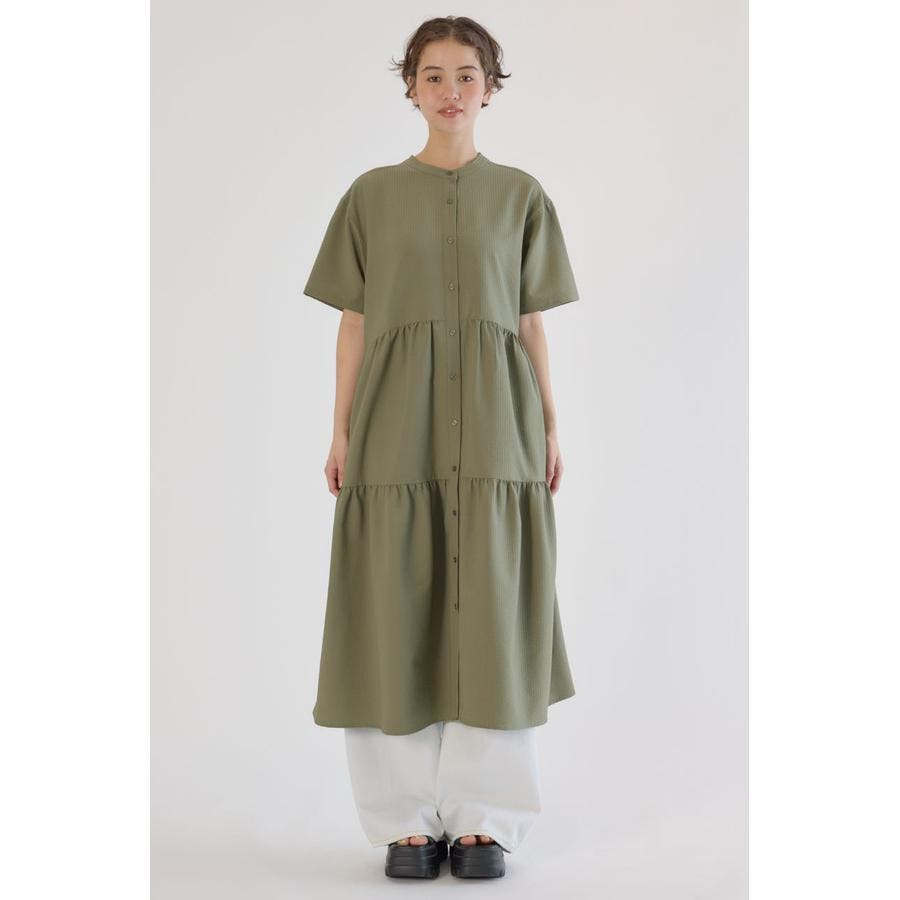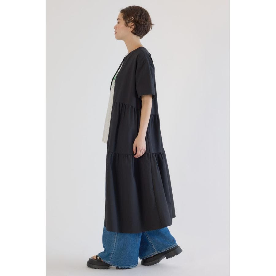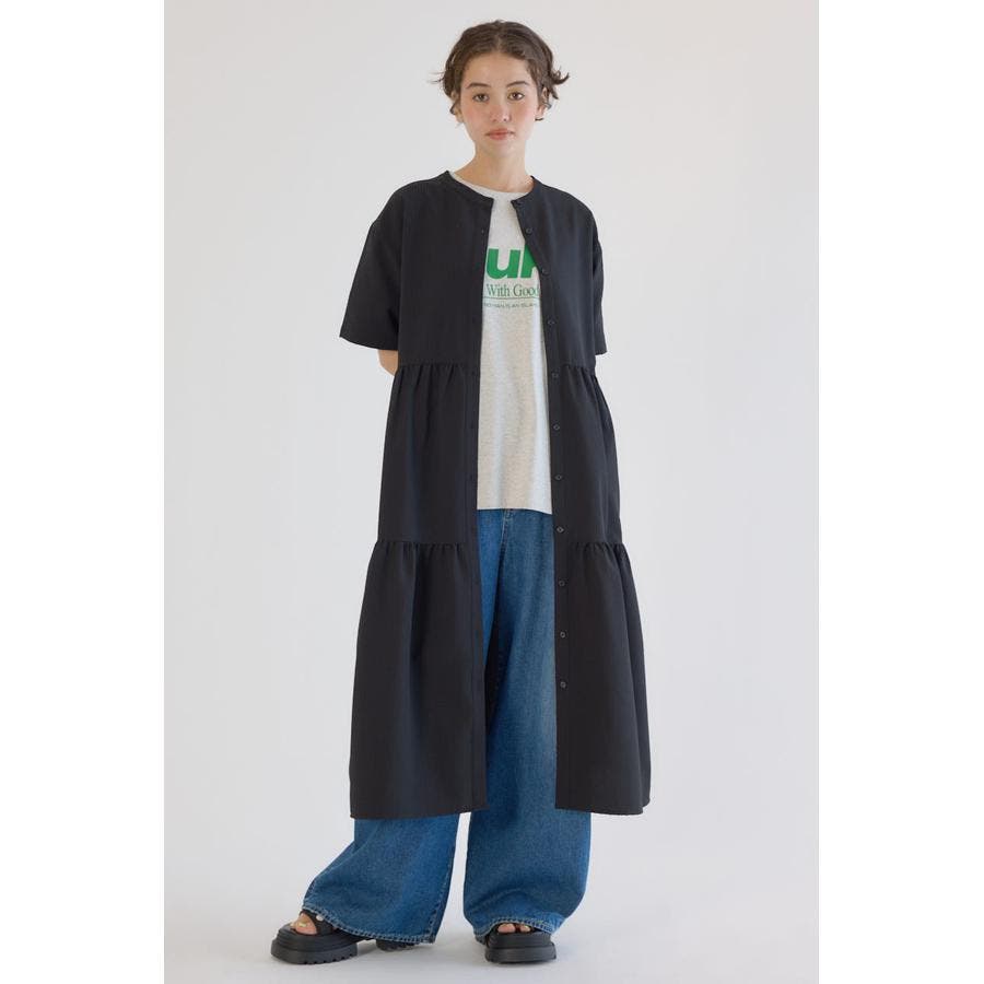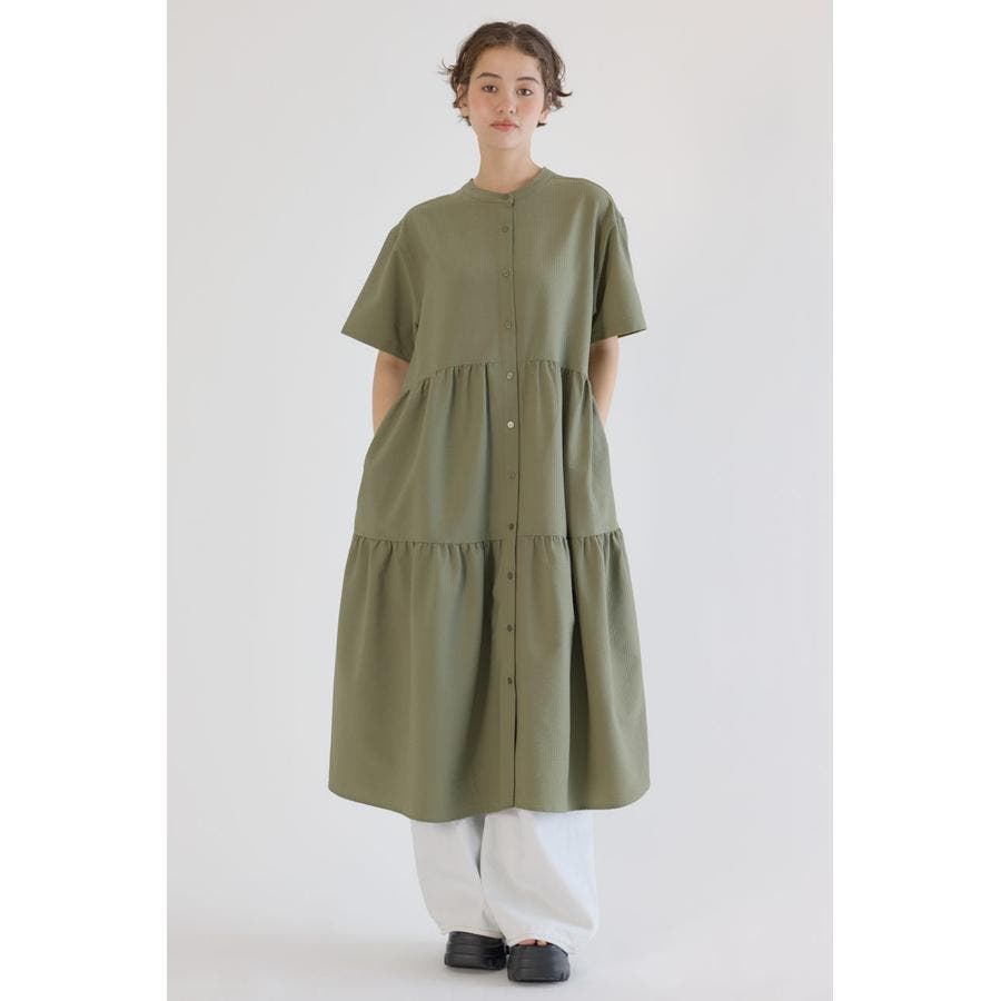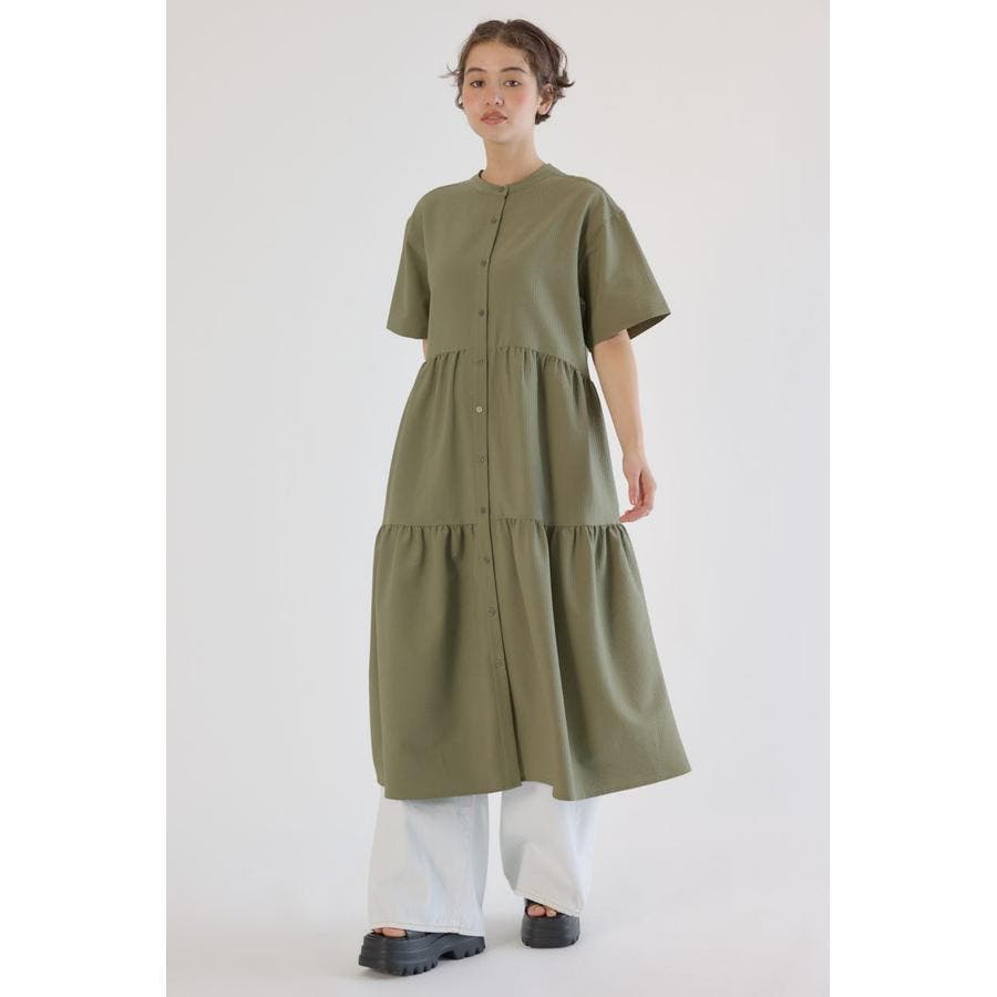 たっぷりのギャザーをあしらった、3段ティアードのシャツワンピース。