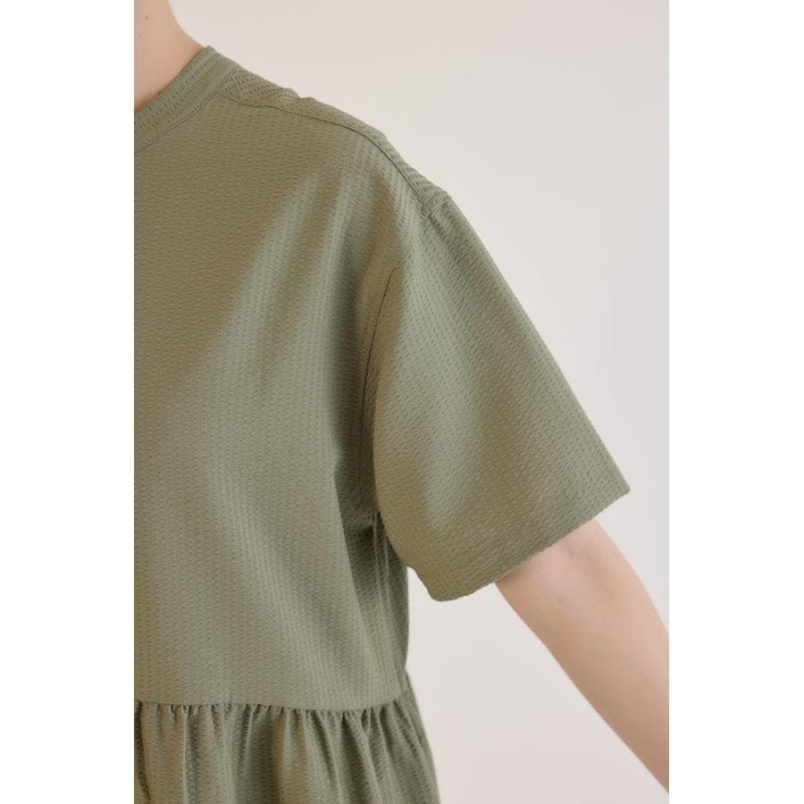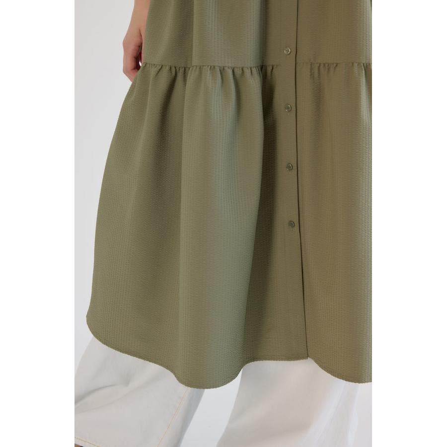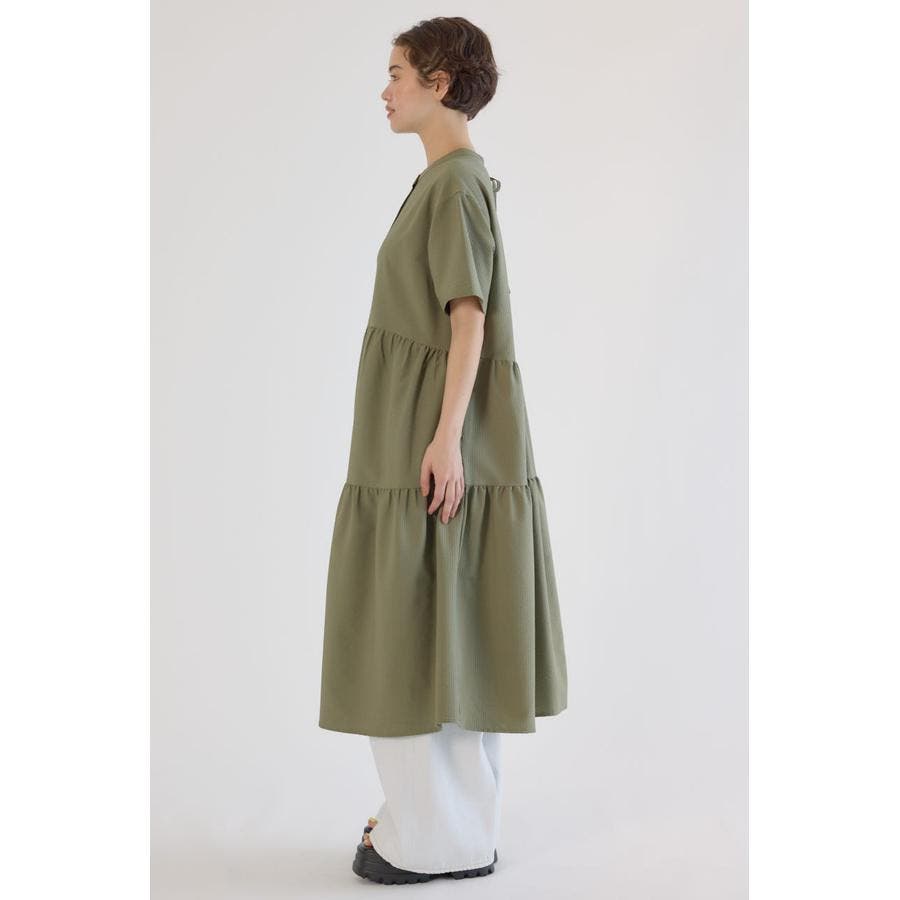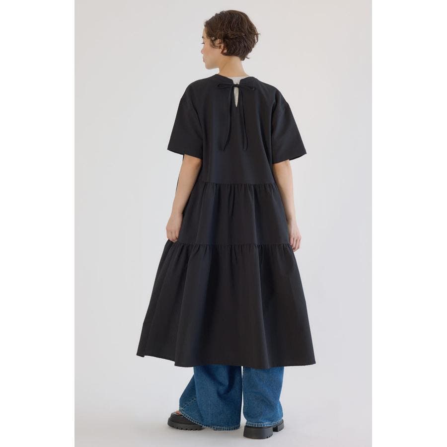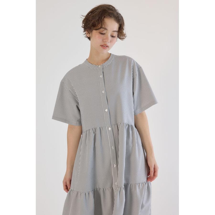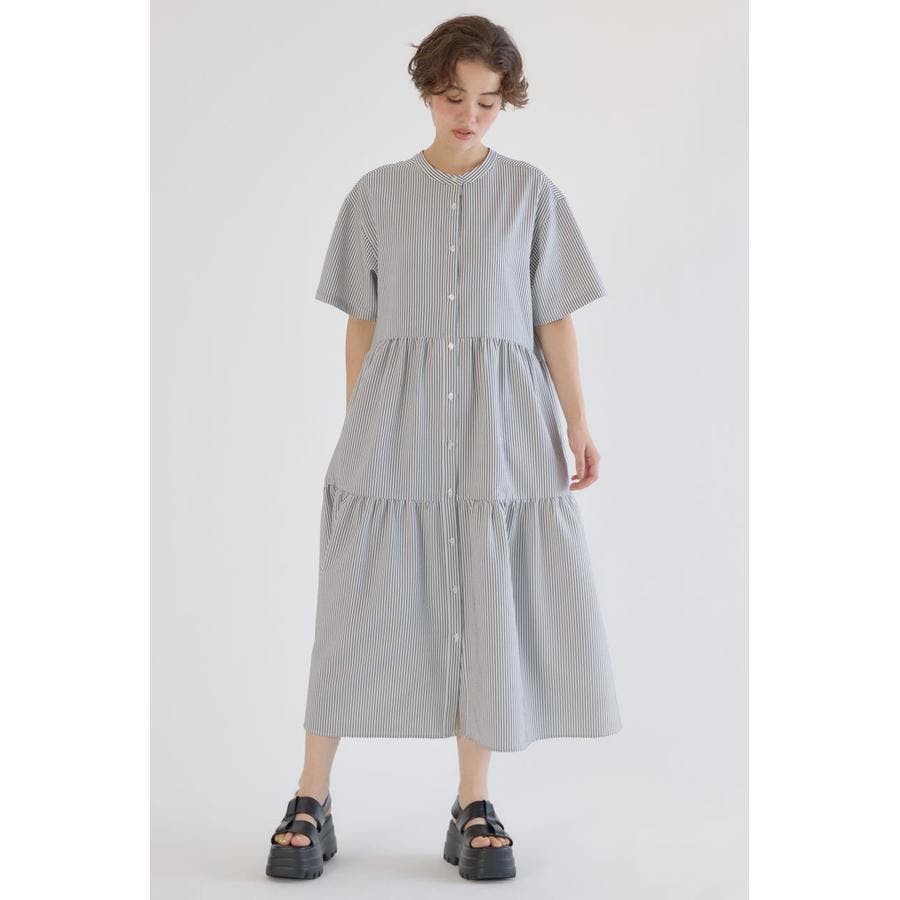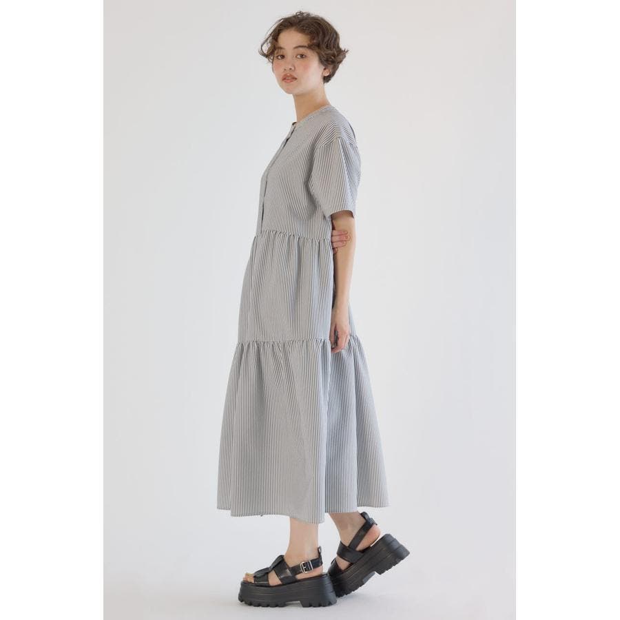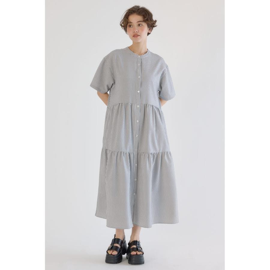 たっぷりのギャザーをあしらった、3段ティアードのシャツワンピース。