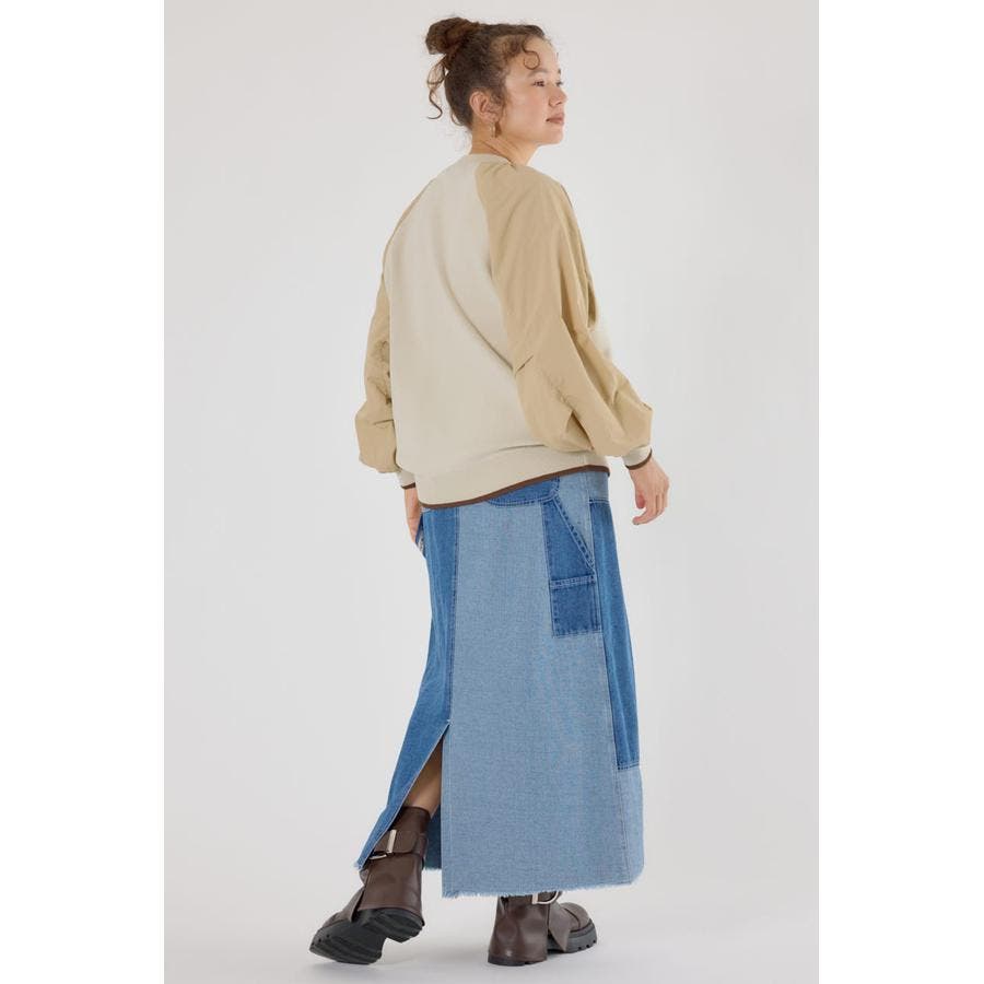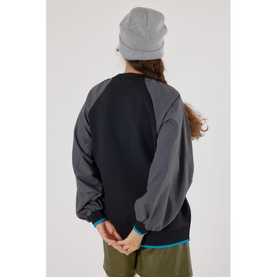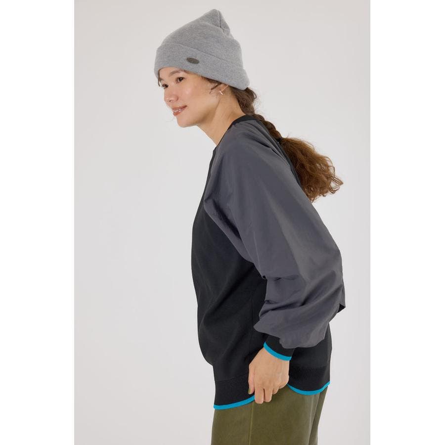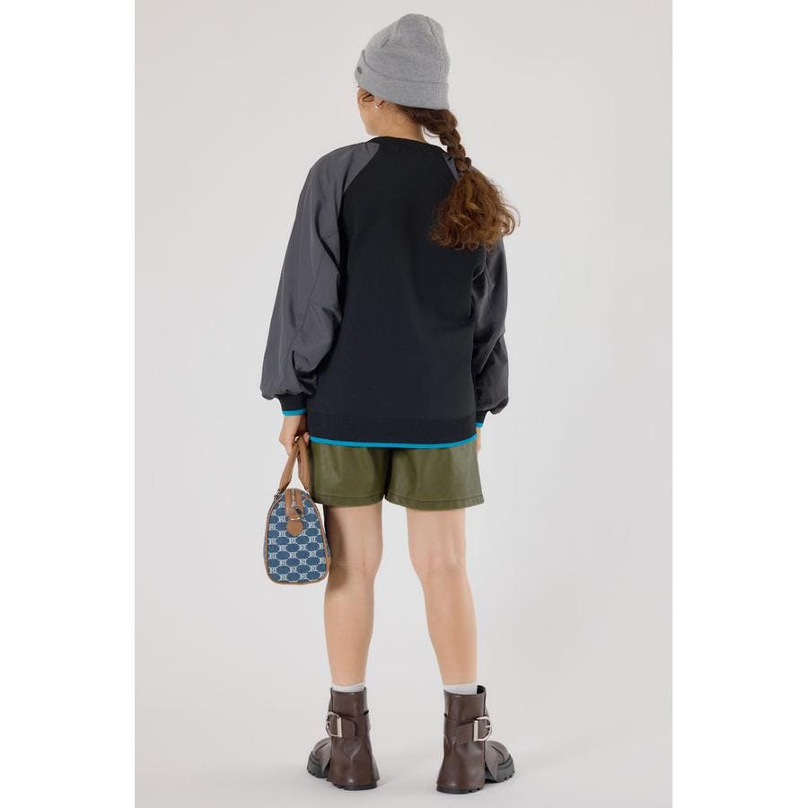 布帛ドッキングニットで、ミリタリーデザインを意識したニットトップス。