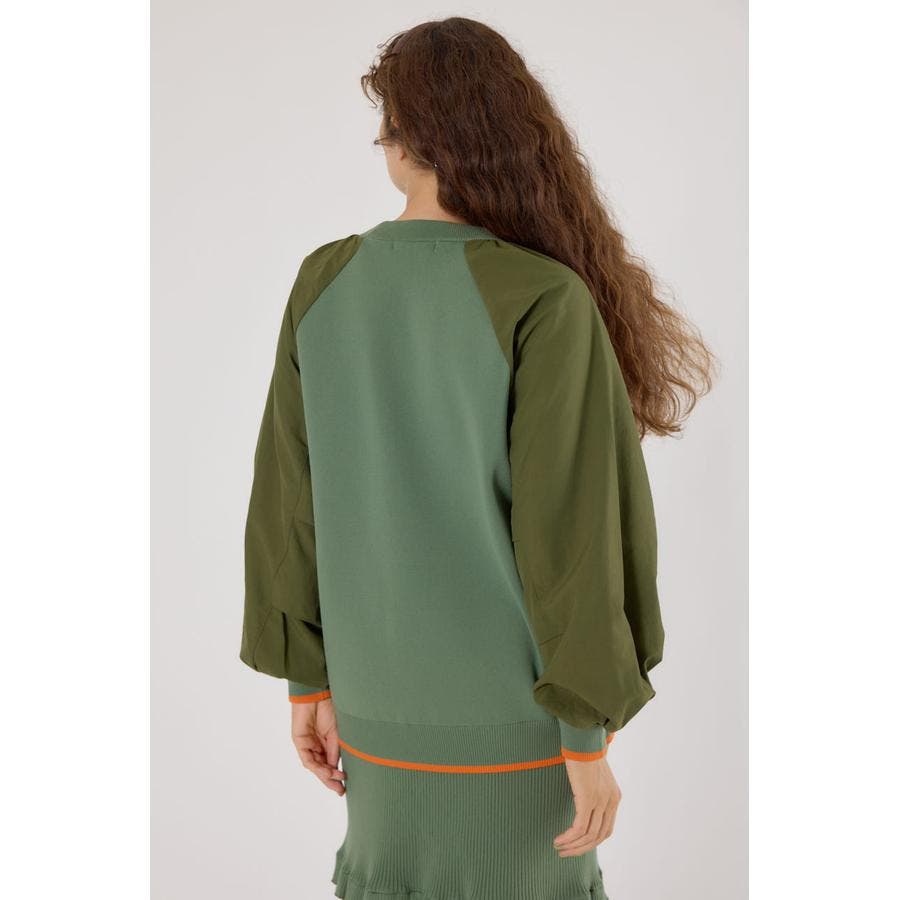 スリーブの布帛部分はタックを入れてボリュームスリーブに。