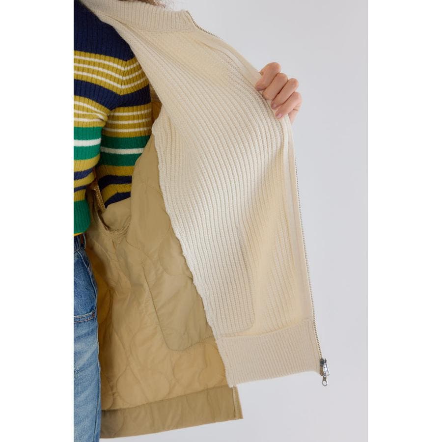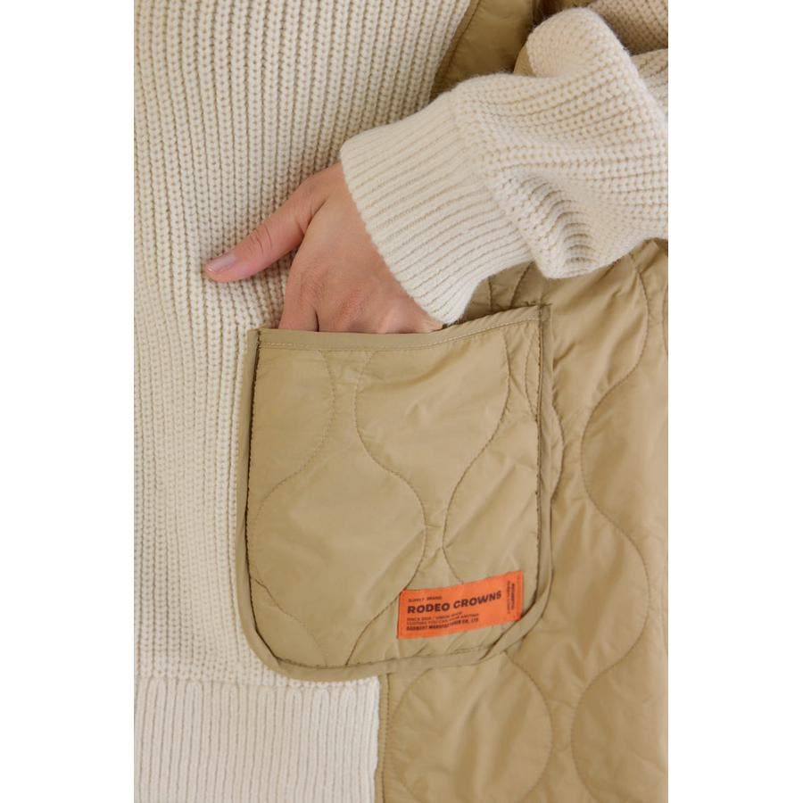 ニット素材とキルト素材のドッキングで、まるでリメイクしたかのような遊び心あるデザインなブルゾン。