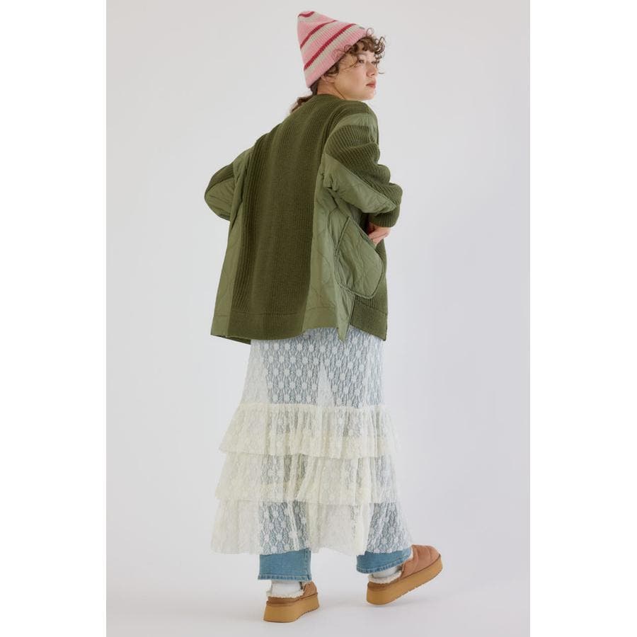 | 素材 | [ニット部分]アクリル100[キルティング部分](表側)ナイロン100(中わた)ポリエステル100(裏側)ナイロン100 |