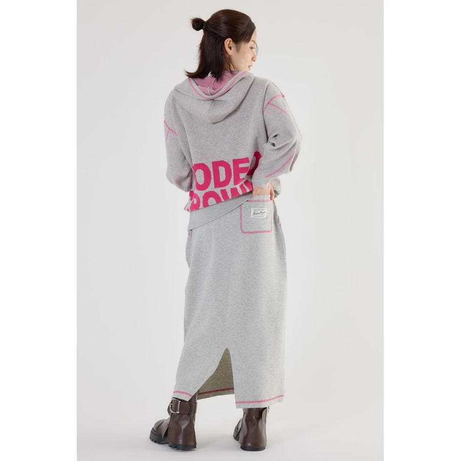同素材で展開しているトップス(420IAR70-0151スウェットライクVネックトップス)、パーカー(420IAR70-0171スウェットライクジャガードロゴフーディ□)とのセットアップでの着用がおすすめです。