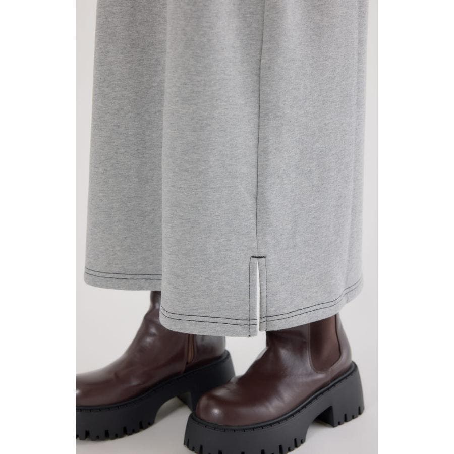 カジュアルになりすぎないようサイドに入れたスリットや落ち感のあるサイズで、女性らしさを演出しています。