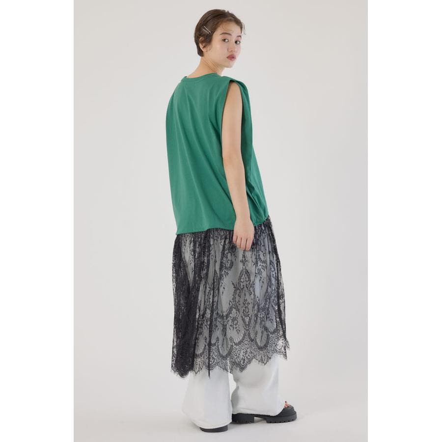 タンクトップにレースがドッキングされた、一枚でレイヤード風スタイルが叶うワンピース。