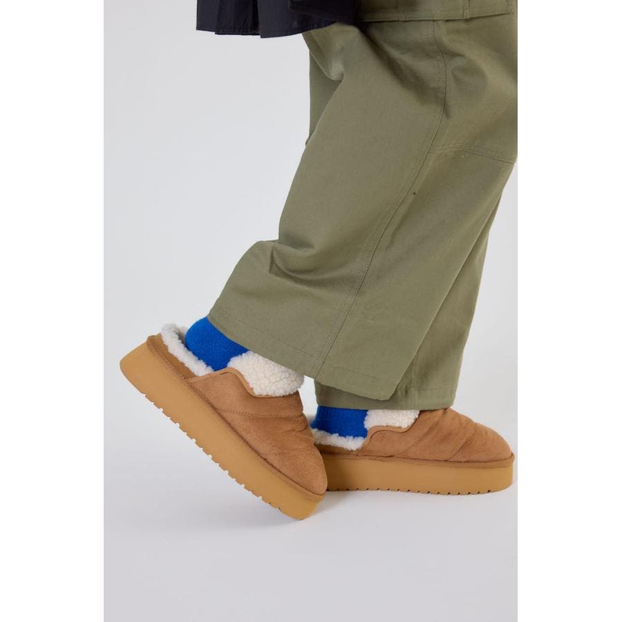 シーズンムードを盛り上げてくれるモコモコしたボア素材が可愛いスリッポン型シューズ。