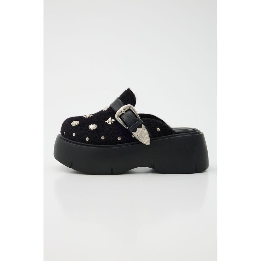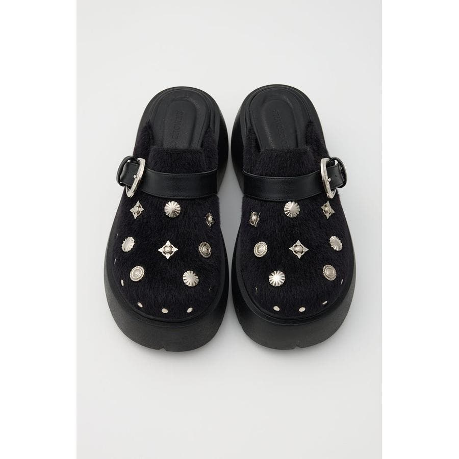 様々なコンチョが散りばめられた個性的なサボシューズです。