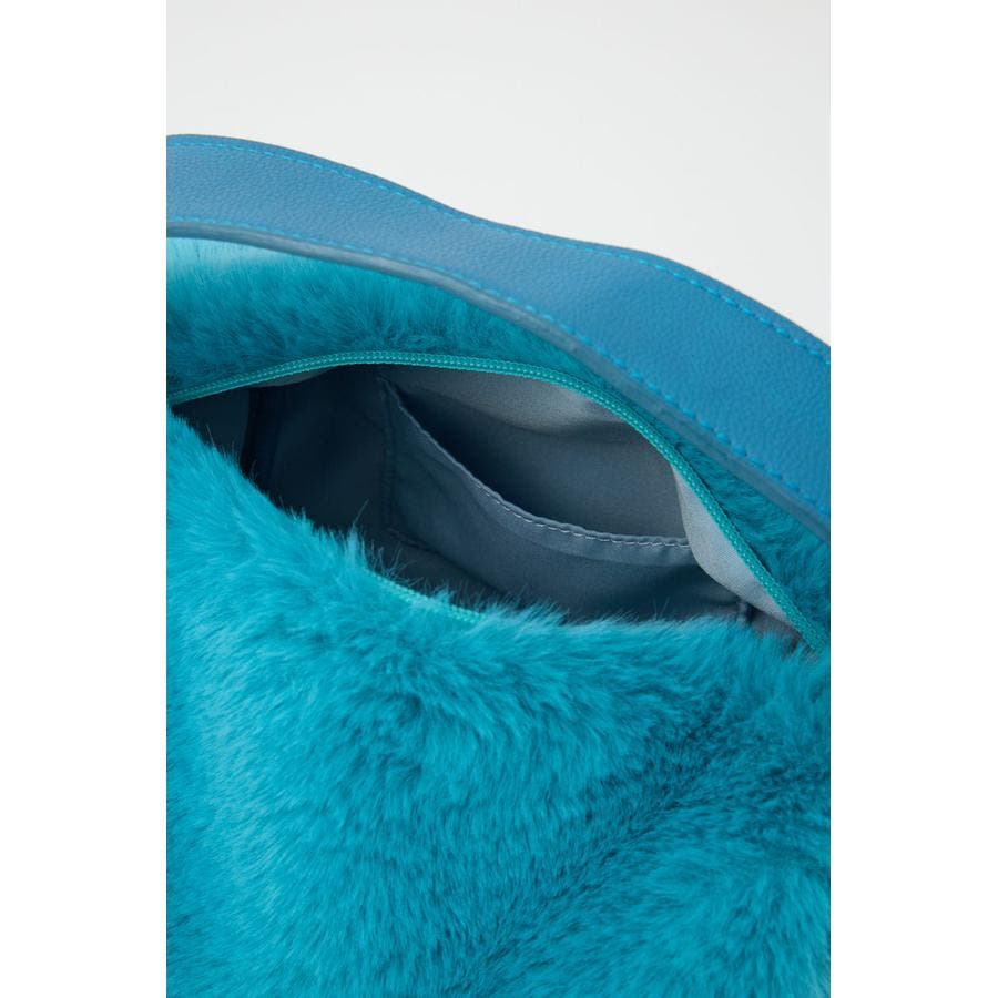 ころんとした形が特徴なフェイクファーショルダーバッグ。