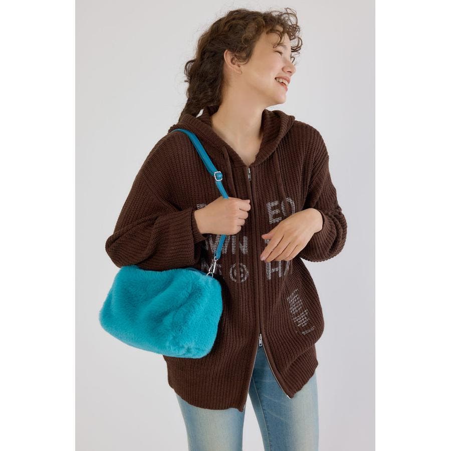 必要最低限の荷物は収納できる、冬コーディネートには欠かせないファーショルダーバッグ。