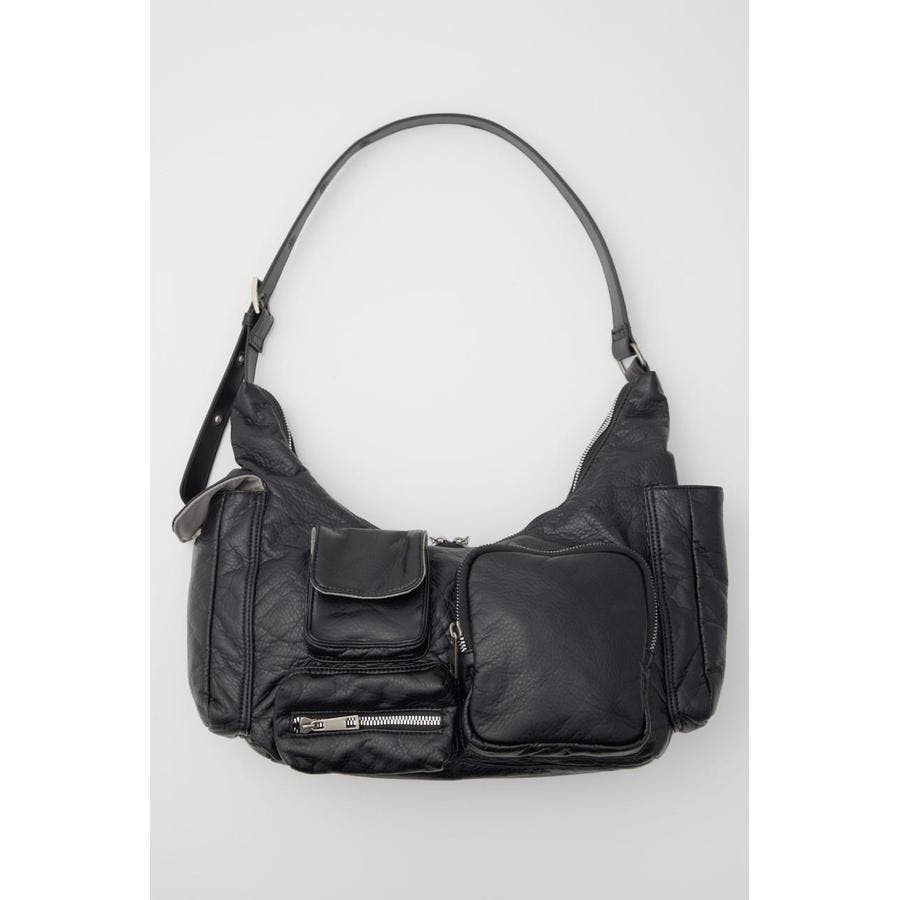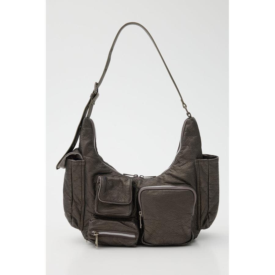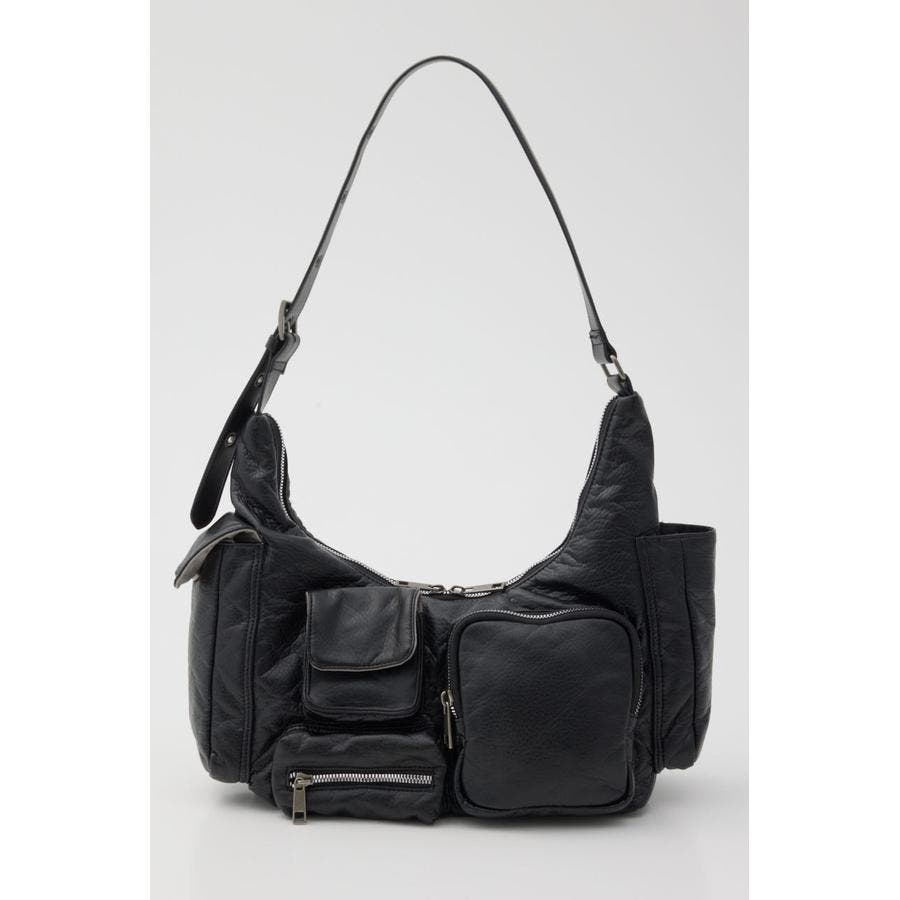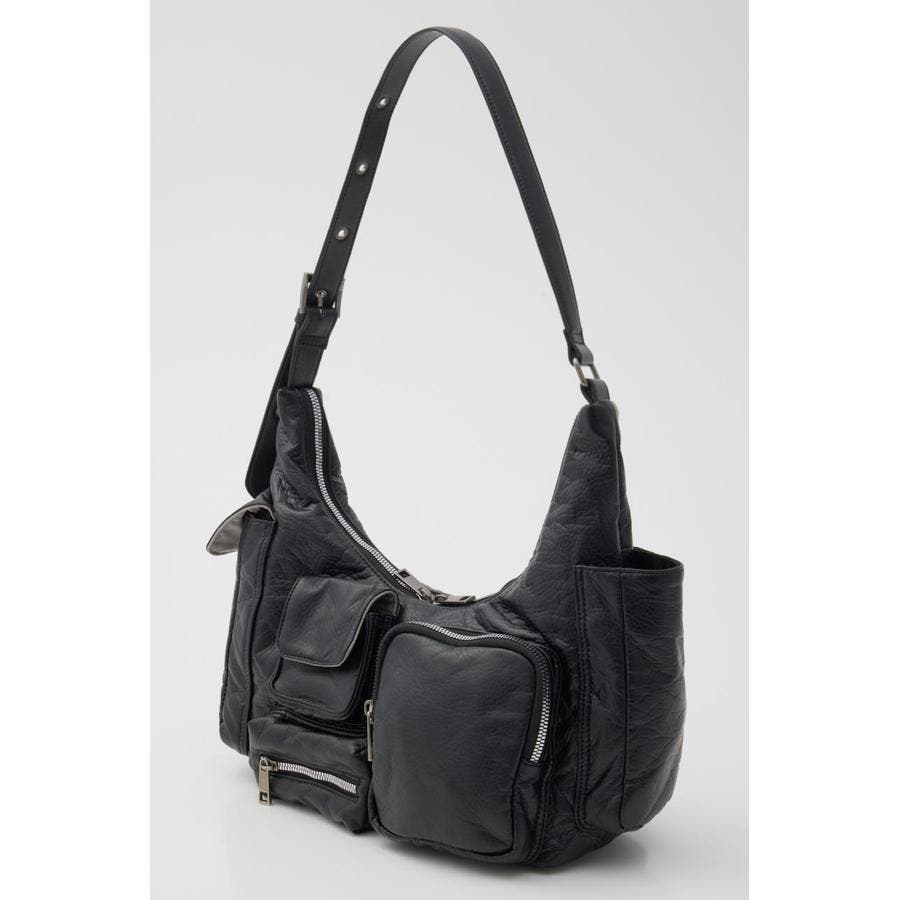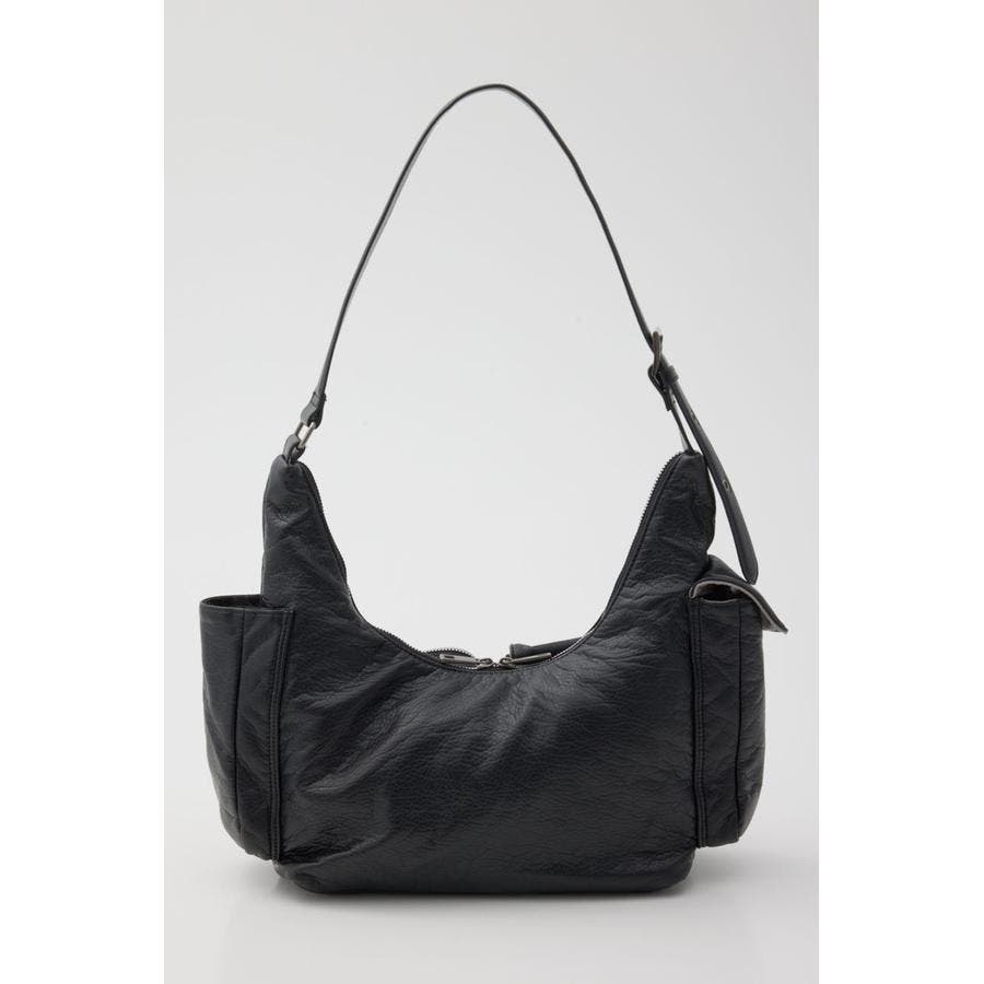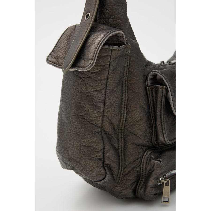 高見え効果抜群のポケット付きフェイクレザーバッグ。