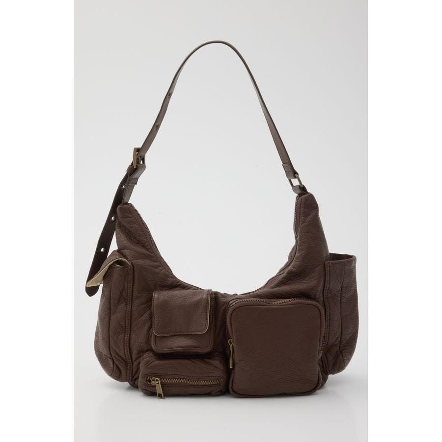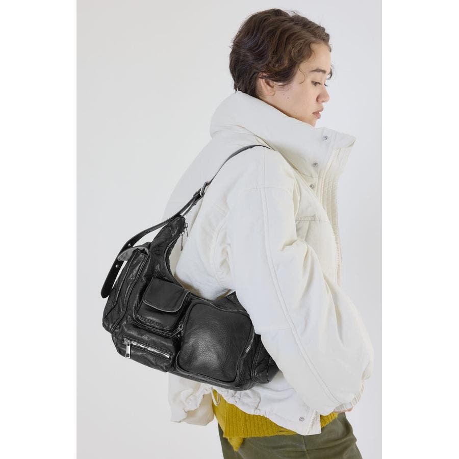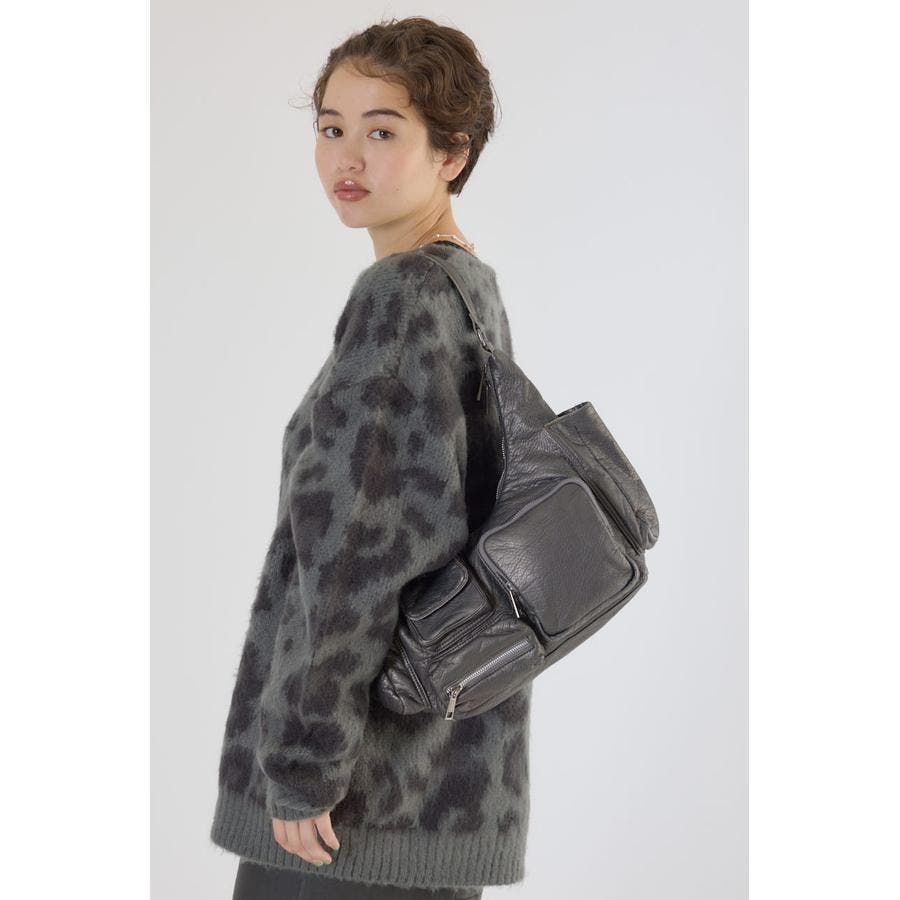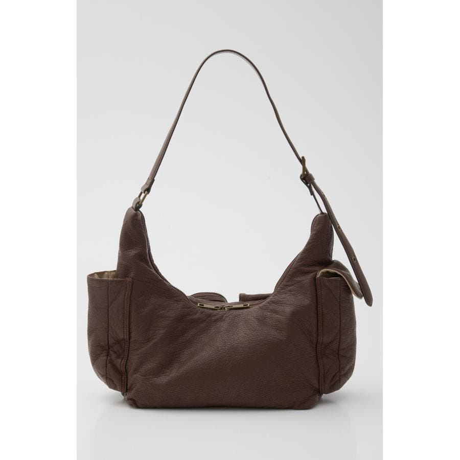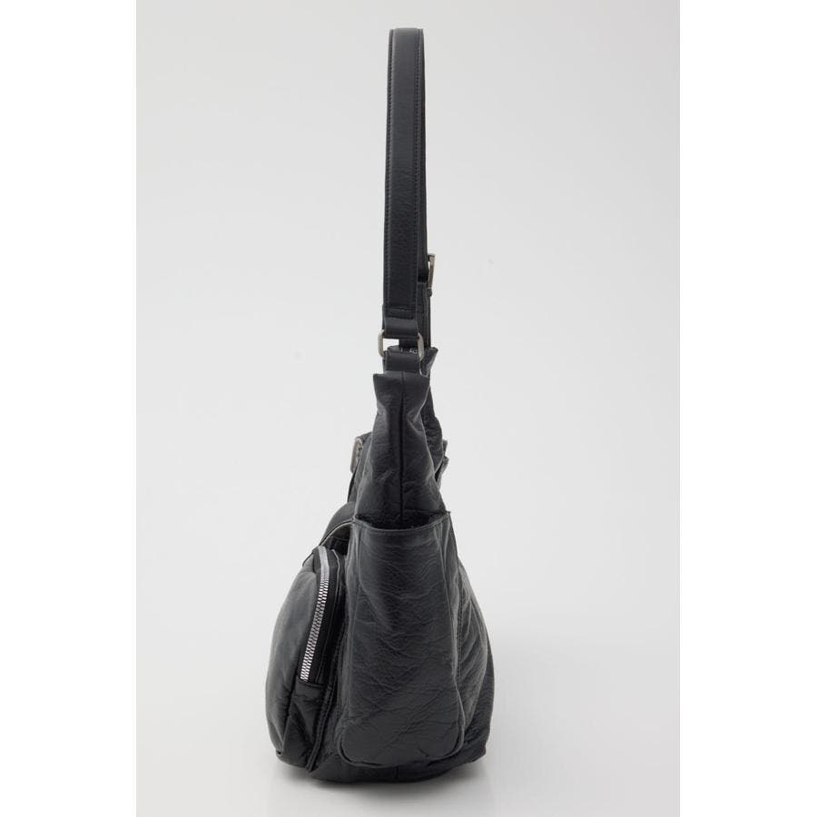 高見え効果抜群のポケット付きフェイクレザーバッグ。