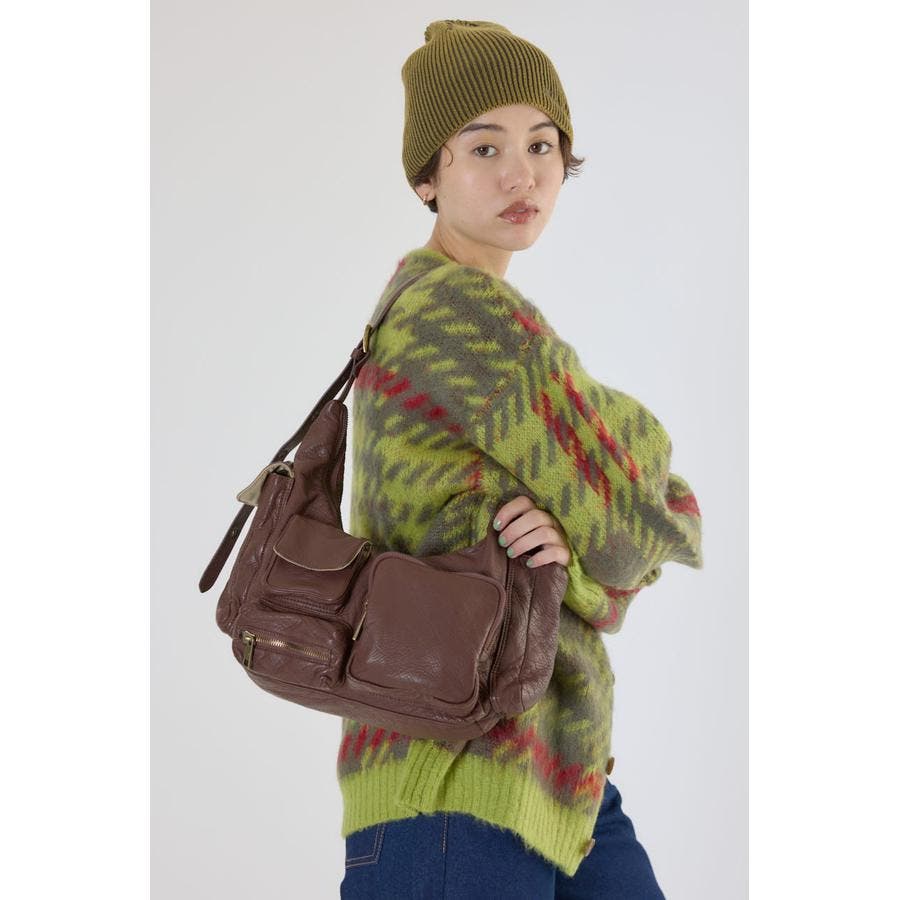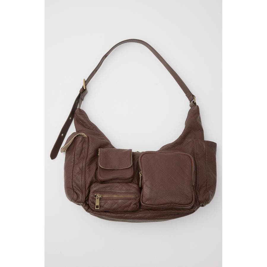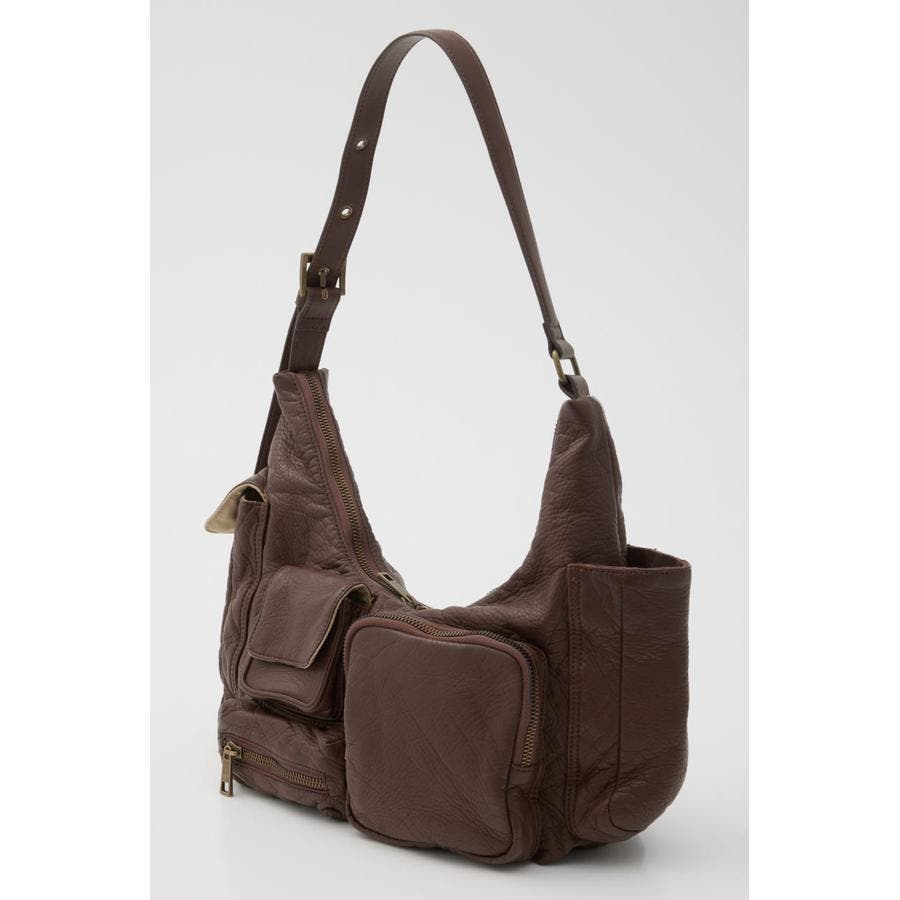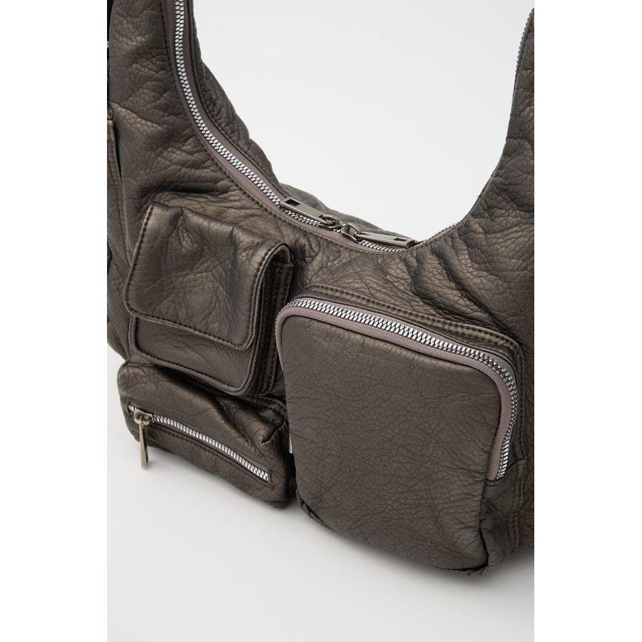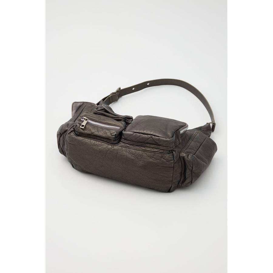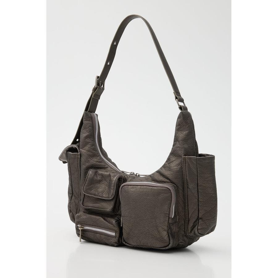 高見え効果抜群のポケット付きフェイクレザーバッグ。