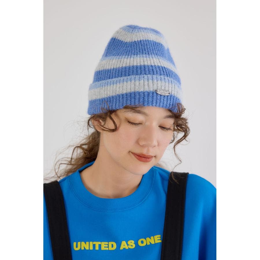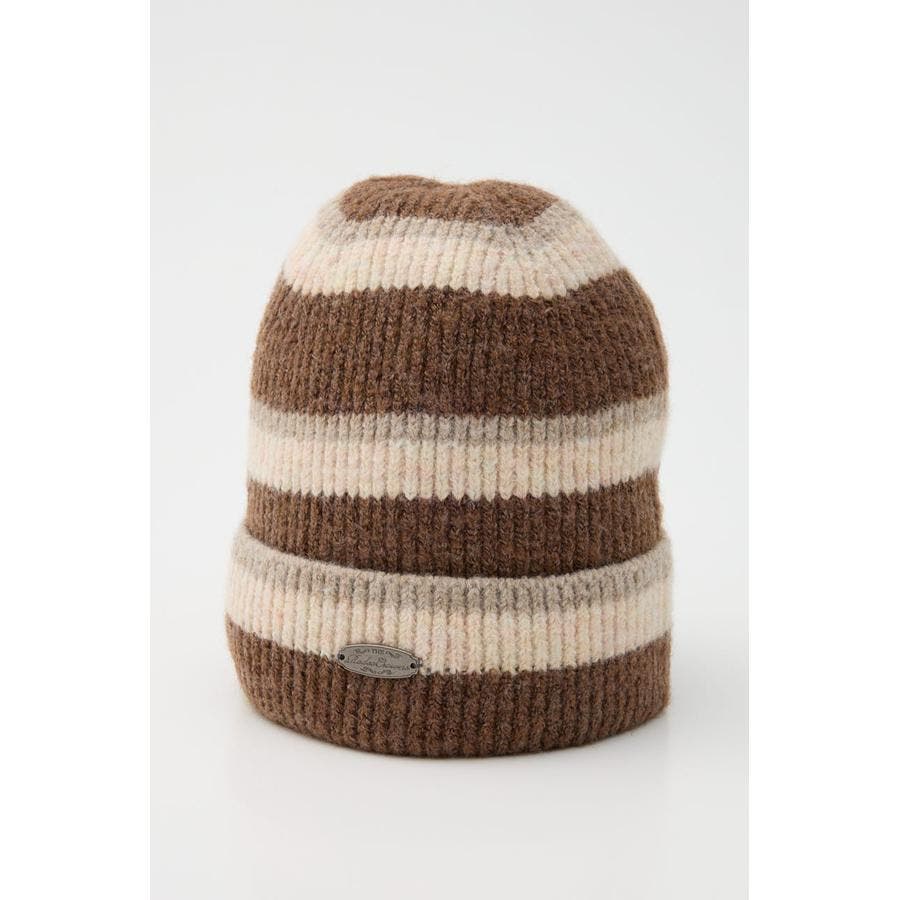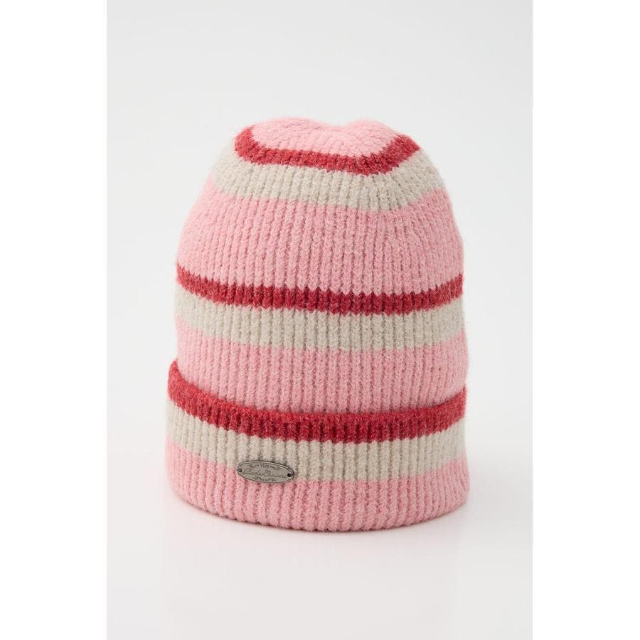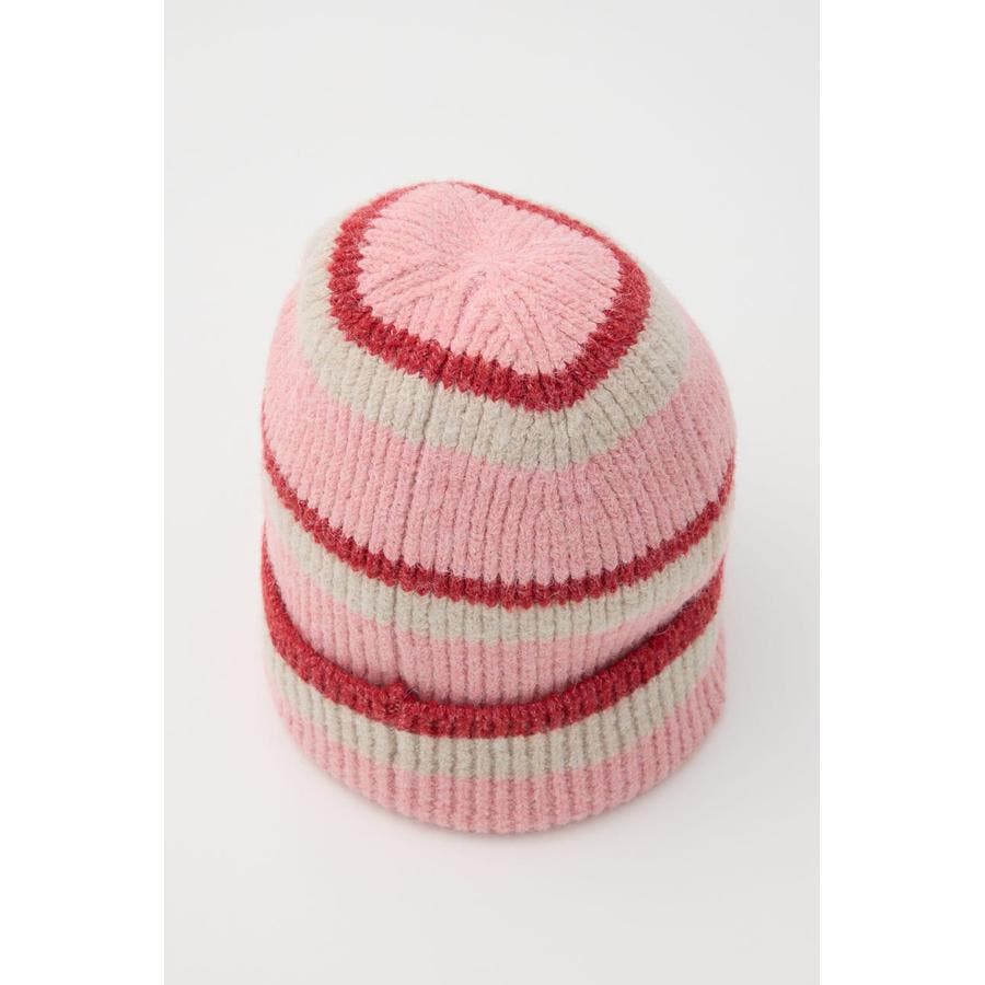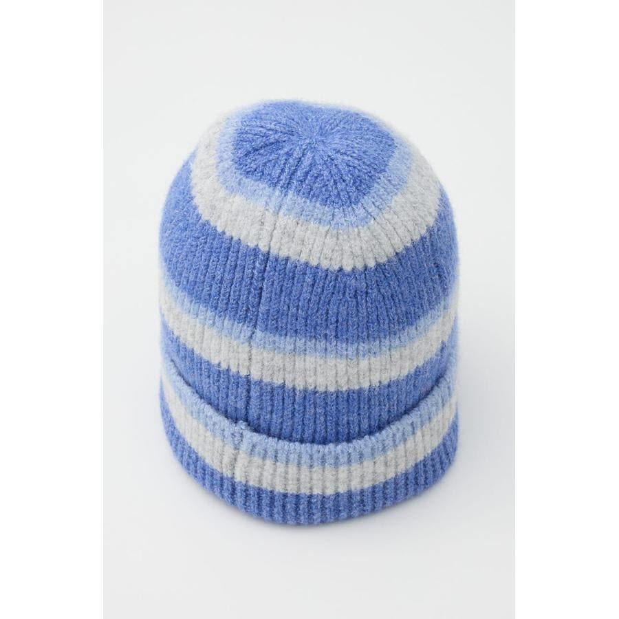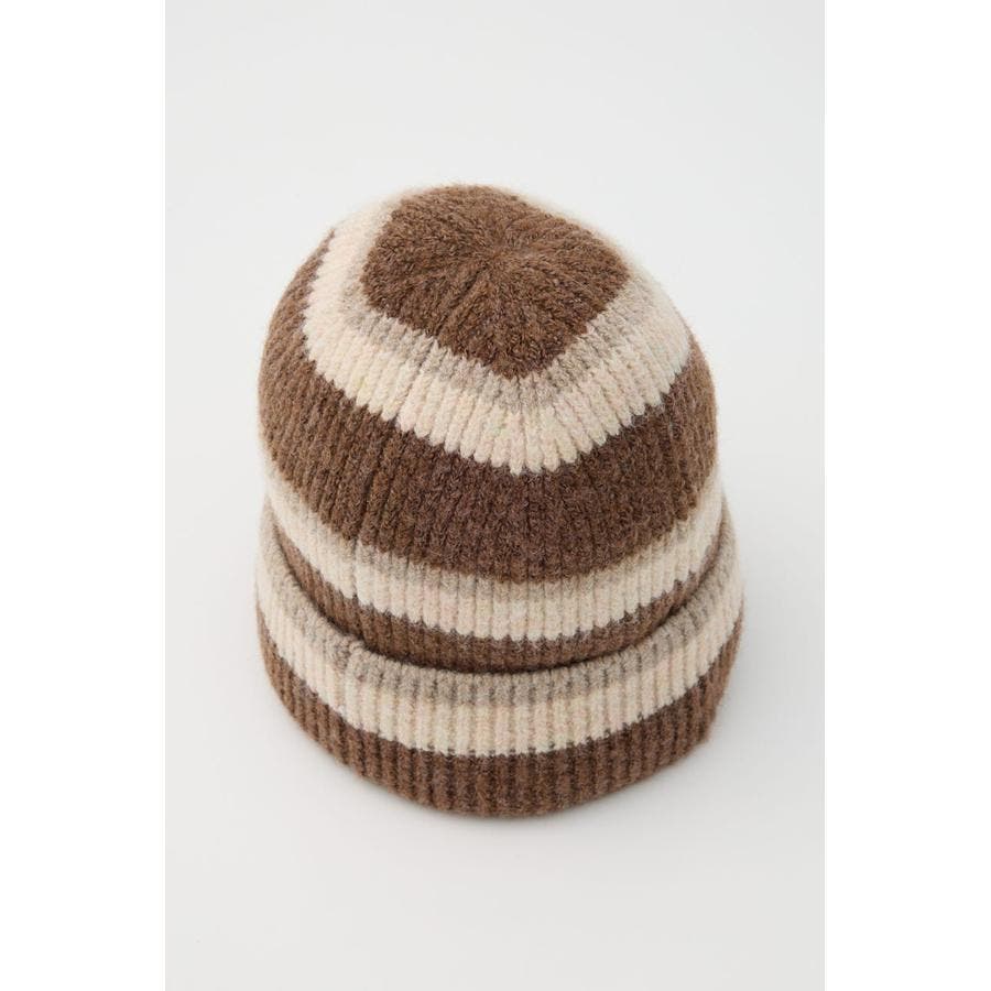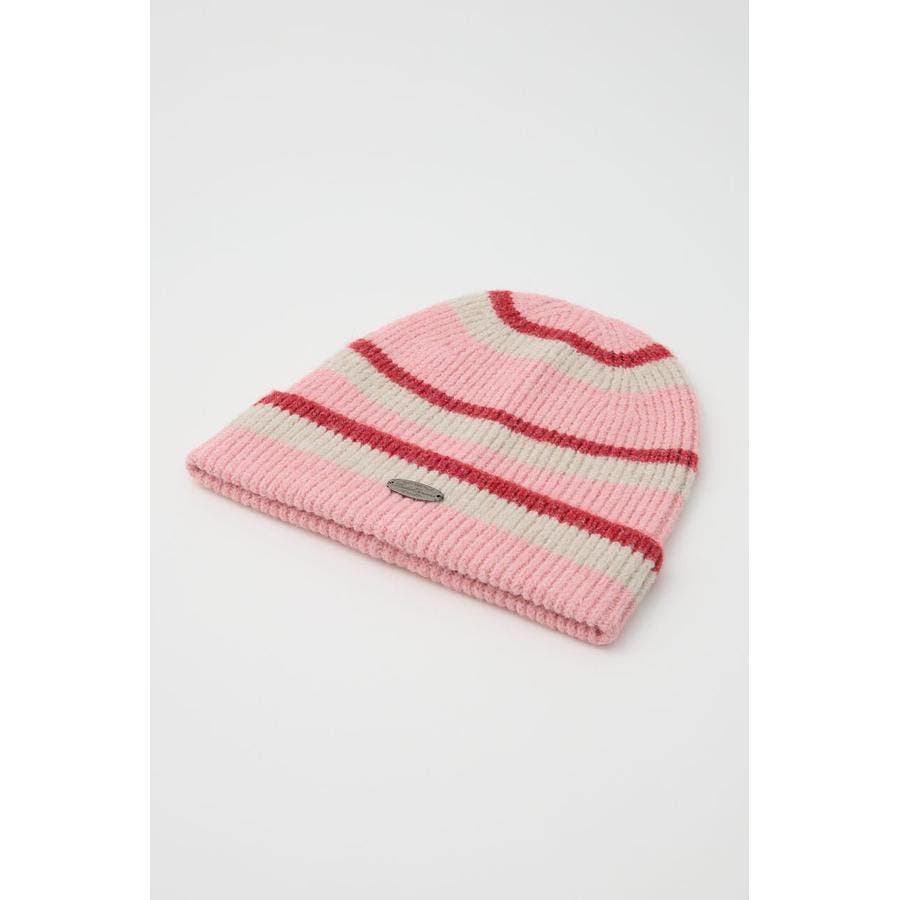 ふわふわと柔らかく、カラフルなボーダー使いが可愛いニットビーニーです。