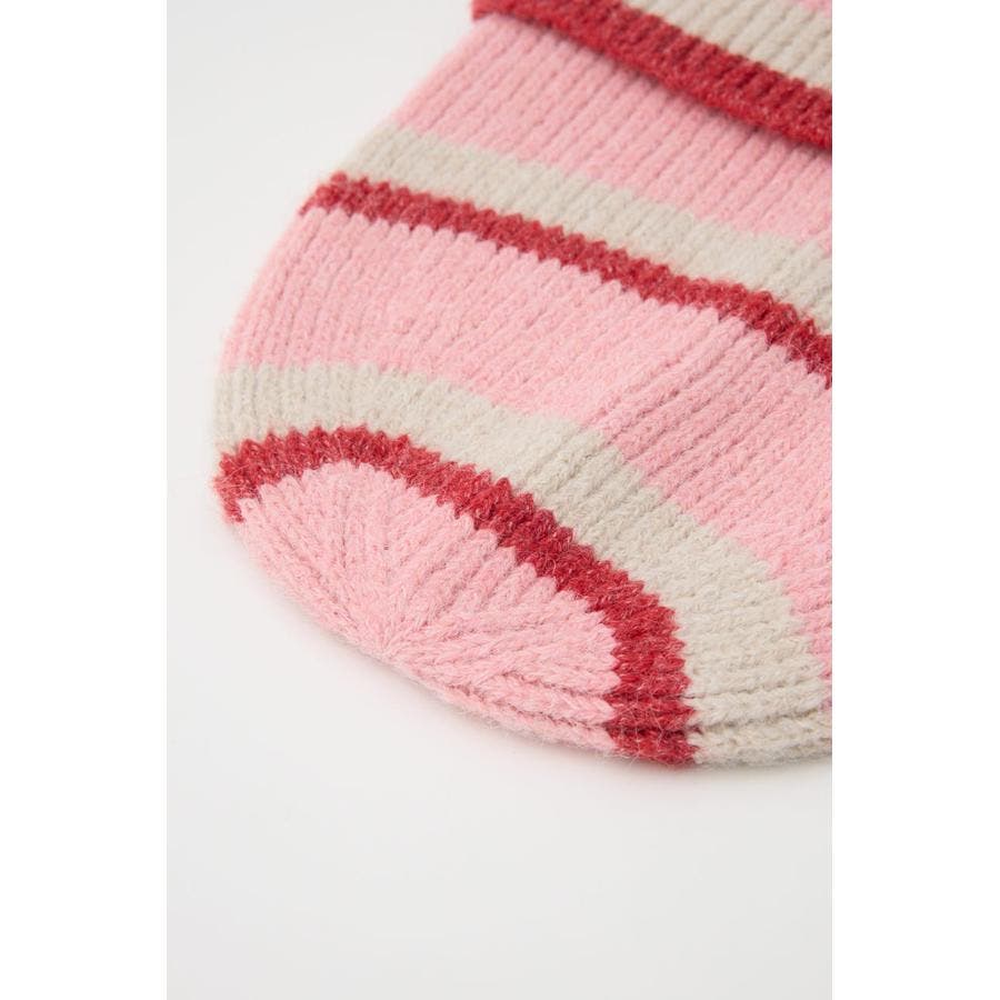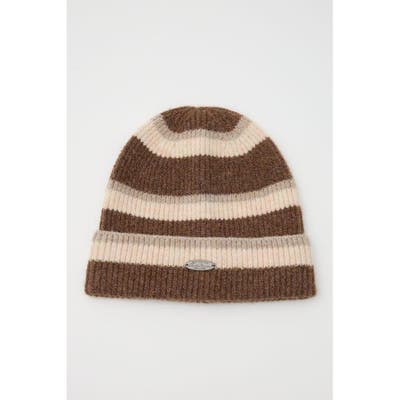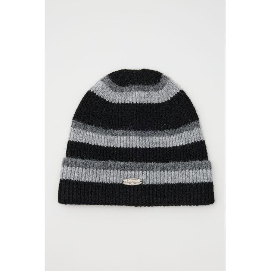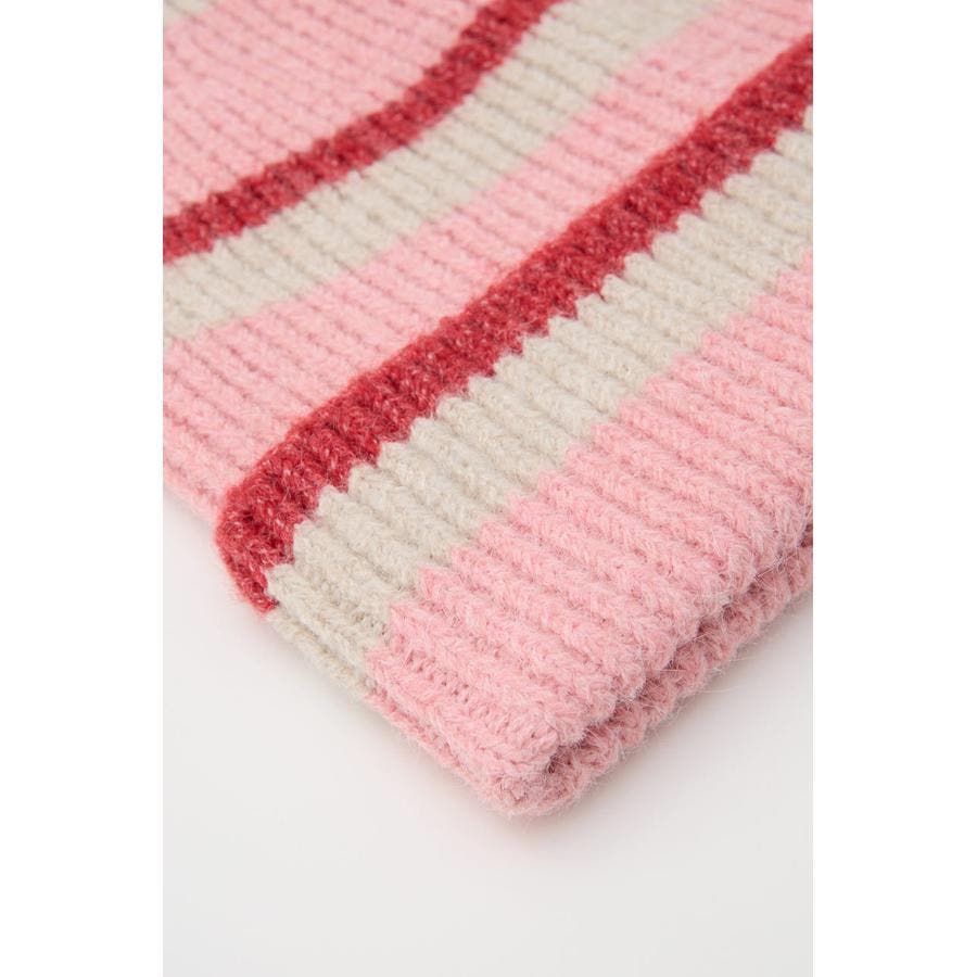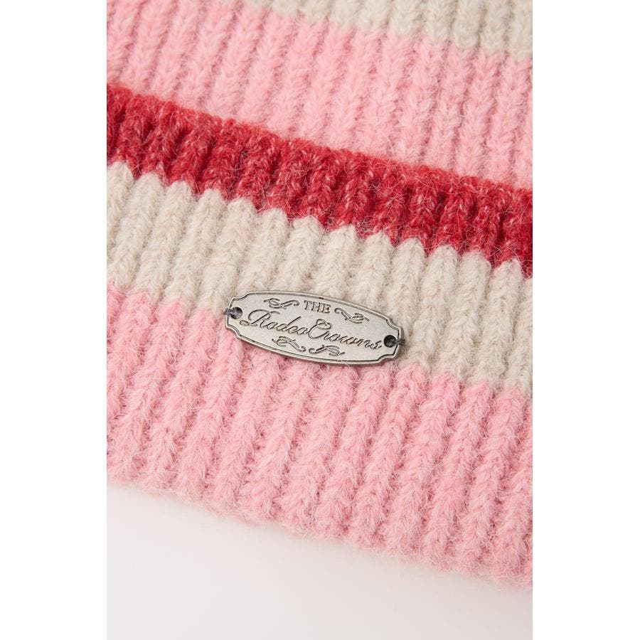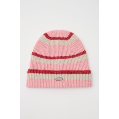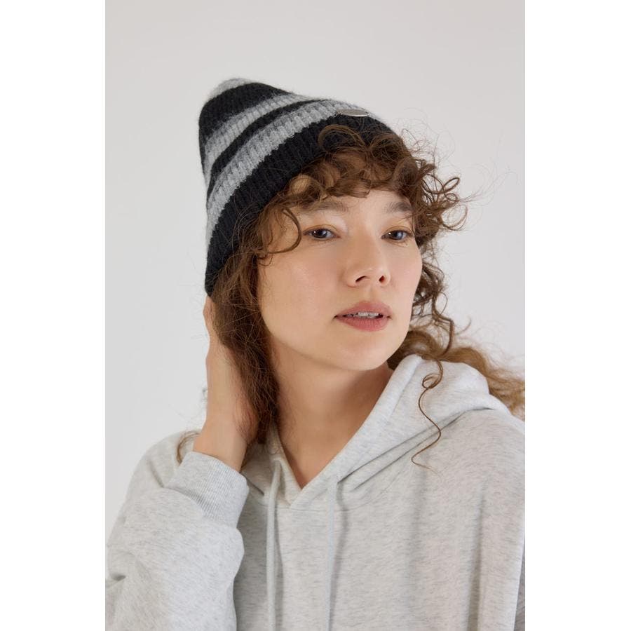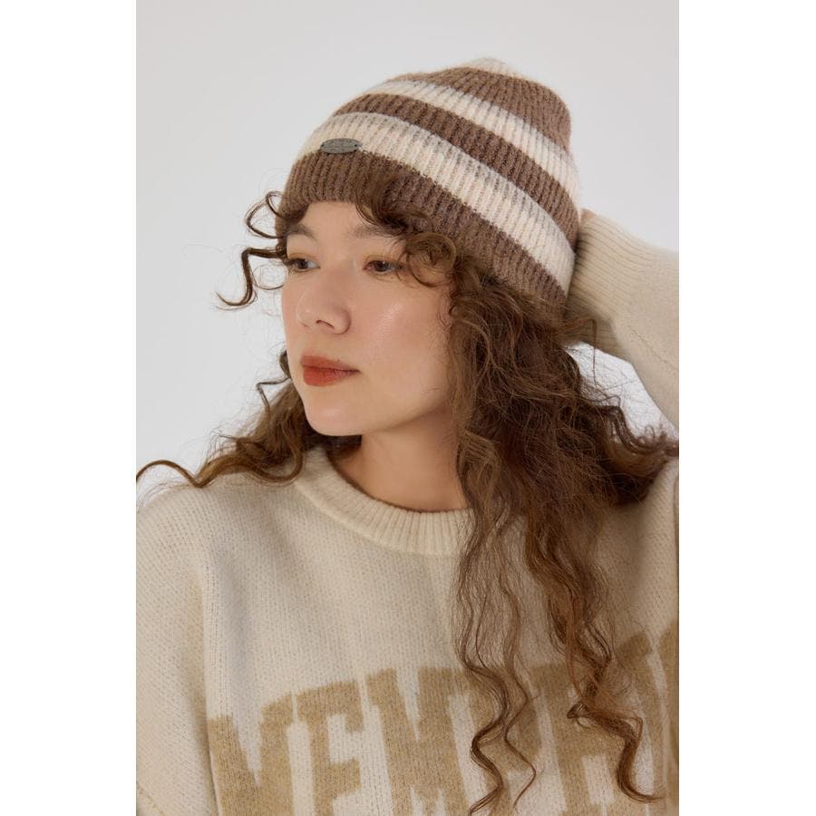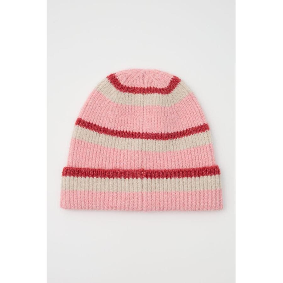 ふわふわと柔らかく、カラフルなボーダー使いが可愛いニットビーニーです。