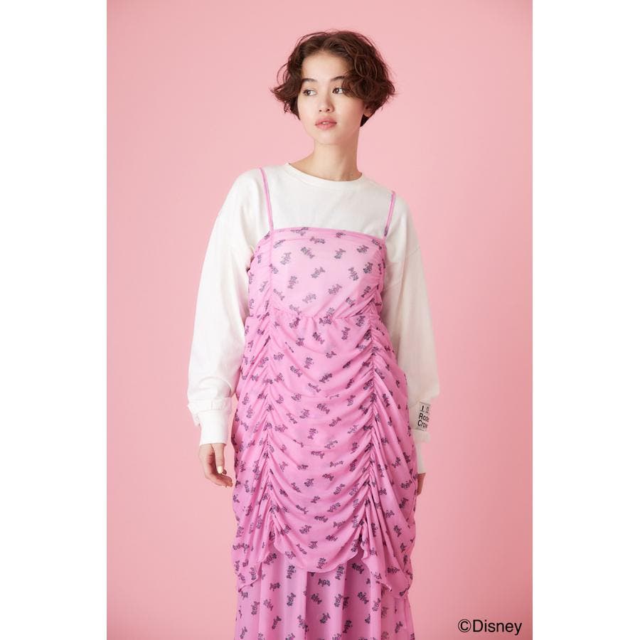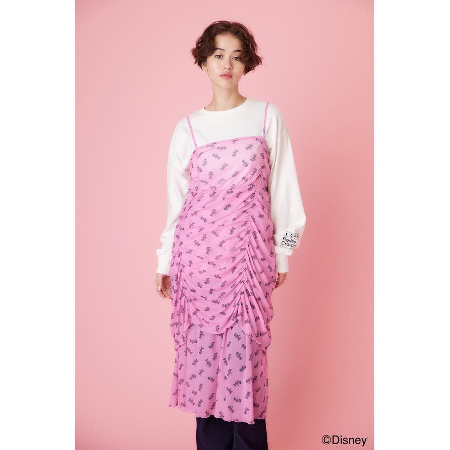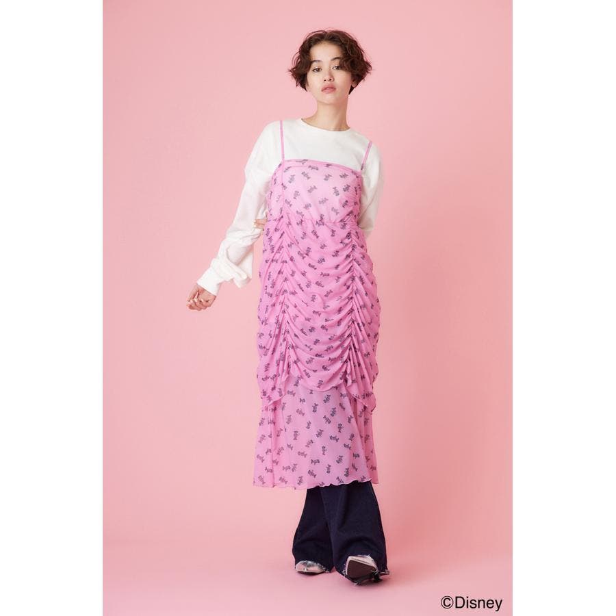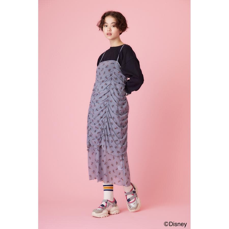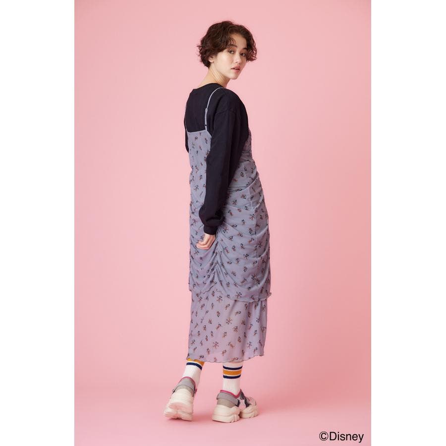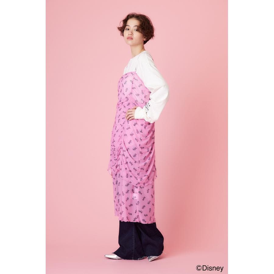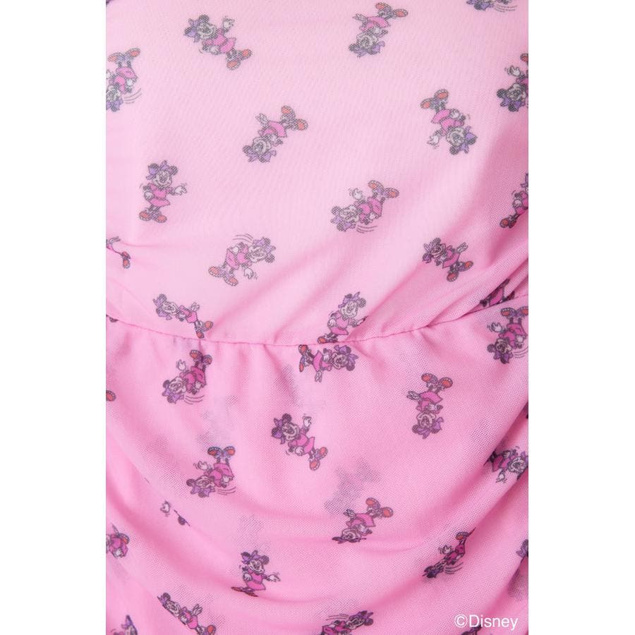 MICKEY&MINNIEデザインのシアーワンピース。柄GRYにはミッキーの総柄、柄PNKにはミニーの総柄が施されたデザインになっています。